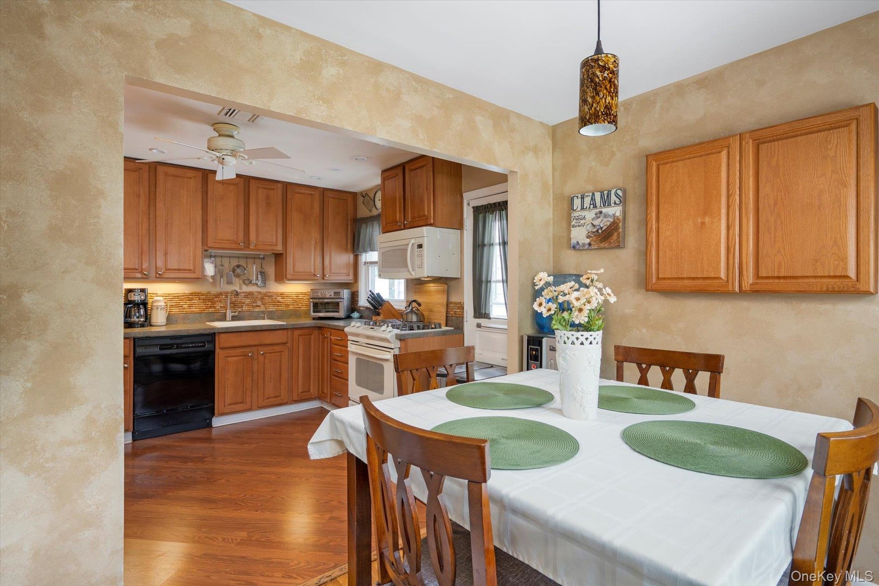 Step into this lovely expanded and updated Cape Cod. Features a lovely kitchen with separate dining area leading to a glass walled Sunroom/Family Room. Living Room and 2 Bedrooms, Full Bath also featured on first floor. Second floor boasts 2 Bedrooms and a Full Bath. Basement has a spacious recreation room, 2 Utility Rooms and a Summer Kitchen leading out to a spacious deck and landscaped backyard. Don't miss seeing this home.