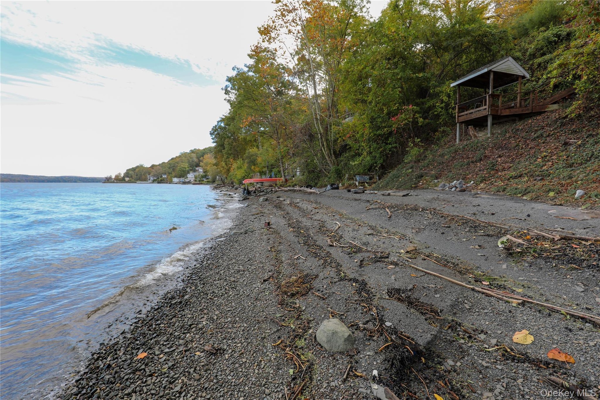 Views, Views, Views! Take in breathtaking sunrises while watching sailboats glide past, all from the comfort of this stunning contemporary waterfront retreat. As you enter, you're greeted by a grand entry foyer that gracefully leads you from one level to the next. This stunning home offers three bedrooms and three full baths with an open floor plan designed for entertaining and hosting guests. The main level features a bright and airy kitchen that opens into a cozy living and dining area, complete with a wood-burning fireplace for those chilly evenings. Walls of windows showcase sweeping Hudson River views, flooding the home with natural light from every angle. Just off the kitchen, a formal dining room flows into a media room, perfect for movie nights or gatherings. A full bath, laundry room, and storage area complete this level. Elevate to the second floor, where your own private retreat awaits. The primary suite occupies its own wing, featuring a spacious living area with vaulted ceilings and a deck overlooking the property. The suite includes a walk-in closet, a luxurious full bath with a whirlpool tub and double-sink vanity, plus an attached gym with access to a side porch—ideal for morning workouts. The third floor offers another primary suite with a lovely full bath and generous closet space, while the fourth level features a den for reading or relaxing, along with an office nook that overlooks the suite below. The top level provides access to the oversized garage, perfect for storing all your summer and winter toys. Downstairs, the finished lower level currently serves as a game room with a wood stove and walk-out access to a bluestone patio. Exterior stairs lead from the top of the home to the lower patio, with multiple decks and porches offering endless spots to sit back and soak in the view. A shared driveway provides ample parking both at the top and bottom of the hill. Exterior stairs lead to your own private gazebo and beach, complete with a dock and a newly installed mooring ball capable of holding a 60-foot boat—even in 45-knot winds. Truly nothing to do but sit, relax, and take in all the beauty the Hudson Valley has to offer! Located just minutes from the Kingston Waterfront, art and music scene, local restaurants, beach, farmers markets, and so much more, come take a look! ** Recent Updates: Roof, newer gutters ( 2023) freshly painted exterior, stone patio, and terraced garden (2020). The home also features an updated geothermal heating and cooling system with new holding tanks, a new copper main water line for improved pressure, and the entire lower level fully spray foam insulated for enhanced energy efficiency. ** ACCEPTED OFFER 12/10/25 **