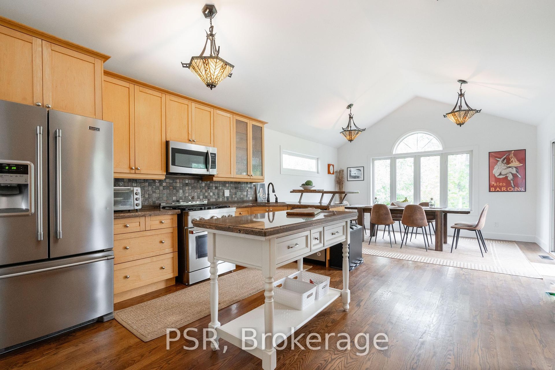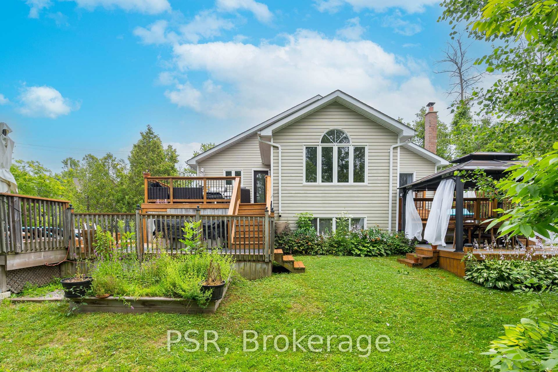 Discover the ultimate relaxation retreat in this beautifully upgraded raised bungalow, nestled on a nearly half-acre landscaped lot with direct beach access just steps away. Enjoy endless summer days in the new pool (2025), or relax in the shade of the charming gazebo. Designed for effortless entertaining, the expansive multi-level decking offers multiple walkouts, a hot tub, and ample space for dining and lounging. Inside, Beautiful vaulted ceilings and an open-concept layout fill the home with natural light, creating an inviting and airy atmosphere. The fully renovated lower level (2024) adds substantial living space, including a sauna and entertainment area, perfect for hosting guests or relaxing in style. The large garage accommodates a boat and provides space for a workshop. Whether you're looking for a full-time residence, weekend getaway, or income opportunity, this turnkey property offers it all - just steps from the lake.