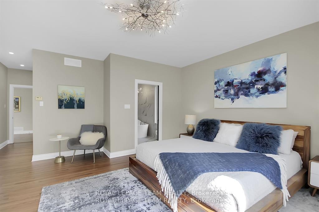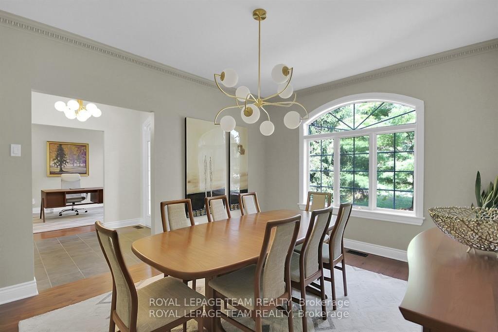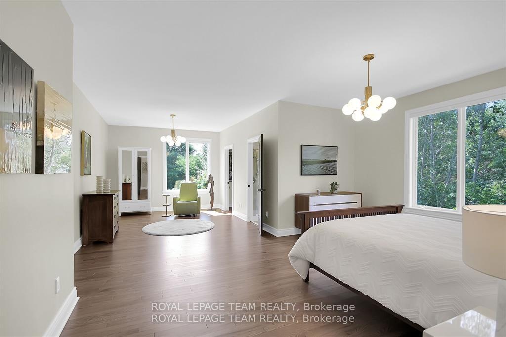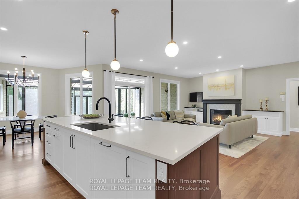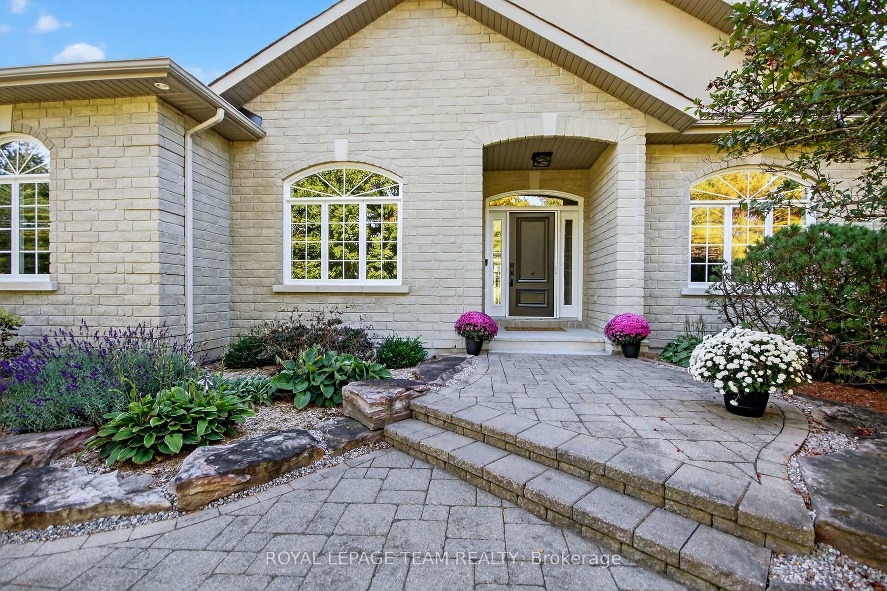 Situated in Orchard View Estates on a private 1.4 acre lot surrounded by mature trees, beautiful hardscaping, manicured perennials. This stunning custom home offers timeless design, high-end finishes, & serene outdoor living. The great room features a gas fireplace, wet bar and built-in cabinetry w/soapstone counters, beverage fridge, ice maker & automated blinds. Gourmet kitchen with walnut accents, quartz counters, stainless appliances & oversized island. Main floor includes a private office and formal dining room. Luxurious primary suite with gas fireplace, custom California closet, & spa-like ensuite with heated floors and towel rack. Private in-law suite with ensuite bath, easily converted back to 2 bedrooms. Extremely large screened in porch built in 2023 offers a delightful gathering place for your family. Fully fenced area for children or animals to enjoy. Finished lower level includes family room, games/exercise area, bedroom, full bath, laundry with heated floors, and kitchenette. Updates: furnace 2023, Air Conditioning 2023, Generac whole home generator 2023, dual sump pumps 2024, water treatment 2024, Oversized 3-car garage. 200 amp service. A rare blend of privacy, elegance, & functionality.