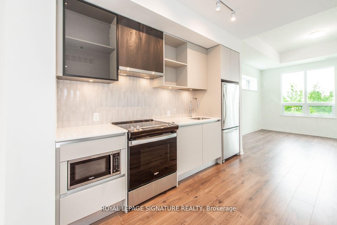 Sophisticated 2bed/2 bath lower level townhome designed with you in mind. Experience smart design with a spacious layout & contemporary features that include a 9ft ceiling, quarts stone throughout and upgraded finishes. Live in your townhome while enjoying access to everything condo living has to offer with access to the state of the art building amenities including gym,party room and rooftop terrace with BBQs. This suite has a beautiful walk-out to your private patio with unobstructed views at your entrance, facing the pond & ravine. Enjoy hiking trails,charming shopping districts, delicious dining in the consistently top rated neighbourhood ofOakville.Located close to highway 403, 407, Oakville Trafalgar Memorial Hospital and walking distance to Fortino's, shops and restaurants!