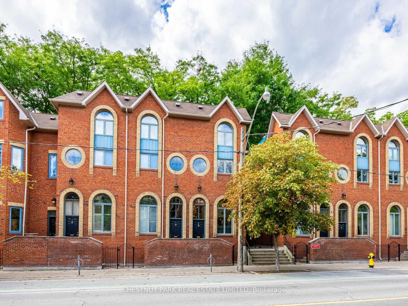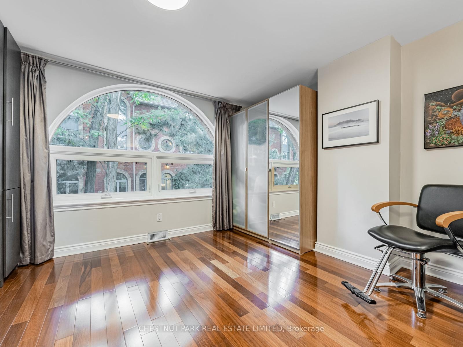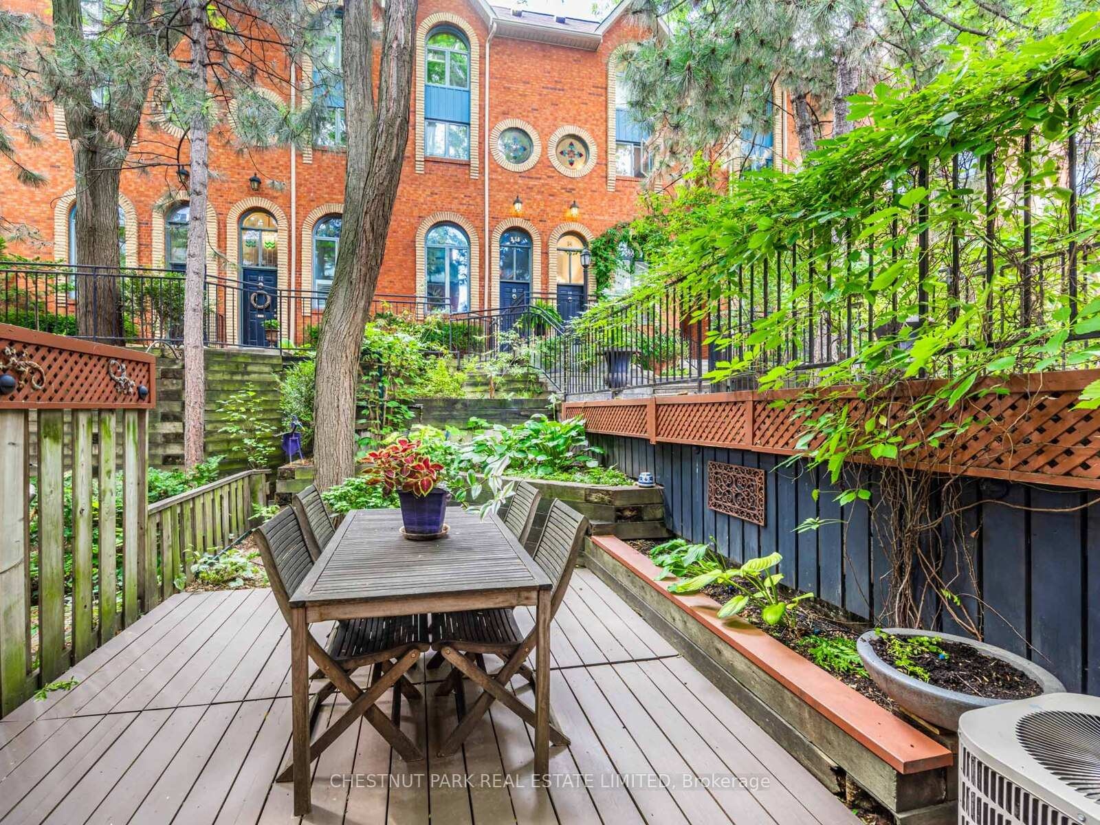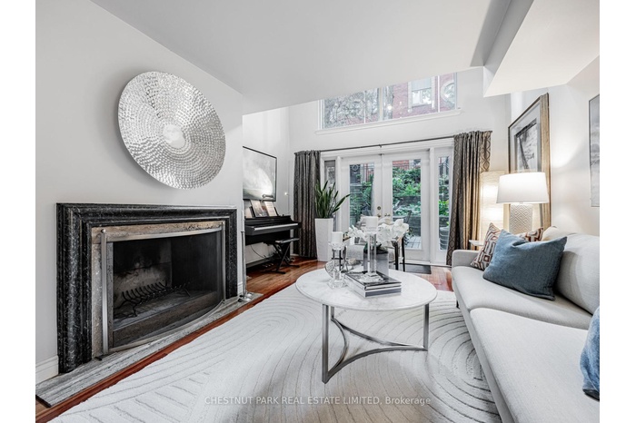 Welcome to 280 Sherbourne Street, Townhome #4. This stunning multi-level urban oasis is artfully hidden deep within the heart of the city! While this elegant Victorian style property overlooks one of the city's most vibrant thoroughfares, urban redevelopment, gentrification projects and refinement of Regent Park are active & welcome investments in the neighbourhood. Nestled in a lush verdant courtyard surrounded by mature trees, this little-known gem has everything you need. There are only 18 units in the complex, fostering a friendly community vibe. Your private terraces off the main level and the treetop balcony off the primary bedroom allow you to literally bathe in tranquility in the early mornings, setting the tone for a busy day, and to entertain or just rest and reset in the evenings. Natural light streams through the dramatic 16 footwall of west-facing windows, as well as through the gorgeous stained glass East-facing windows. No detail was missed when it came to renovating this impeccable townhome, from the fabulous chef's kitchen, to all 3 bathrooms and laundry room. Take note of the Gleaming quartz kitchen counters, soaring ceilings, elegant wall papered hall, a cozy wood burning fireplace on the ground level. And the integrated murphy bed w/custom storage in the 2nd bedroom and ideal office or THIRD bedroom are just a few of this homes unique features. The top floor boasts a true sanctuary complete with walk-in closet, sitting room and spacious sleeping area with gorgeous views through sliding glass doors to your private balcony overlooking a courtyard that transports you to quiet country-like living. Leave the car at home since you have a near perfect walk score, quick access to public transit, steps to St. Mikes Hospital, the financial district, St Lawrence Market for Food and the Eaton Centre for everything else. This elegant Townhome is ideal for professionals who also work from home, empty nesters and downsizers!