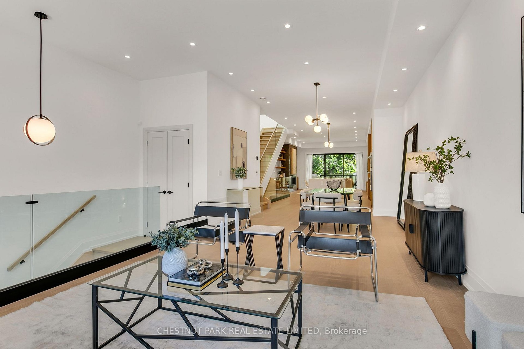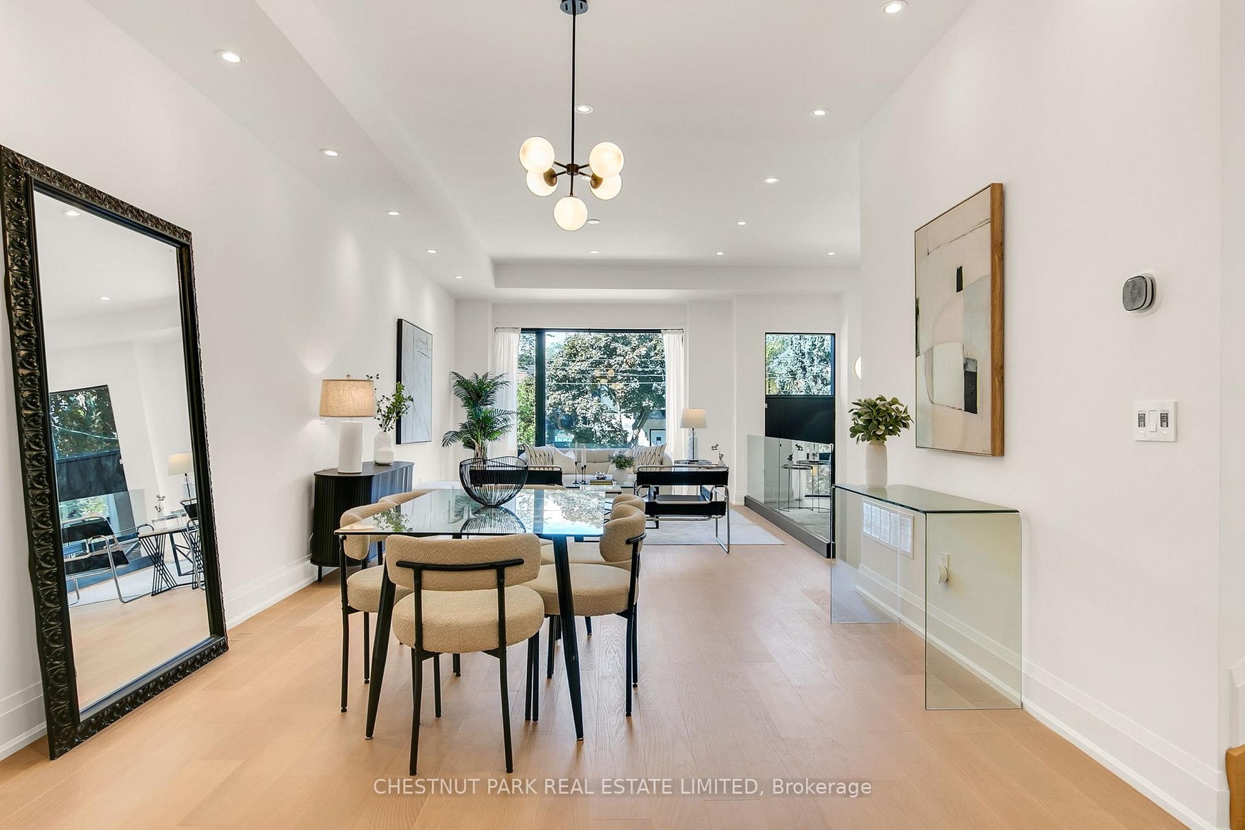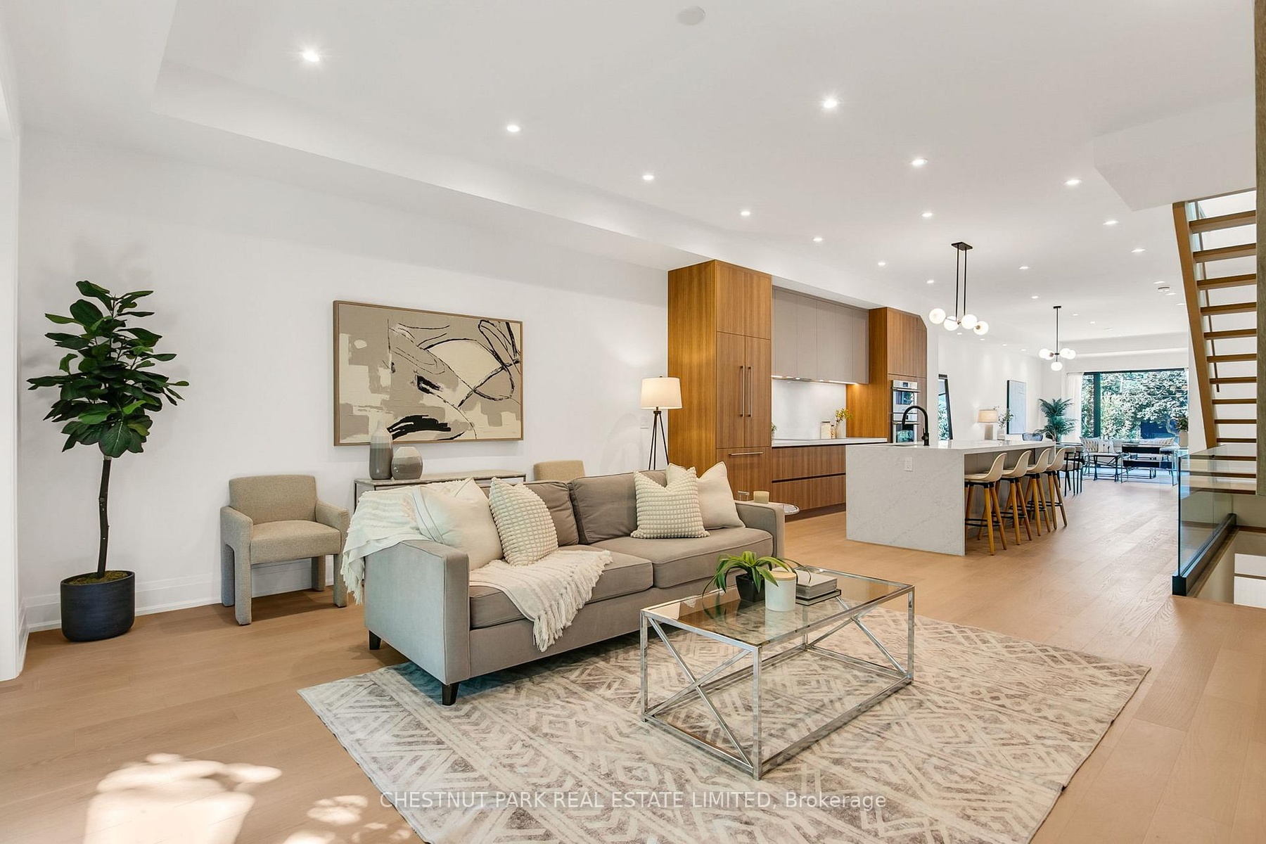 Tucked away on a quiet, tree-lined cul-de-sac in coveted Upper Forest Hill, this custom-built home offers over 3,500 sq. ft. of meticulously crafted living space. Designed with both sophistication & function in mind, every detail has been carefully considered to create a residence that is as stylish as it is welcoming.Step inside & feel the sense of light & openness that defines the main floor. Soaring 10 ceilings & expansive windows flood the living & dining spaces with natural light & sleek finishes set a tone of understated luxury. At the heart of the home, the kitchen impresses with a striking waterfall centre island, premium integrated appliances & storage, the perfect balance of beauty & utility. The family room, anchored by a modern gas fireplace & stone facade, opens seamlessly onto the deck & backyard. The architectural glass & wood staircase rises gracefully to the 2nd level, where 3 skylights brighten every step. The primary bedroom is a sanctuary, featuring a generous walk-in closet & a 5-piece spa-like ensuite with a deep soaker tub, double vanity & heated floors. 3 additional bedrooms are well-proportioned, sharing a contemporary 4-piece hall bath, while a convenient second-floor laundry adds ease to everyday living.The lower level extends the homes living space with incredible versatility & feels like a main floor with a walkout to a covered patio & nearly floor to ceiling windows. A spacious rec room, complete with a wet bar, provides the ideal backdrop for casual entertaining. A 5th bedroom & full 3-pc bathroom are perfectly suited for guests, while the mudroom with rough-in for a 2nd laundry & direct garage access & heated floors enhances convenience.This home is more than just a beautiful place to live - its a lifestyle. A true blend of modern design, thoughtful function & Perfectly located near top-rated schools, the shops & restaurants along Eglinton & convenient TTC access.