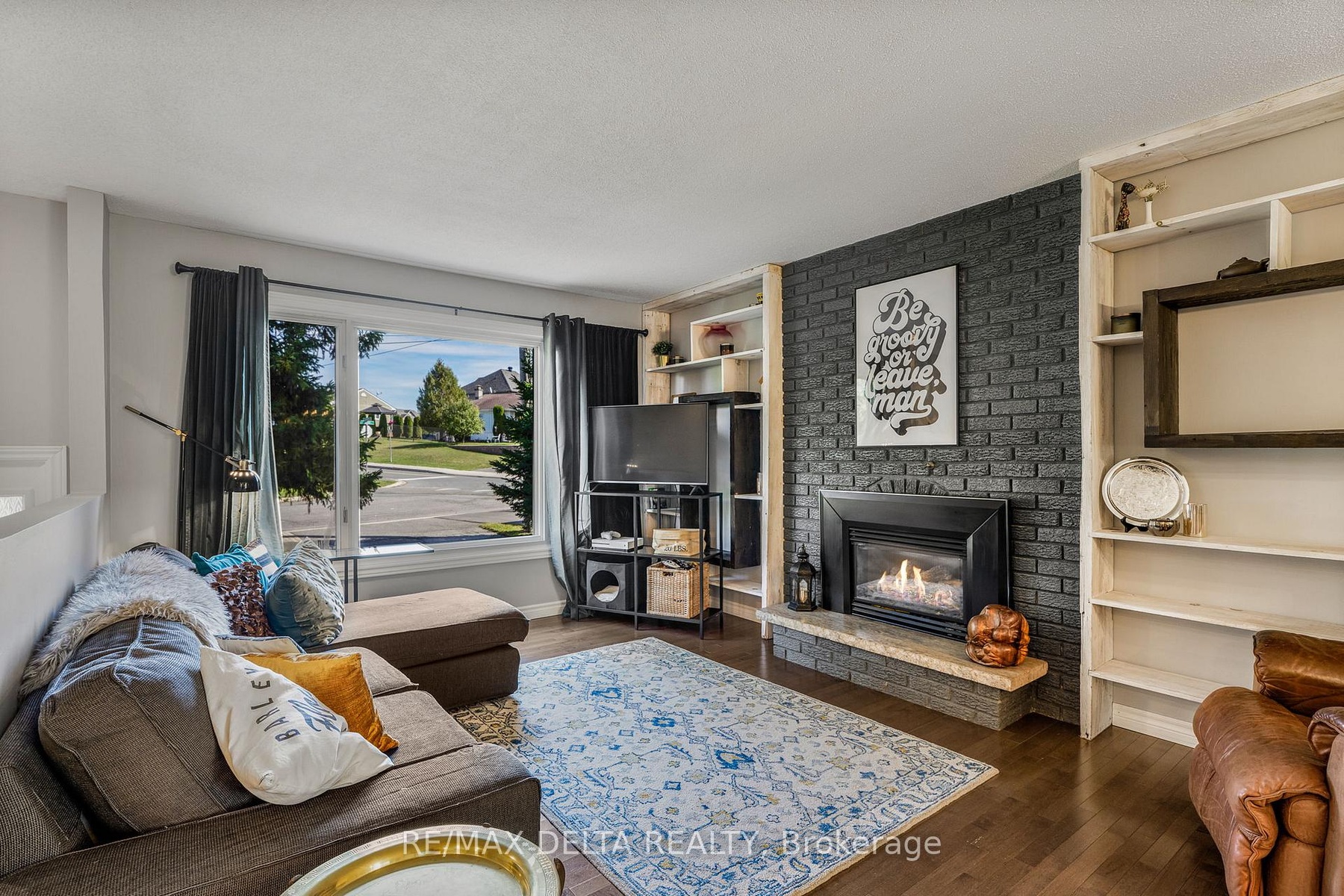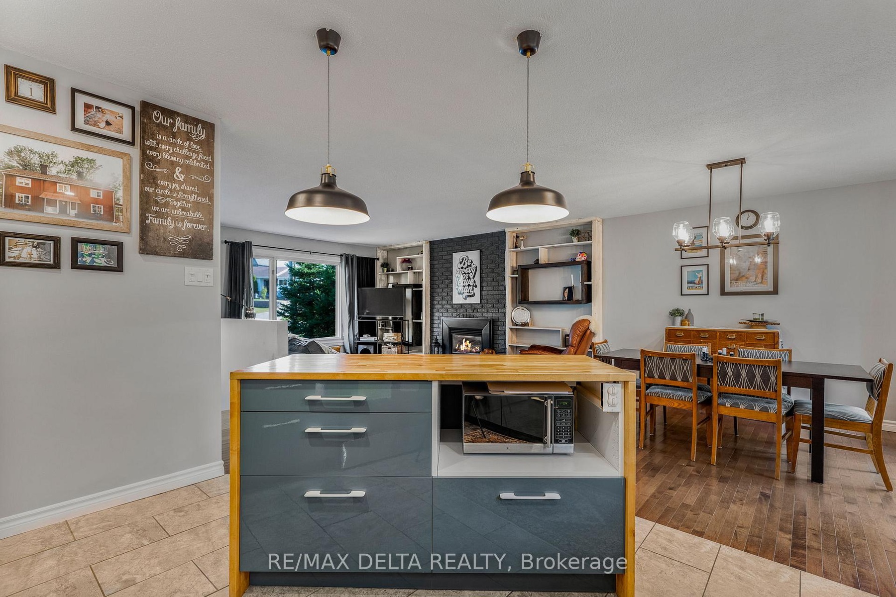 This beautifully updated four-bedroom bungalow blends comfort, functionality, and charm. Step inside to a bright, open-concept main level featuring hardwood and tile flooring, a cozy natural gas fireplace, and a renovated kitchen with modern two-tone cabinetry, a center island, and a stylish backsplash. The dining area opens to the backyard, creating the perfect space for family meals and entertaining. The fully finished basement offers exceptional versatility with a spacious family room, a second full bathroom, a laundry area, and a dedicated office nook. Enjoy the outdoors in your private, tree-lined backyard, ideal for relaxing or hosting friends. This home features municipal water, an Ecoflow septic system (sewer connection at street level for futur connection), natural gas heating, central air conditioning, and an oversized single garage with inside access. The metal roof adds durability and peace of mind for years to come. A perfect blend of modern comfort and cozy charm, move-in ready and waiting for its next family to call it home.