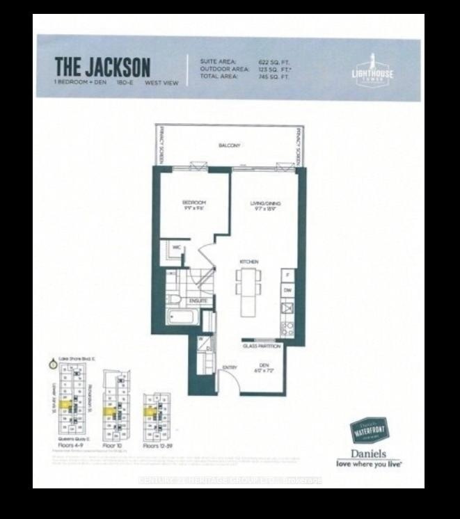 Daniels Waterfront Condo. Live In This Stunning 1 Bedroom Plus Den As A Second Bedroom Condo. The Jackson Model. Steps Away From Sugar Beach. Located On A High Level, Marvelous View Of The Lake. Suite Area 622 Sq. Ft. Balcony 123 Sq. Ft. Total 745 Sq. Ft. Upgraded Bathroom With Walk In Shower. Flat Ceilings Throughout. Electric Light Fixtures. Semi Ensuite Bathroom. Glass Partition In Den. Overlooking the sleek outdoor pool, Exercise room, party/meeting room & 24Hr concierge. West Facing Balcony - View Of The Lake, parking & locker.