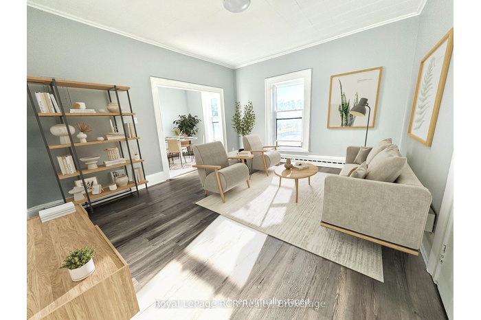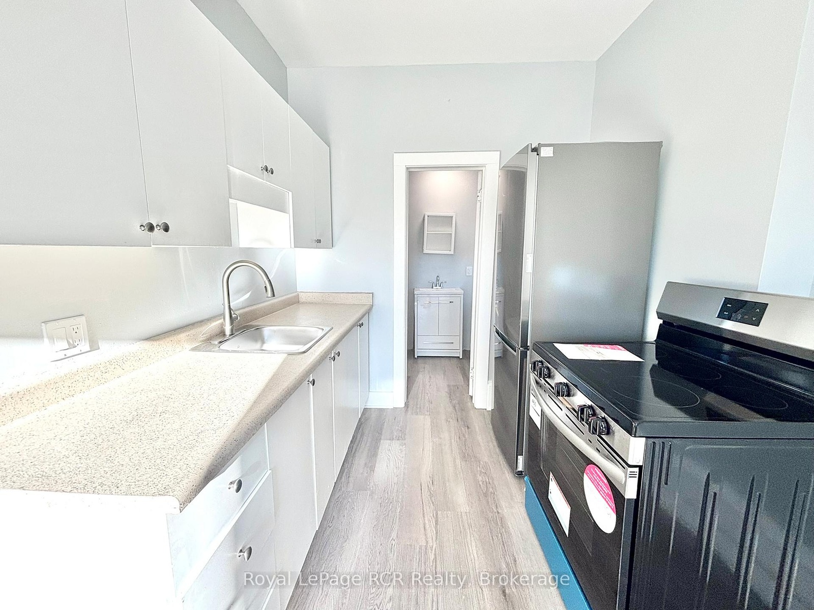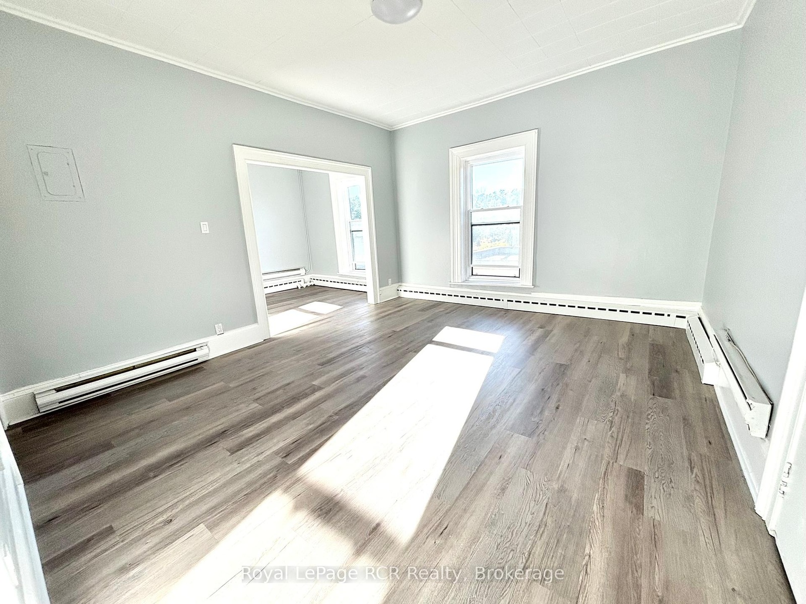 For Lease- Available Immediately. 2 Bedroom Apartment in Downtown Owen Sound! Beautifully updated 2-bedroom, 1-bath apartment located in the heart of downtown Owen Sound. This bright and spacious unit features high ceilings, large windows, and modern vinyl flooring throughout. The updated kitchen offers plenty of storage, and stainless steel appliances. The bathroom is freshly renovated with a sleek vanity, full bathtub, and modern fixtures. Enjoy comfortable living in a well-maintained building just steps from restaurants, shopping, and local amenities. Parking available through the City of Owen Sound, for a monthly fee. Laundromat located a short walk away. See attached Laundry & Parking details. ***Though the apartment is heated with baseboard heaters, the building also has radiant heating and previous tenants have noted not needing to use the baseboard heaters much of the time. **Some photos have been virtually staged.