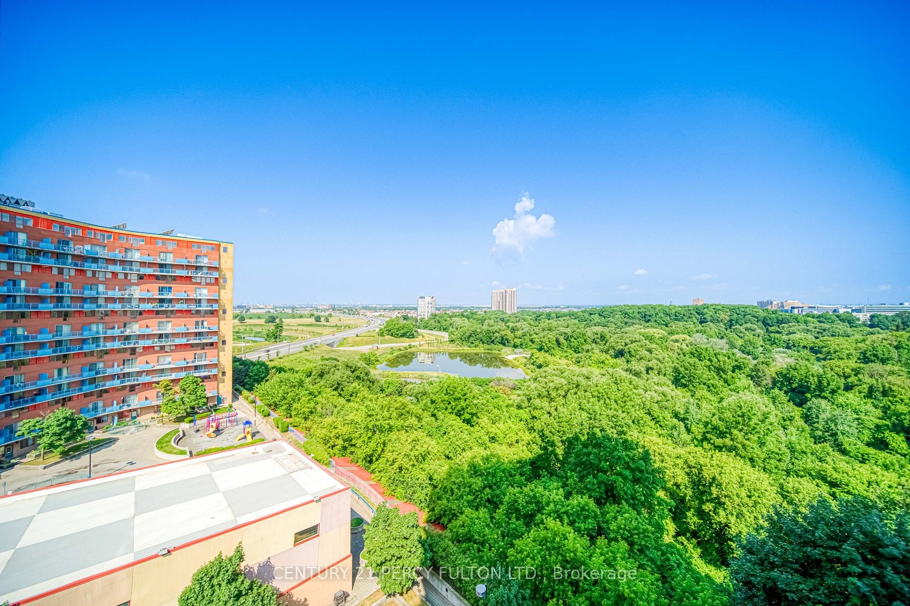 Welcome to this large 1 bed plus den, sun-filled corner unit (over 750 sqft!) at The Lexington Condominium Residences By The Park. This 9th floor unit features panoramic views, including the CN tower, open-concept living/dining/kitchen, 2 full bathrooms and ensuite laundry. The modern kitchen has quartz countertops, stainless steel appliances, including fridge, stove, microwave range hood and dishwasher, as well as a breakfast bar for convenience. The bedroom has an amazing West facing view of the park, a walk-in closet and 3 piece ensuite. The unit is carpet-free and has been recently painted. Includes one underground parking spot and one locker. Right across from Woodbine Mall & Fantasy Fair, Great Canadian Resort (Woodbine Casino, Racetrack & Hotel). Steps to shopping like Fortinos, Winners, LCBO and much more. William Osler Health System and many Schools nearby. 7 minutes to Toronto Pearson Airport. Public Transit Accessible (TTC & MiWay).