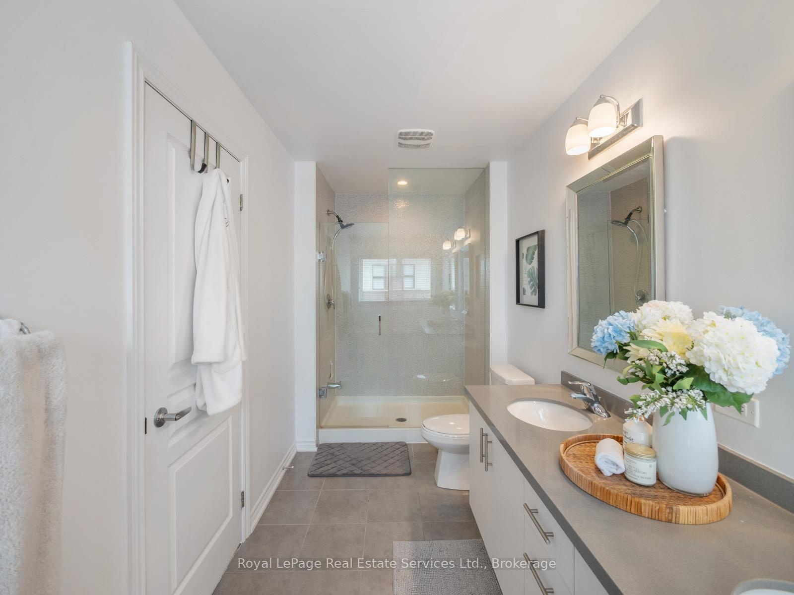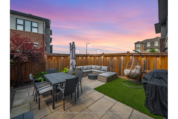 Welcome home to 431 Athabasca Common. Built in 2018, this modern, beautifully upgraded, sun-filled freehold townhome features approximately 2,500 SF of finished living space located in one of Oakvilles most vibrant communities. This 3-bedroom, 3-bath home features engineered hardwood floors, 9-ft ceilings, pot lights and smart home upgrades like automatic roller blinds. The open concept main floor has open views to the park and includes well thought out quality-of-life features such as a modern kitchen with a large functional island, cozy electric fireplace and an updated laundry/pantry room with added outlets for a freezer and small appliances. Upstairs, the spacious primary bedroom is flooded with natural light and provides unobstructed park views while boasting a walk-in closet and luxury ensuite with an oversize shower, stand-alone soaker tub, and double vanity! Two more generously sized bedrooms featuring a south-facing balcony and a shared 4-piece bathroom complete the upper floor. The basement is a professionally finished space featuring a wet bar, smart LED pot lights, open rec room and recently finished den (2022). The garage is equipped with an EV charging outlet and wall storage. A private hardscaped backyard with no direct rear neighbours offers sun-filled days and dreamy nights under the stars. Perfectly situated across from William Rose park with pickleball, tennis, basketball courts and a splash pad, your active lifestyle awaits! Steps to St. Cecilia Catholic Elementary School, scenic trails including Athabasca Pond and more! Easy access to Oakville Trafalgar Hospital, Shopping centres and highways. This home blends comfort, convenience, and lifestyle in one exceptional package. Don't Miss!