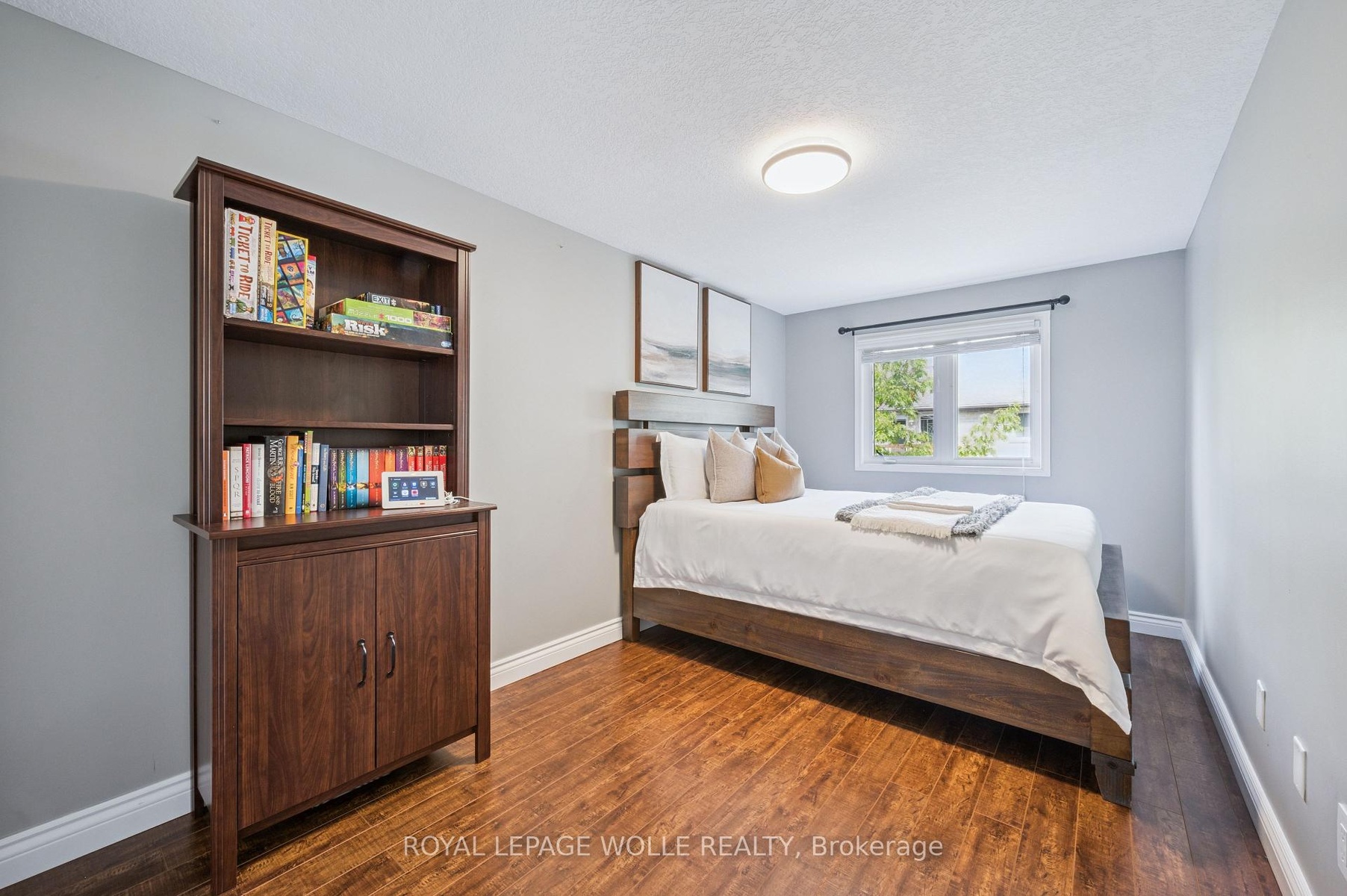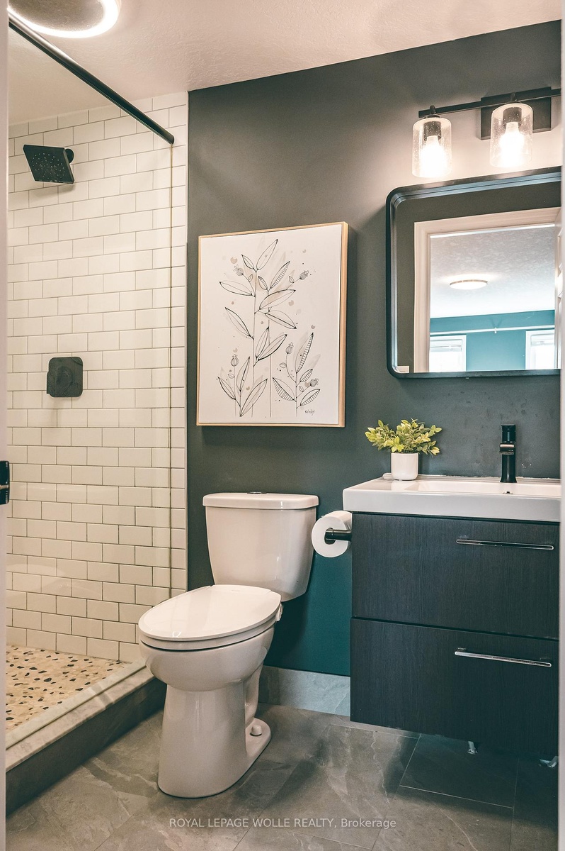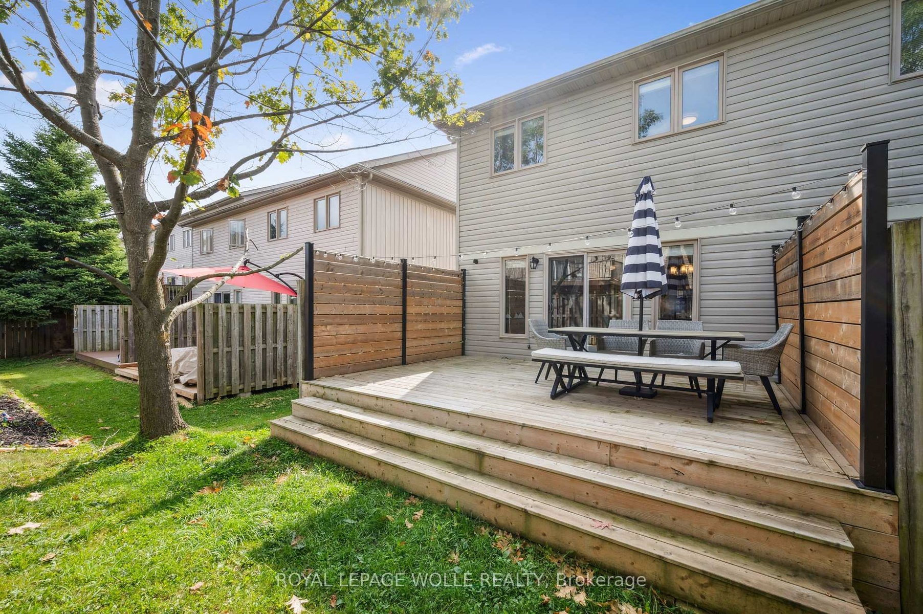 END UNIT, FULLY UPDATED WITH ENSUITE! Step into a home where every detail has been thoughtfully updated, leaving you nothing to do butsettle in and enjoy. This end unit townhome blends modern finishes with everyday convenience and is the perfect place to call home. The heartof the home is the main floor, where a renovated kitchen with granite counters and stunning cabinets that opens up to an eat-in dining area. Thekitchen and dining area overlook the large living space filled with lots of light and features a cozy fireplace. Patio doors lead to your private largedeck when you can enjoy summer evenings. A stylish 2-piece powder room rounds out this level. Upstairs, the primary suite is your privateretreat, large enough for king bed, outfitted with a custom walk-in closet, and anchored by a stunning, fully updated ensuite with walk-in glassshower. Two additional well-sized bedrooms share a full 5-piece bath with double vanity, offering enough space for all. Head downstairs to the recroom and discover an entertainers haven. Featuring a custom bar with built-in taps, a Keg, and a bar fridge, the perfect backdrop for game nightor weekend gatherings. A full 3-piece bath adds convenience to the lower level. This carpet-free, fully updated end unit townhome with sleekmodern finishes, ensuite with walk-in closet and garage - what more could you need! A home this polished, exquisite and functional doesntcome along often.