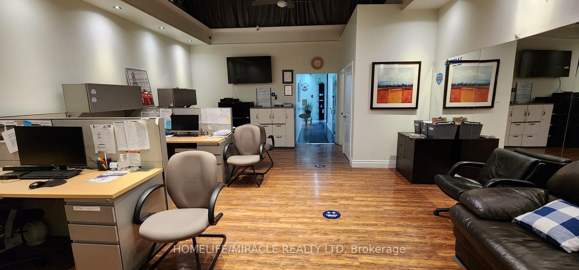 Well Maintained, Spacious Office in Desirable Location. Lots Of Possibilities, Has A Big Window for signage If Need Exposure, Utilities Are seperate, Can Suit Any Office Business (Lawyer, Accountant, Insurance, Etc.) Or A Showroom. Office Space Finished With Ceramic Tile Flooring And 2Pc Bathroom.