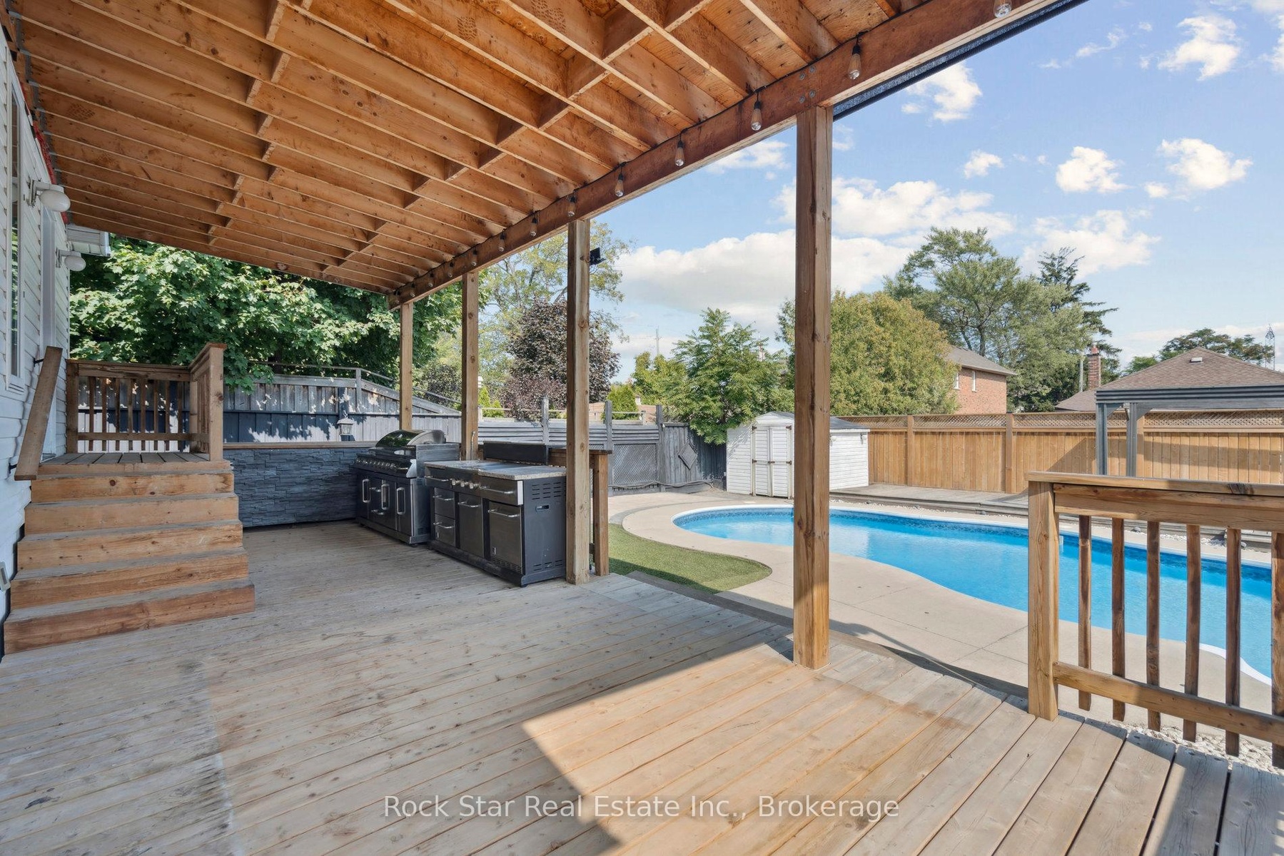 Welcome to 211 Rosedale Ave located in one of Hamiltons most desirable neighbourhoods. Just steps to Kings Forest Golf Club, Rosedale Arena, nature trails, and the famous escarpment rail trail.This charming 1.5 -storey home offers 3 bedrooms, 2 bathrooms, and an abundance of living space inside and out. The heart of the home is the spacious kitchen, featuring a large island, plenty of prep space, and flexibility for a casual dining table. An impressive open-concept addition with cathedral ceilings, skylights, and California shutters creates a true Great Room perfect for hosting family and friends. From here, step out to the covered patio with a full outdoor kitchen and overlook the in-ground pool in the fully fenced backyard. An entertainers dream for every season.The main floor also includes a versatile bedroom/office and an elegant bathroom with double sinks. Upstairs you'll find two additional bedrooms, while the lower level boasts a massive recreation room, a flexible space ideal for a home office or gym, plus a full bathroom and convenient laundry area.Whether you're relaxing poolside, entertaining in the great room, or exploring the nearby trails and golf course, this property offers a lifestyle of comfort and connection. Don't miss your chance to call 211 Rosedale home.