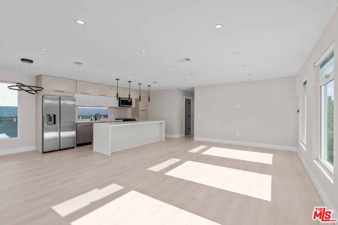 Experience luxury coastal living in this newly renovated 3-bed, 2-bath, top floor unit on the quiet Paloma Ave walk street - just seconds from Venice Beach. This architecturally crafted home combines high-end design, functionality, and smart-home technology. Enjoy open-concept living with floor-to-ceiling windows and a 14-ft folding glass wall that connects the living space to a private balcony - perfect for indoor/outdoor dining while enjoying the ocean breeze. The chef's kitchen features Calcutta waterfall countertops, European cabinetry, stainless Samsung appliances, and a wine fridge. The primary suite includes dual closets, a Juliet balcony, and a spa-inspired bath with Italian marble, rainfall shower, and built in Alexa-operated speaker system. Unwind on the 400 sq. ft. shared rooftop deck with lounge seating, fire pit, and BBQ. Smart-home features include voice/app-controlled lighting, NEST thermostat for central heat and AC, Ring video doorbell, and keypad entry. Tucked on a quiet walk street just steps from Abbot Kinney, Rose Ave, and the Venice Boardwalk, this penthouse delivers privacy, sophistication, and pure California beach living. The unit also comes with two tandem parking spots - one in the garage and one parked behind.