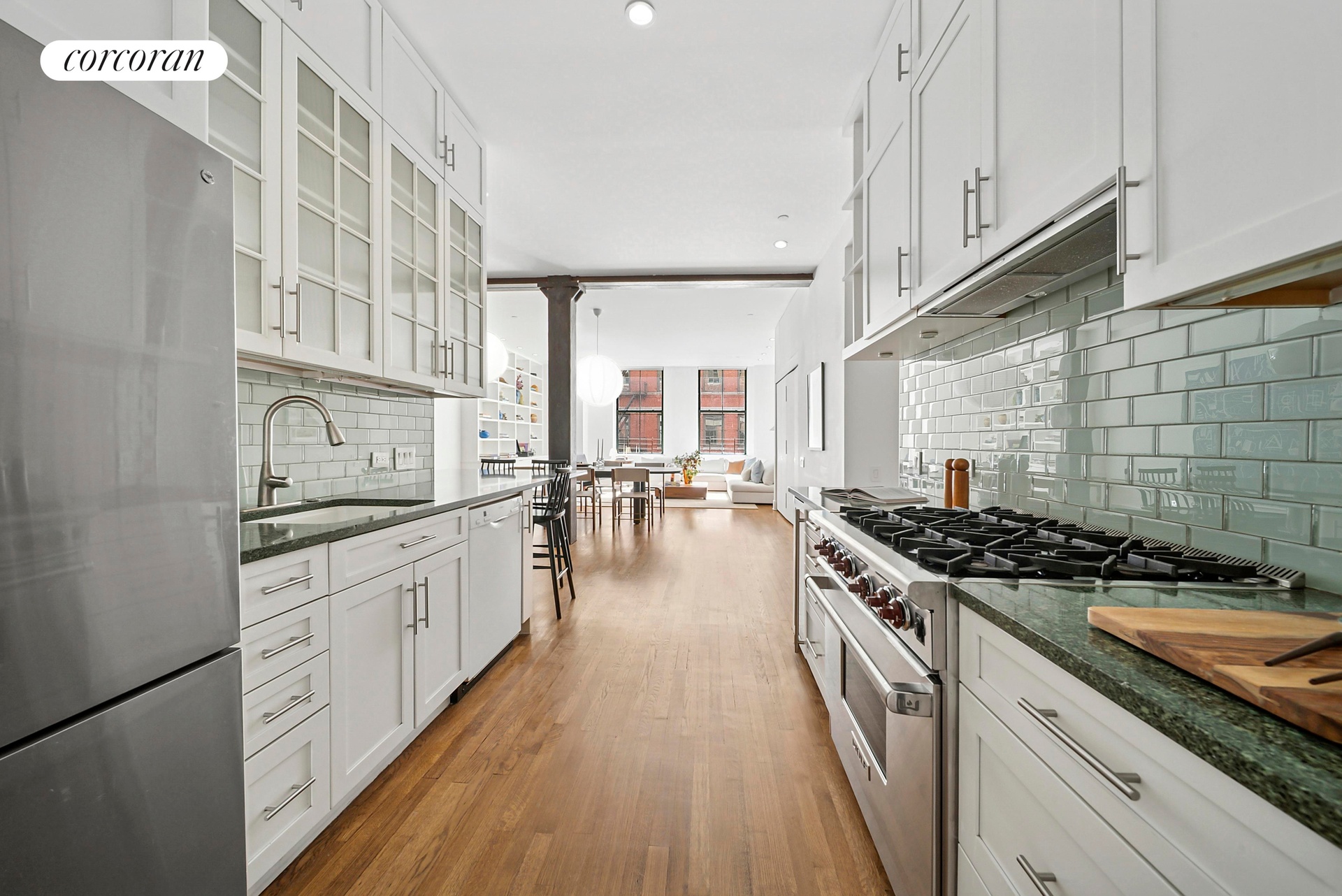 South-facing, chic, and unmistakably Tribeca - Residence 3A at 53 North Moore defines downtown loft living at its finest. Set along the neighborhood's iconic cobblestone streets, this massive 1,740 square foot 2 bedroom 2 bathroom home captures the essence of classic downtown living with the modern conveniences of a full service building.