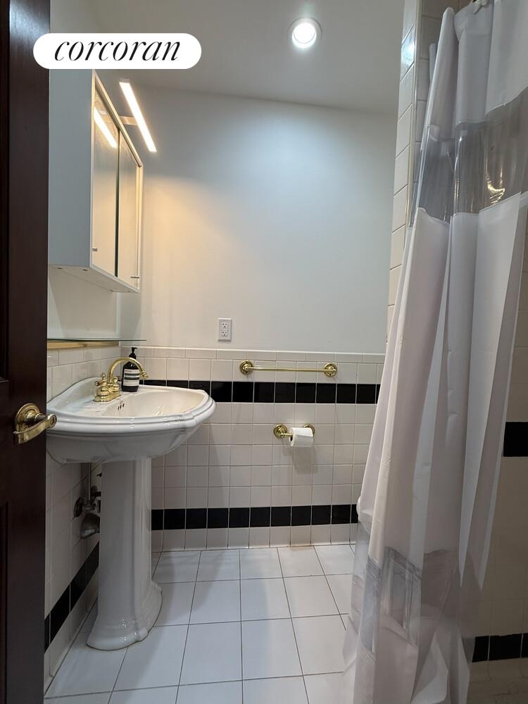 The smaller of the two bedrooms is ideal for an office, measuring 7ft x 13ft, and features a west-facing window with a view of the backyard. Off this room, there is a large closet that is 3ft x 7ft. In addition, there is a guest bathroom with a stall shower.