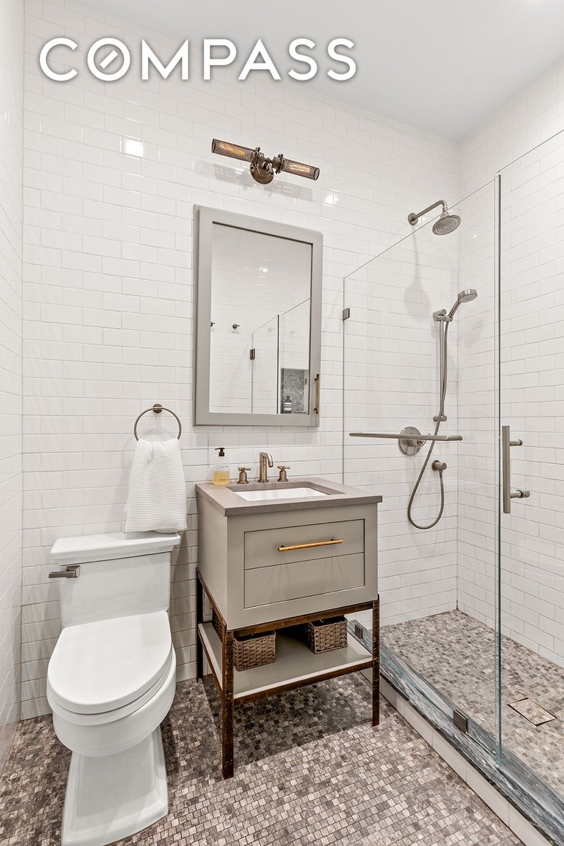 Step inside and be welcomed by soaring 101⁄2-foot ceilings, recessed lighting, and a sense of openness rarely found in the city. Custom closets with striking sliding barn doors maximize storage while enhancing the apartment’s clean, contemporary lines.