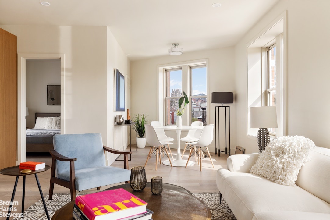 Welcome to 25 Charles Street #6A, a fully reimagined two-bedroom home that can be flexibly configured into three bedrooms. Spanning nearly thirty feet across its combined living and dining area, this rare West Village sponsor unit offers a seamless, move-in-ready experience-perfect for buyers seeking a renovated, design-forward residence without the hassle of the typical co-op approval process. With nearly nine-foot ceilings, triple exposures, and open city and neighborhood vistas, the apartment is bathed in natural light throughout the day and enjoys stunning penthouse views.