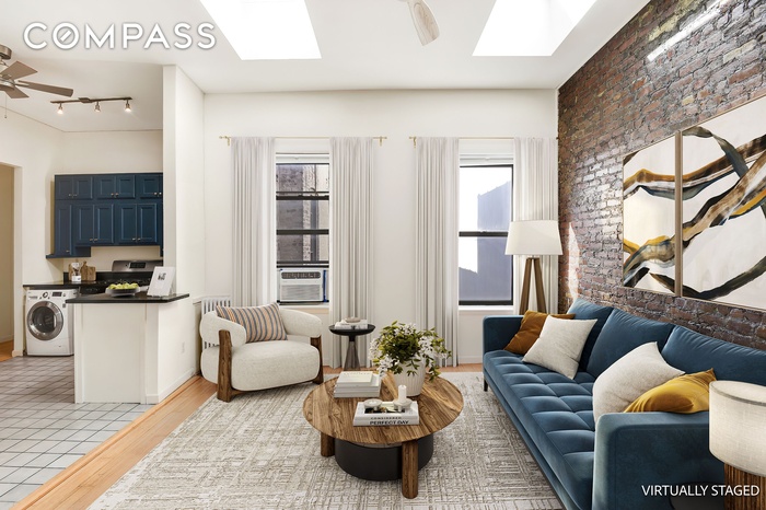 Nestled on a picturesque, tree-lined block in the heart of Boerum Hill, this classic two-bedroom, one-bathroom co-op offers the perfect blend of historic charm and modern convenience. Step inside this top-floor residence with nearly 11-foot ceilings, exposed brick, and two skylights in the living room. The apartment features a locked space in the credenza in the foyer, a renovated bathroom, in-unit washer/dryer, and great sunlight with open views of Downtown Brooklyn.