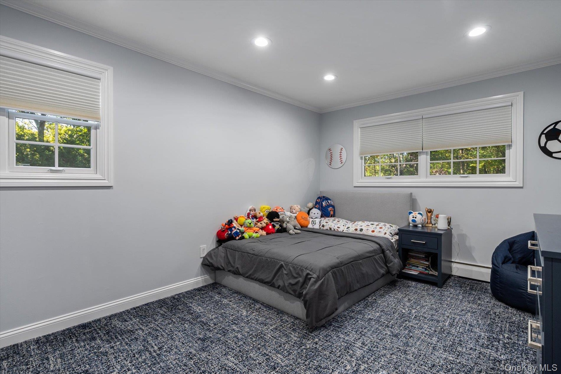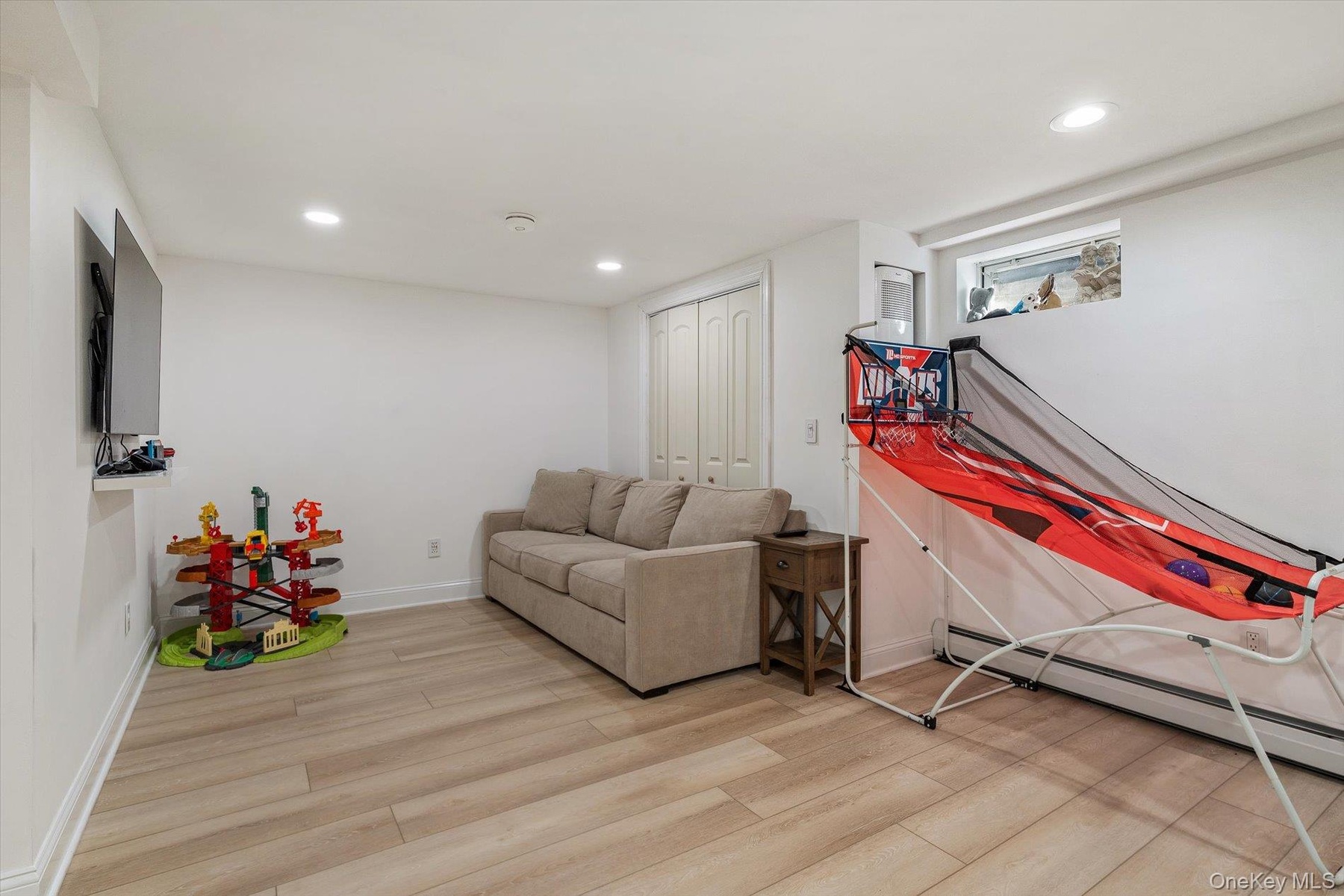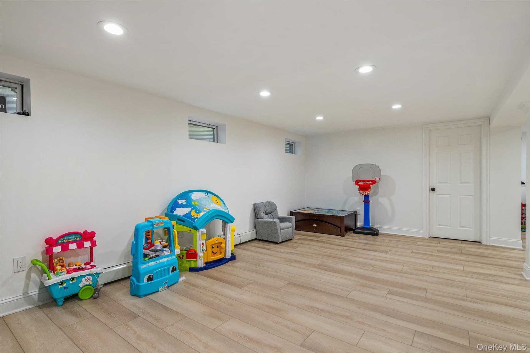 The newly renovated lower level offers an additional recreation area, perfect for a playroom, gym, or media room. Additional updates include a new 3-zone central AC system and numerous upgrades throughout. -+Located within the Half Hollow Hills School District, zoned for the coveted Sunquam Elementary School, this home offers an incredible opportunity to live in one of Melville’s most desirable neighborhoods.