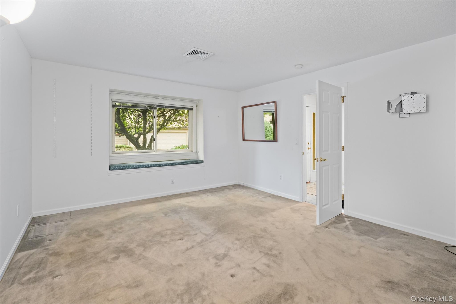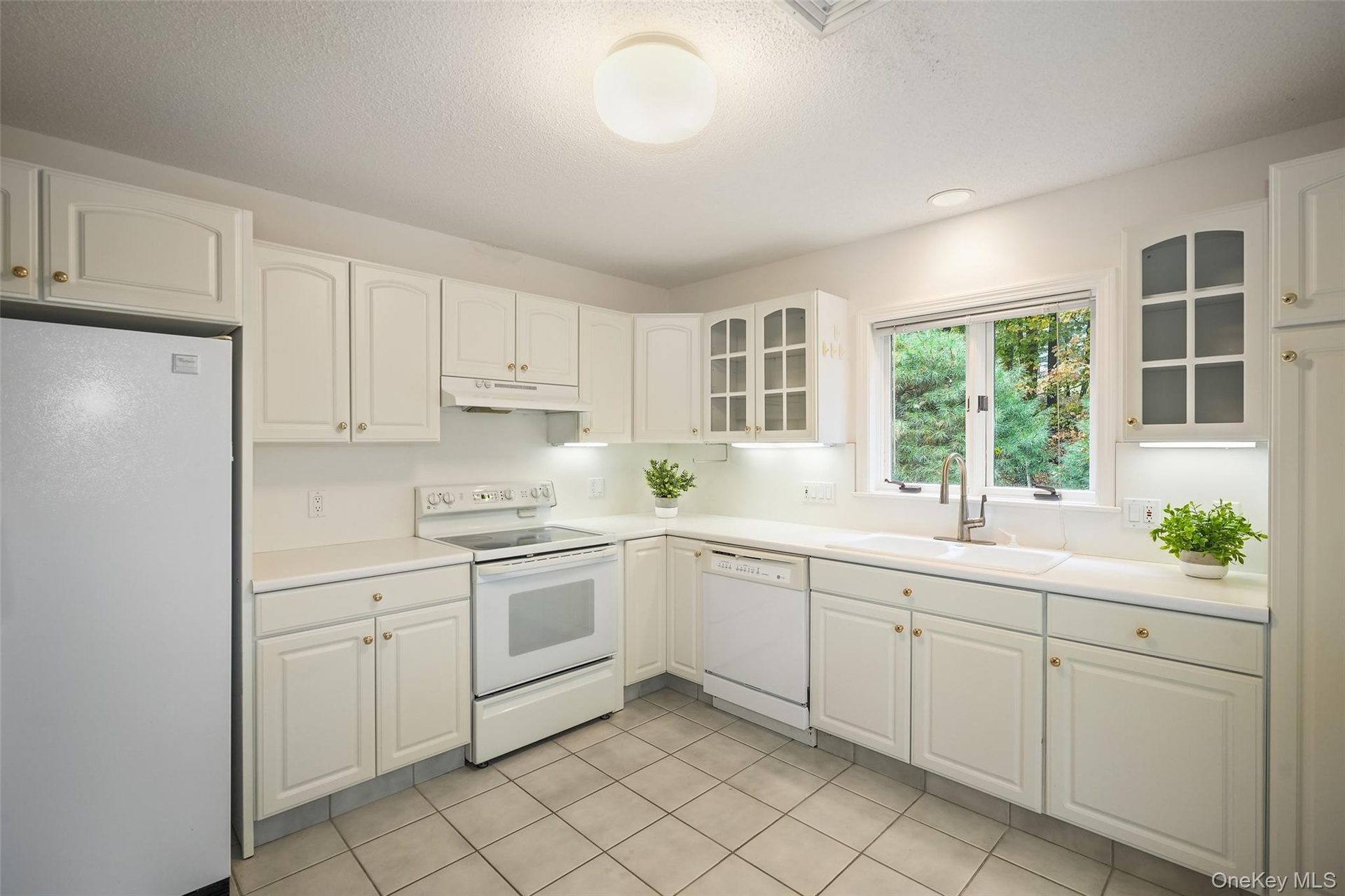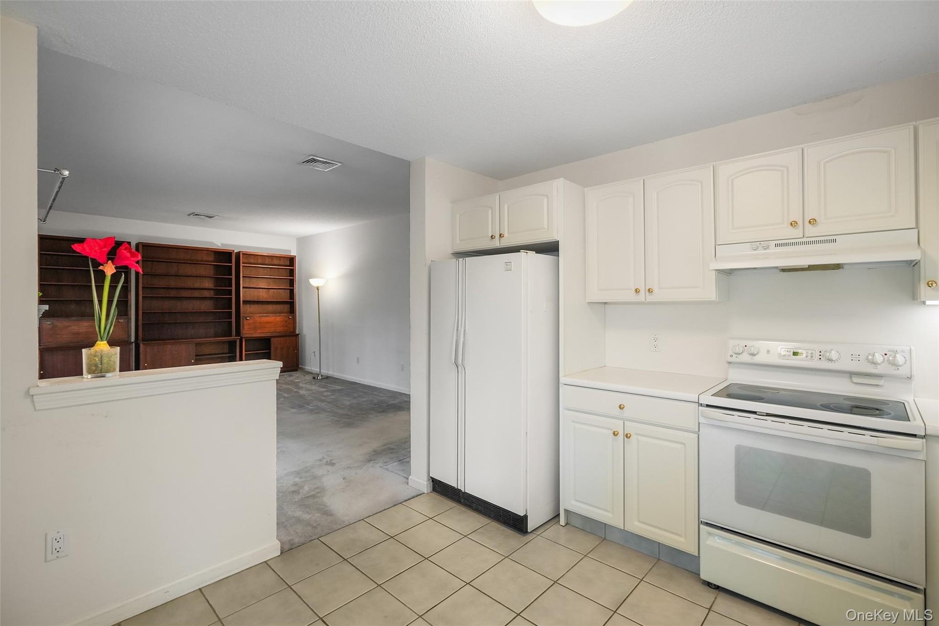 Desirable one-bedroom, two-bath, one-level Amherst end unit with a den that can easily function as a second bedroom or home office, complete with pocket doors for privacy. This condo lives like a two-bedroom and features gas heat, and an attached one-car garage. The formal living room offers a brick wood-burning fireplace, perfect for cozy evenings, while the eat-in kitchen includes white cabinetry, white appliances, and a slider leading out to a private deck overlooking the woods—a peaceful, scenic setting ideal for relaxation. The primary bedroom features an ensuite bath and a walk-in closet. Additional highlights include stackable washer/dryer in the hall bath, a new water heater (2024), HVAC (2014), roof (2021). With four visitor parking spots directly adjacent to the unit, and a quiet location, this condo is a wonderful opportunity in Heritage Hills. Condo is being sold as is. Enjoy the Heritage Hills lifestyle: 5 pools, tennis, pickleball, Activity Center, Fitness Center, 24-hour security with EMS, free shuttle to train and shops, and much, much more. Buyers are required to pay a one-time fee of $1500 to Society at closing. HOA of $584.52 includes (Condo 29 fee $448.41) + (Society fee $136.11). Sewer fee is $48.61 monthly; water is approximately $40 per month, based on usage. Taxes are without Basic STAR exemption of $1447.22. No assessments.
