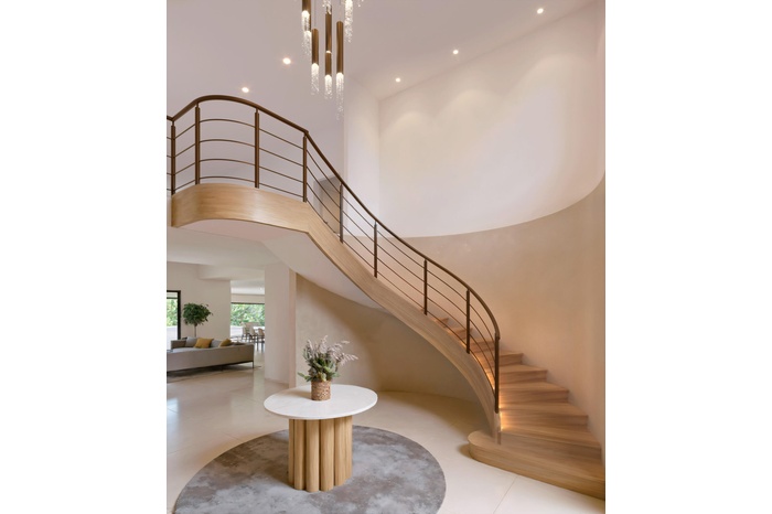 Stunning Modern Key West new construction masterpiece showcasing exceptional craftsmanship, exquisite design, and the finest finishes throughout. A dramatic foyer with circular staircase opens to the expansive living room with 23' ceilings and an entire wall of glass overlooking the resort-style pool, and deck. The open-concept chef's kitchen is a showstopper, featuring Miele appliances, 19' of quartz countertops, an 11' custom island, double wall ovens, and walk-in pantry. The first floor offers a private office/den, powder room, guest suite with ensuite/cabana bath, and elevator. Living room outfitted with an elegant bar area.Upstairs, a 12' x 19' loft overlooks the living area below, leading to two ensuite bedrooms with walk-in closets. The luxurious primary suite includes  CONTINUE