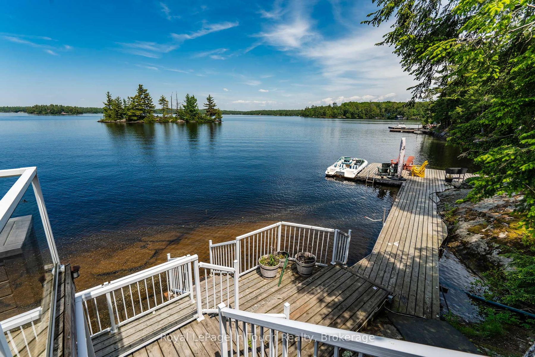 Welcome to 4 Island 270 on stunning Six Mile Lake, a private island retreat with over 400 feet of clean, natural waterfront and some of the most breathtaking north-facing views the lake has to offer. This beautifully maintained property features a charming 2-bedroom, 1-bathroom cottage, perfect for relaxed lakeside living, along with a 300 sq. ft. bunkie ideal for guests or extra family. Step outside and enjoy fantastic swimming right off the deck, or take advantage of the waterpark-style waterslide for endless summer fun. With ample docking space, there's plenty of room for boats, water toys, and entertaining. The landscape is thoughtfully curated with lush gardens throughout the property, adding vibrant color and tranquility to the natural surroundings, wheather you're sipping coffee at sunrise or winding down as the sun sets across the bay, the north facing exposure ensures you enjoy both start and ends of the day with unparalleled views. This is a property designed for making memories offering privacy, recreation, and comfort in one of Muskoka's most sought-after lake communities. 4 Island 270 is the perfect island getaway for families, friends, and anyone who loves the magic of cottage life on Six Mile Lake.