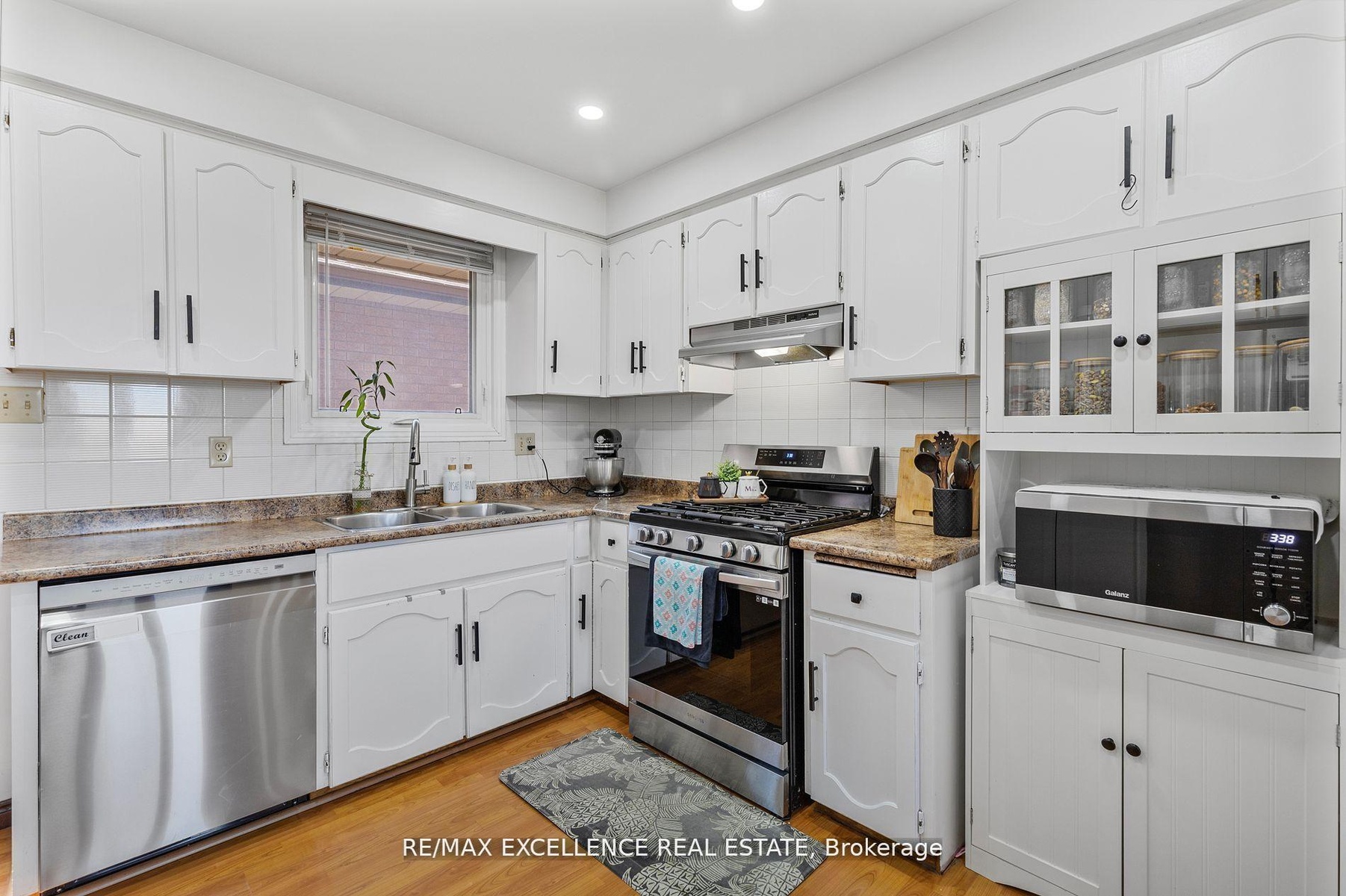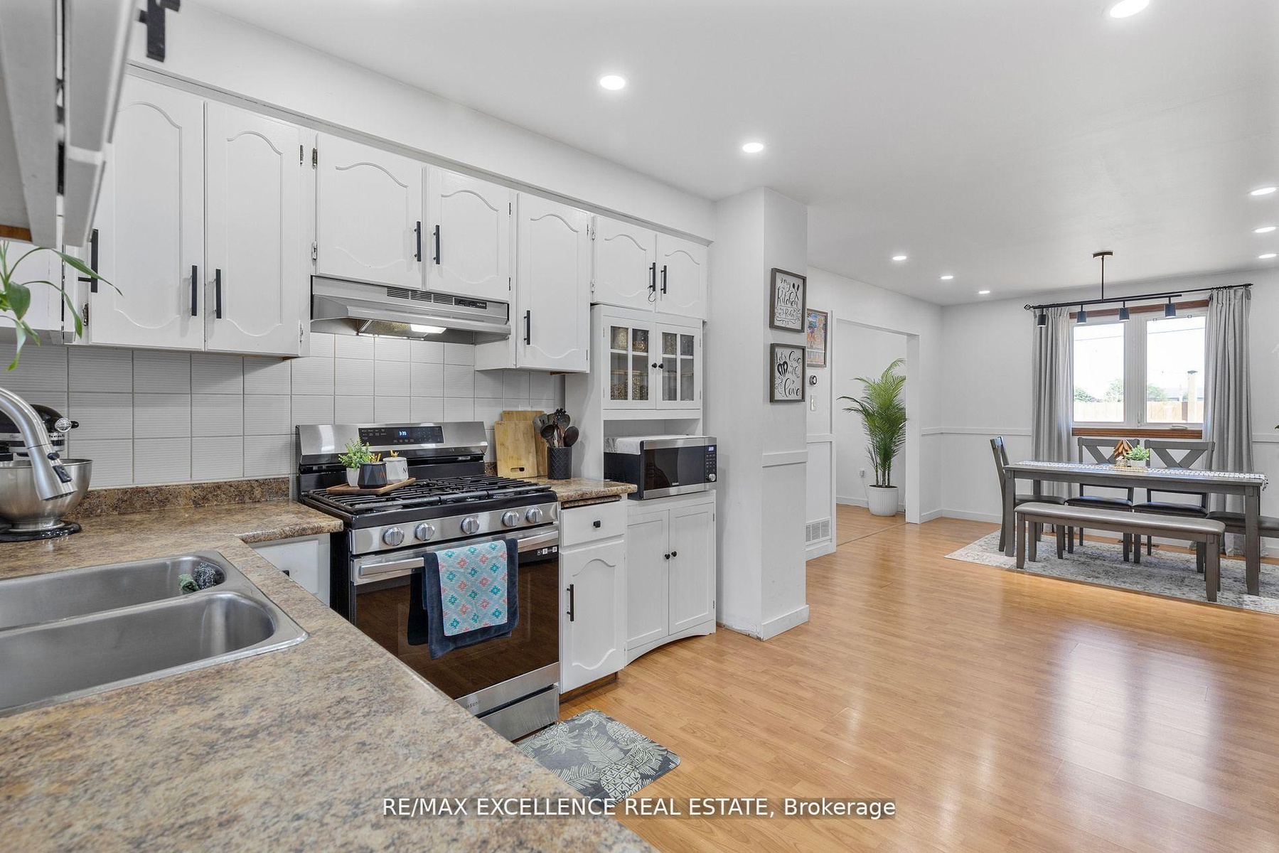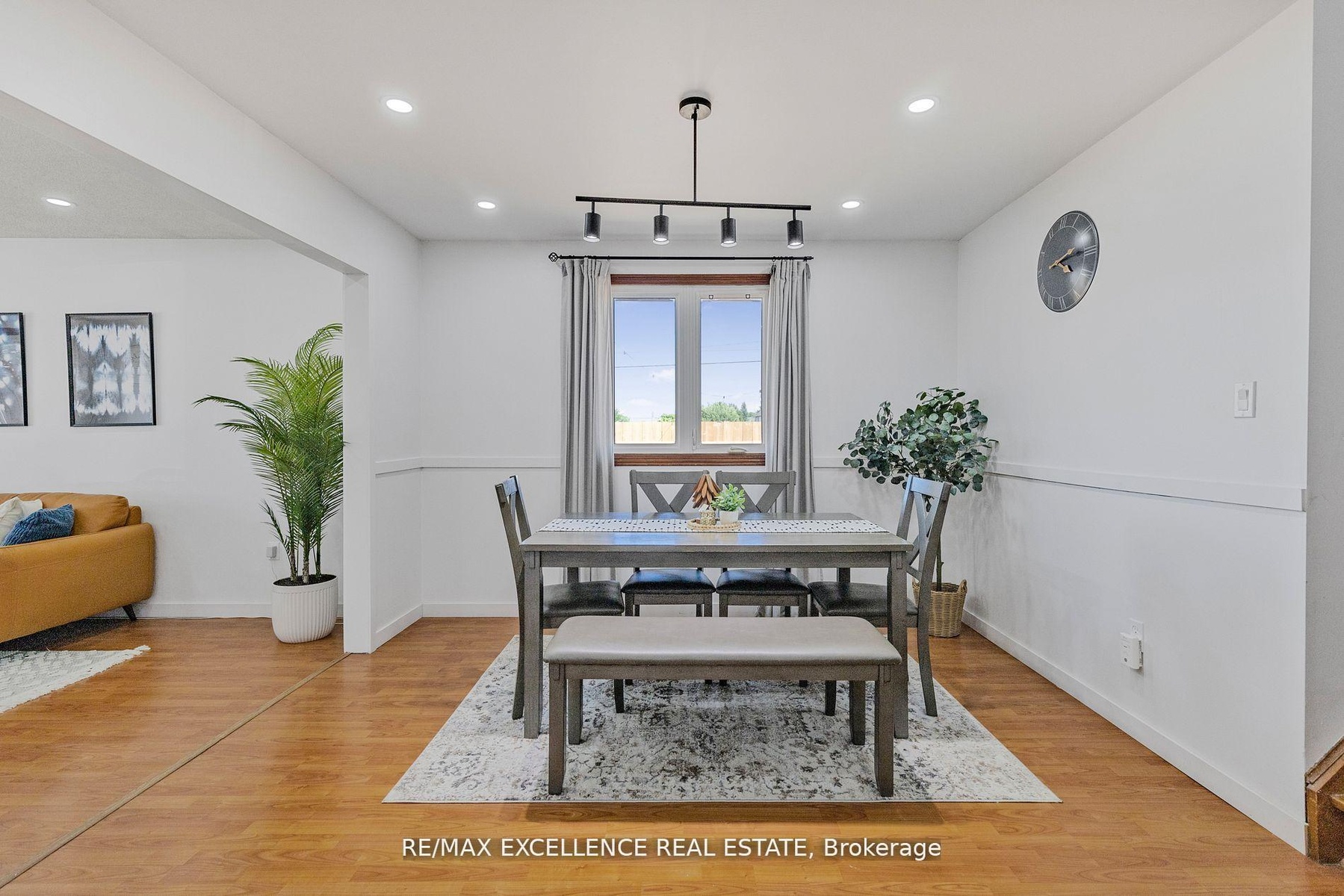 Welcome to 102 Juniper Drive, a well maintained 3-level detached backsplit situated on a massive premium corner lot in a desirable Stoney Creek neighborhood. This spacious 5 bedroom,2 bathroom home features a functional layout with a fully finished second level offering ample space for extended family living or future in-law suite potential. The lower level remains unfinished, providing an excellent opportunity to customize additional living space or rental setup. Recent upgrades (within past 2 years) include newer appliances (fridge, gas stove, dishwasher, washer & dryer), energy-efficient pot lights on both main and second levels, fresh paint with feature wall accents, modified kitchen and bathrooms, new fence and enhanced security with cameras and video doorbell. The finished second level includes two additional bedrooms, updated carpet-free flooring. With a single car garage and a double driveway, this home offers space, comfort, and future flexibility. Located in a family friendly neighborhood close to schools, parks, shopping, and highway access, this is an ideal home formulti-generational living or investment.
