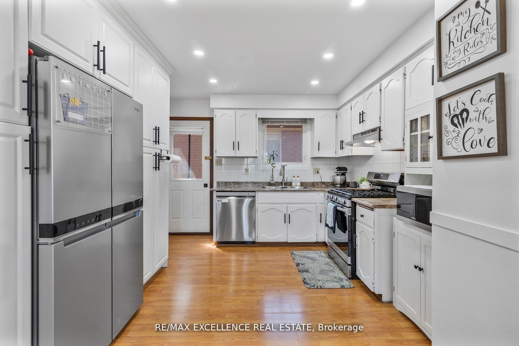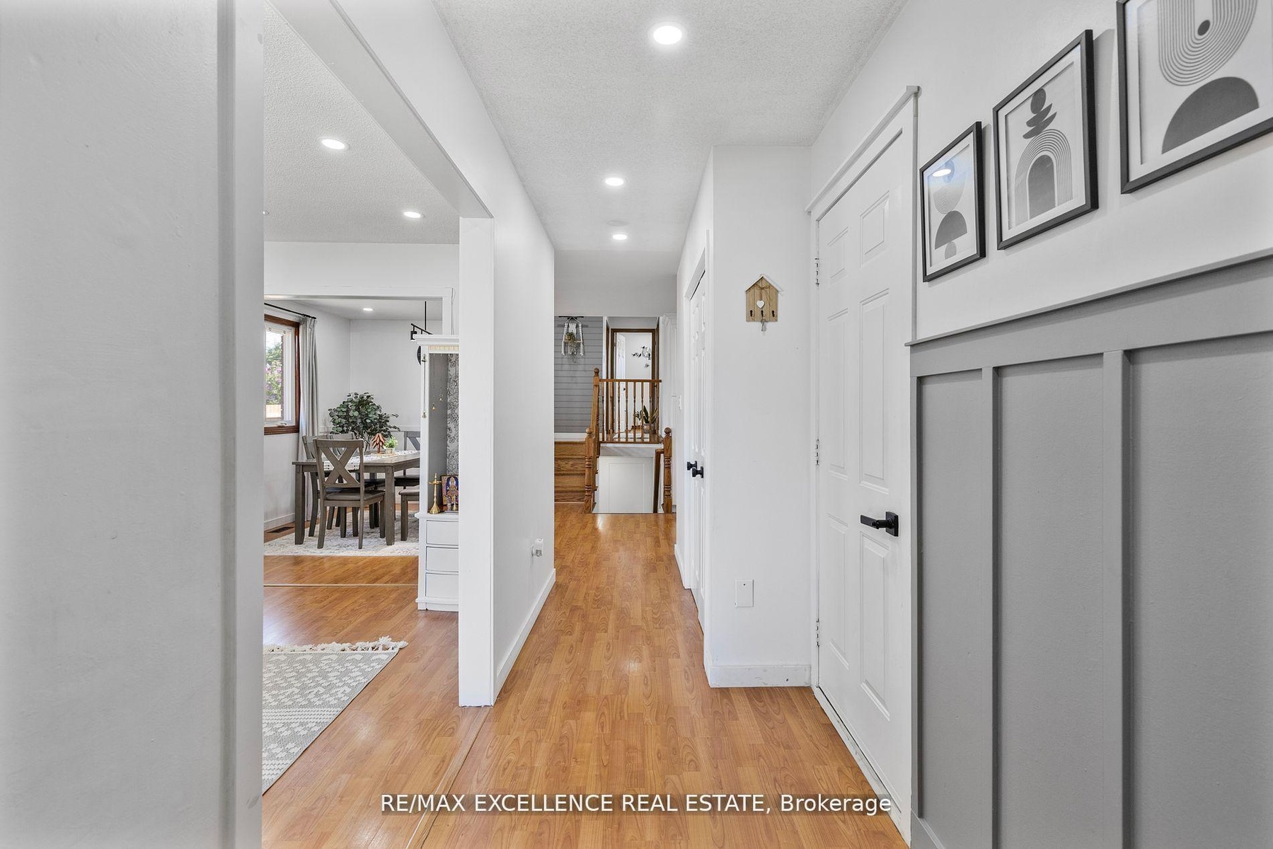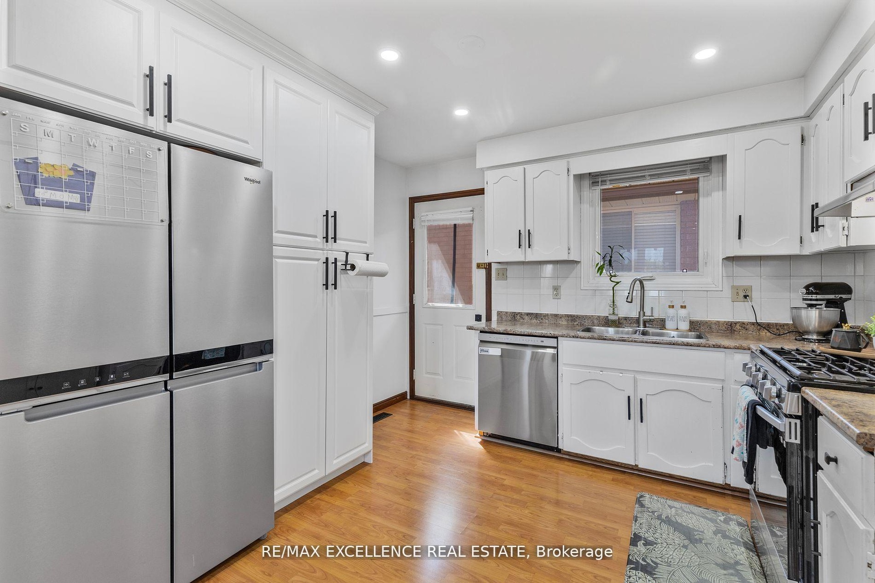 Welcome to 102 Juniper Drive, a well maintained 3-level detached backsplit situated on a massive premium corner lot in a desirable Stoney Creek neighborhood. This spacious 5 bedroom,2 bathroom home features a functional layout with a fully finished second level offering ample space for extended family living or future in-law suite potential. The lower level remains unfinished, providing an excellent opportunity to customize additional living space or rental setup. Recent upgrades (within past 2 years) include newer appliances (fridge, gas stove, dishwasher, washer & dryer), energy-efficient pot lights on both main and second levels, fresh paint with feature wall accents, modified kitchen and bathrooms, new fence and enhanced security with cameras and video doorbell. The finished second level includes two additional bedrooms, updated carpet-free flooring. With a single car garage and a double driveway, this home offers space, comfort, and future flexibility. Located in a family friendly neighborhood close to schools, parks, shopping, and highway access, this is an ideal home formulti-generational living or investment.