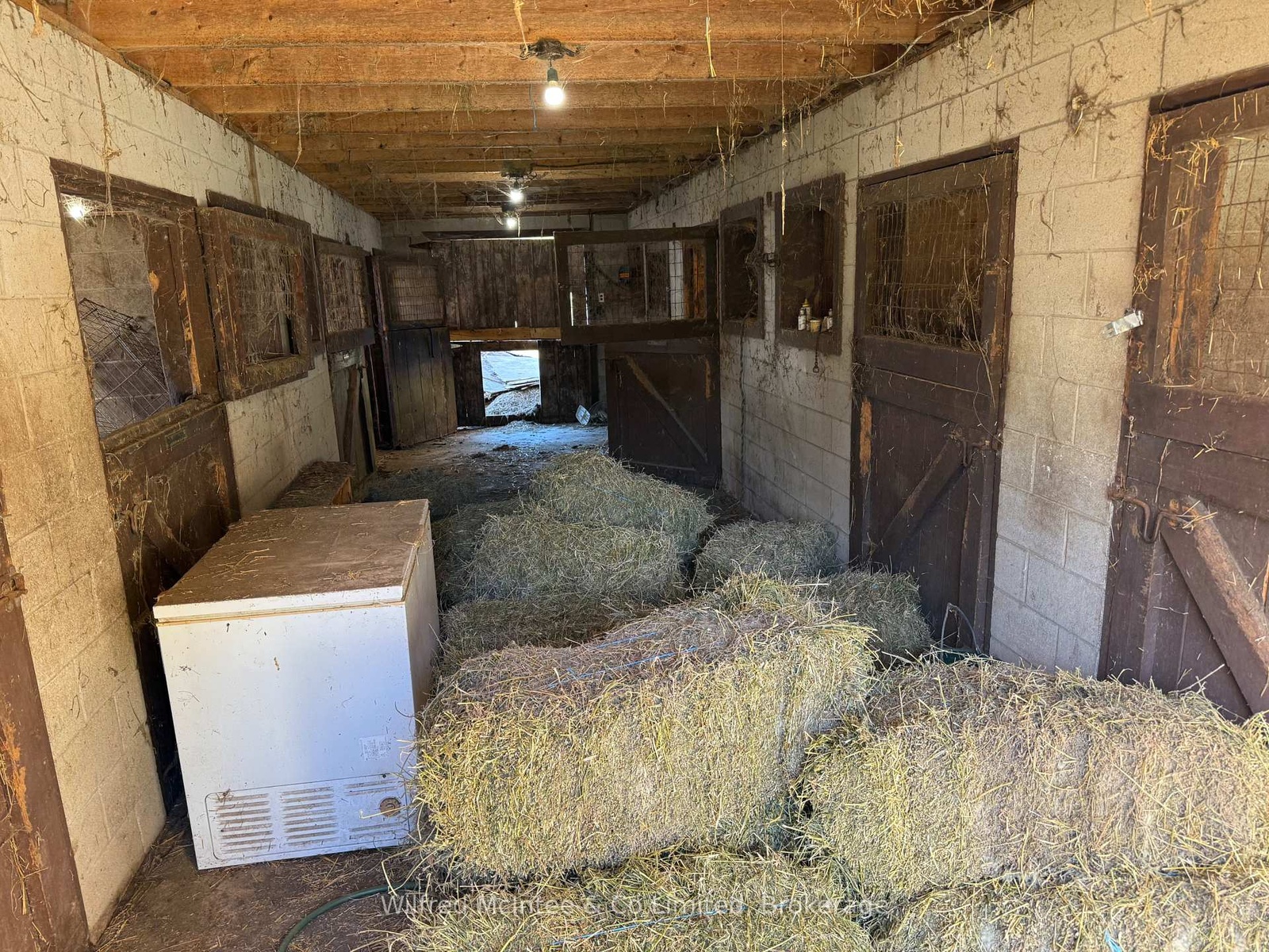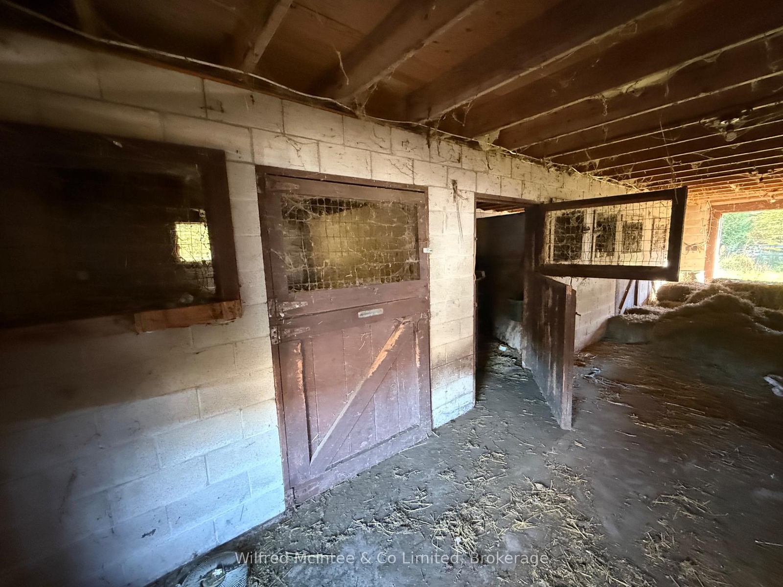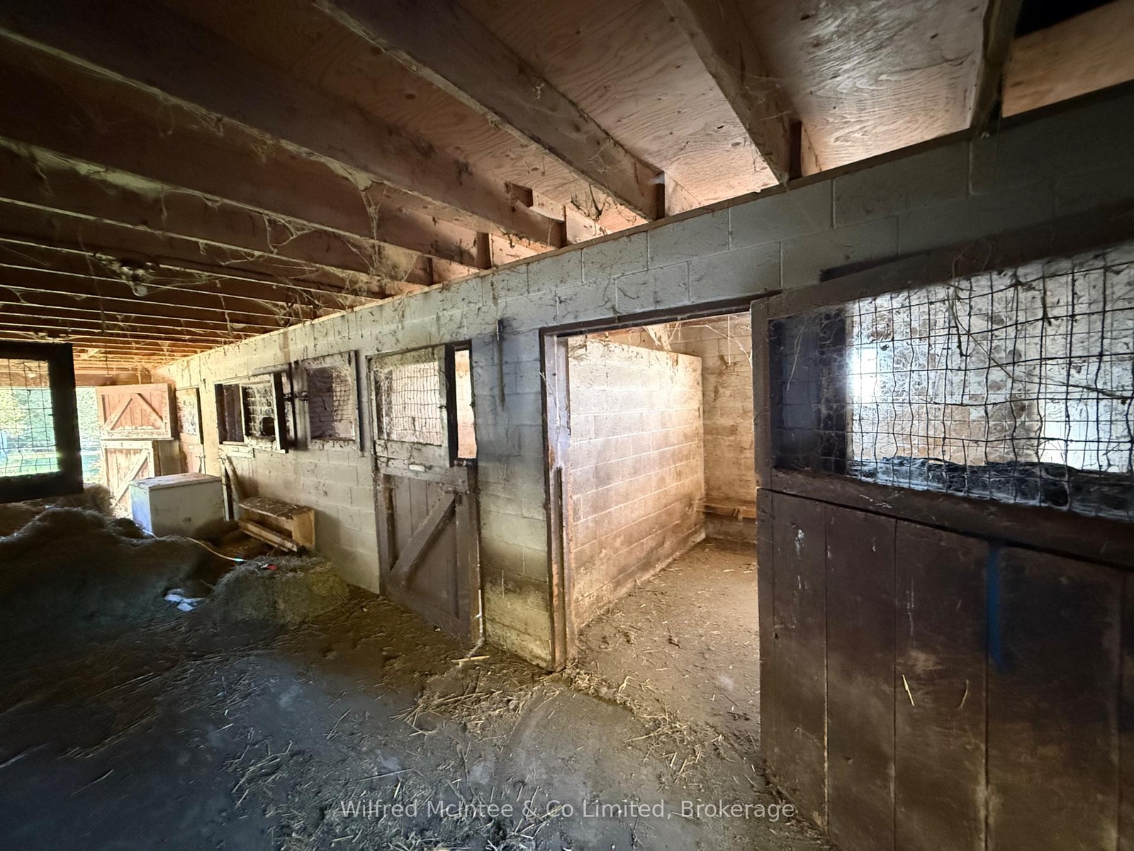 Secluded 50-Acre Horse or Hobby Farm. Set on a beautiful and private 50-acre country property, this one-owner, three-storey home offers peace, privacy, and an abundance of wildlife including deer and a variety of birds. Approximately 35-40 acres are workable land, with about 8 acres of mixed bush. An excellent 30 x 40 horse barn features eight box stalls, hay and straw storage, water and hydro, plus a 15 x 30 lean-to/drive shed. The barn is a couple of years older than the home. A former tile-drained riding ring remains on site. The 34-year-old home offers 3 bedrooms, 2.5 baths, and a flexible layout ideal for extended family or an in-law setup with a second kitchen on the main level. The main floor includes an open-concept kitchen/living area, one bedroom, a 2-pc bath, propane wall heater, and furnace/utility room with 200-amp breakers and a 3-year-old pressure tank. The second level features an open kitchen/dining/living area with dishwasher, centre island, laundry, 4-pc bath, and two walkouts to decks. The third level has two bedrooms, a 4-pc bath, and a walkout to a balcony. Pine plank flooring throughout all levels. A stair lift connects the main to the top floor. Additional features include central air (approx. 8 years), oil furnace serviced annually, propane wall heater (4 years, capable of heating the whole house), and a shingled roof with half replaced 7 years ago and the other half about 15 years ago. The drilled well (approx. 120 ft deep) provides excellent water, and the raised septic system (10-12 years old) was pumped 6 months ago by Schaus. Utilities: Hydro approx. $60/mo; Propane equal billing $340/mo for 6 months; Oil approx. $600/yr. Home requires some updating (cleaning/decorating) but offers tremendous potential in a picturesque, quiet country setting.