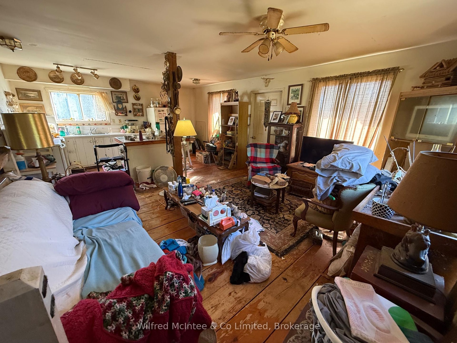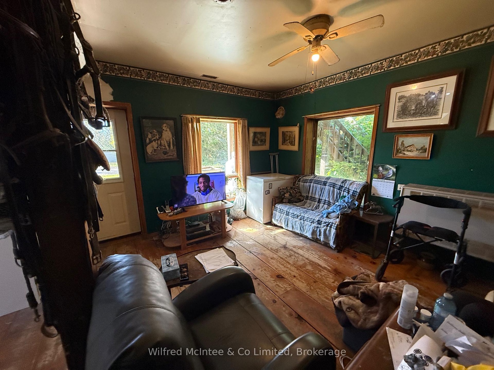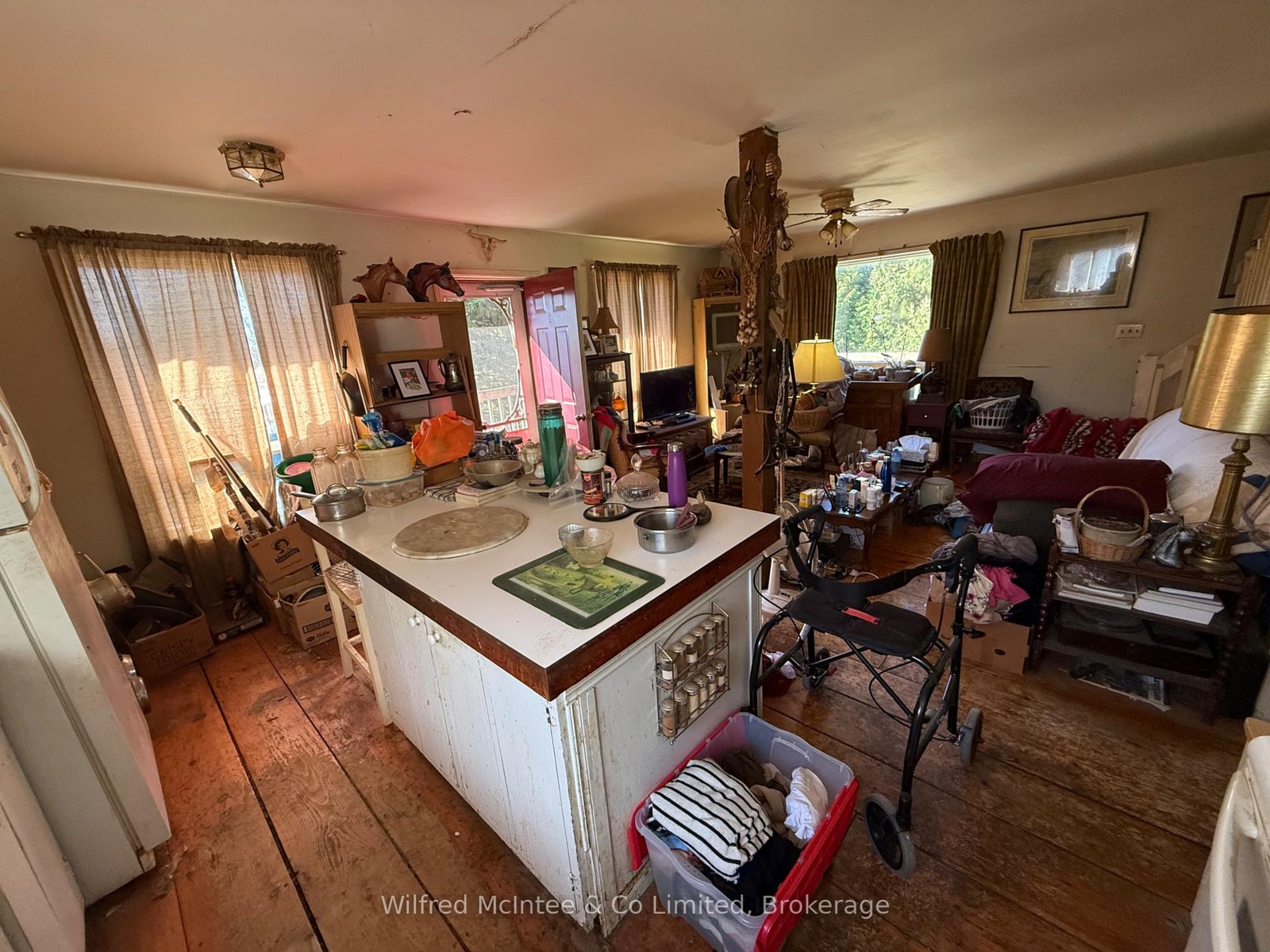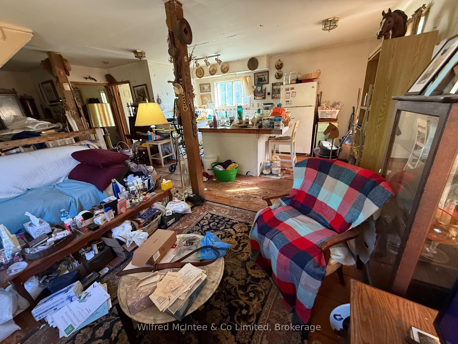 Secluded 50-Acre Horse or Hobby Farm. Set on a beautiful and private 50-acre country property, this one-owner, three-storey home offers peace, privacy, and an abundance of wildlife including deer and a variety of birds. Approximately 35-40 acres are workable land, with about 8 acres of mixed bush. An excellent 30 x 40 horse barn features eight box stalls, hay and straw storage, water and hydro, plus a 15 x 30 lean-to/drive shed. The barn is a couple of years older than the home. A former tile-drained riding ring remains on site. The 34-year-old home offers 3 bedrooms, 2.5 baths, and a flexible layout ideal for extended family or an in-law setup with a second kitchen on the main level. The main floor includes an open-concept kitchen/living area, one bedroom, a 2-pc bath, propane wall heater, and furnace/utility room with 200-amp breakers and a 3-year-old pressure tank. The second level features an open kitchen/dining/living area with dishwasher, centre island, laundry, 4-pc bath, and two walkouts to decks. The third level has two bedrooms, a 4-pc bath, and a walkout to a balcony. Pine plank flooring throughout all levels. A stair lift connects the main to the top floor. Additional features include central air (approx. 8 years), oil furnace serviced annually, propane wall heater (4 years, capable of heating the whole house), and a shingled roof with half replaced 7 years ago and the other half about 15 years ago. The drilled well (approx. 120 ft deep) provides excellent water, and the raised septic system (10-12 years old) was pumped 6 months ago by Schaus. Utilities: Hydro approx. $60/mo; Propane equal billing $340/mo for 6 months; Oil approx. $600/yr. Home requires some updating (cleaning/decorating) but offers tremendous potential in a picturesque, quiet country setting.