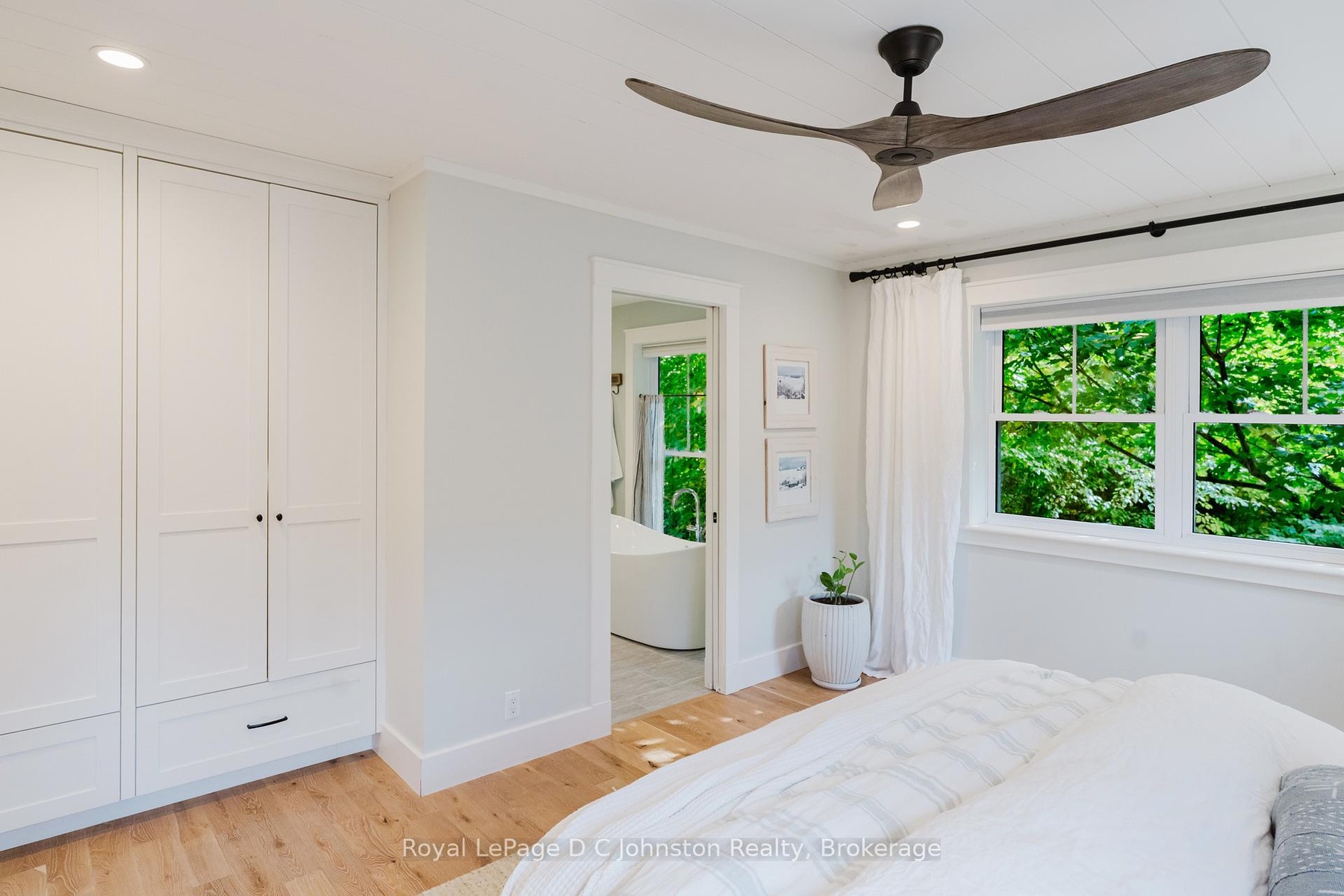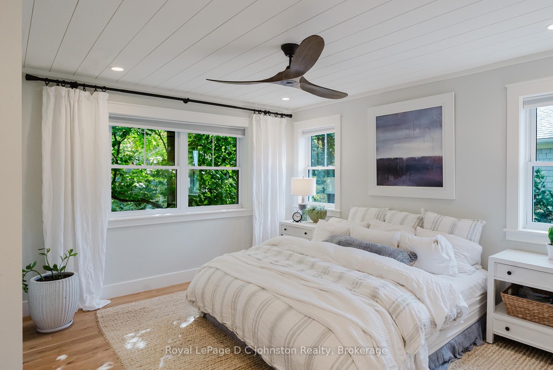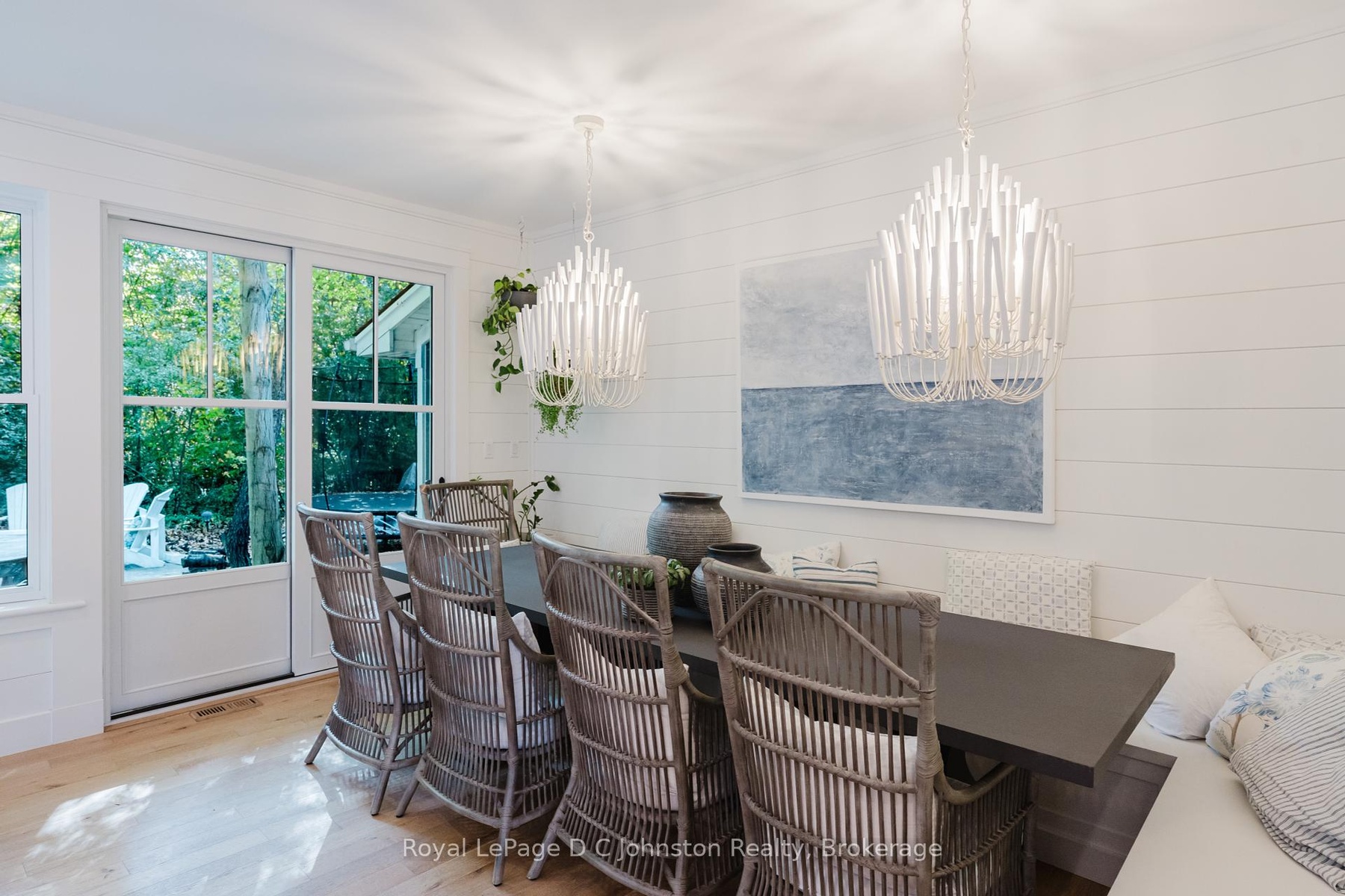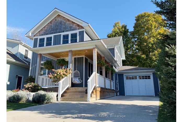 Welcome to this stunning custom Devitt Uttley home, completed in 2018 on a picturesque pie-shaped lot along Cedar Bush Drive in the heart of Southampton. Set on a deep 190-foot lot backing onto a protected natural area with tranquil forest views & a little creek, this 2-storey, 5-bedroom, 3.5-bath home offers over 2700 sq. ft. of living space and perfectly balances craftsmanship, luxury, & nature. Beautifully landscaped grounds & a covered front porch with pine underlay invite quiet mornings, while Maibec siding with shake accents & a concrete driveway enhance its curb appeal.Inside, discover 9 ceilings, white oak floors throughout, shiplap detailing, designer lighting, & Caesarstone quartz in the kitchen & primary ensuite. The chefs kitchen by Wellington Millwork features dovetail cabinetry, a 48 Jenn-Air range with double ovens & griddle, a 36 Franke farmhouse sink, & a built-in paneled Fisher & Paykel refrigerator with articulating doors & matching Bosch dishwasher.Two custom LePage 8 sliding glass doors with double-hung windows between them create a beautifully balanced expanse, filling the living & dining area with light & serene forest views. The space opens to a private backyard oasis with flagstone patio, firepit, & gas BBQ hookup- ideal for entertaining or unwinding under the stars.Upstairs offers 4 well-planned bedrooms, including a luxurious primary suite with a custom built-in wardrobe & spa-inspired ensuite with Oceania freest&ing tub. Two of the bedrooms feature custom built-in beds with storage drawers beneathshowcasing efficient use of space.The finished lower level includes radiant heated floors, a fifth bedroom & bath, recreation room, & laundry. Completing this incredible property is a drive-through garage with double-sided doors, perfect for easy backyard access or boat & trailer storage. Every detail has been intentionally designed for comfort, & enduring beauty - on a quiet street, close to the beach, with a true sense of community.