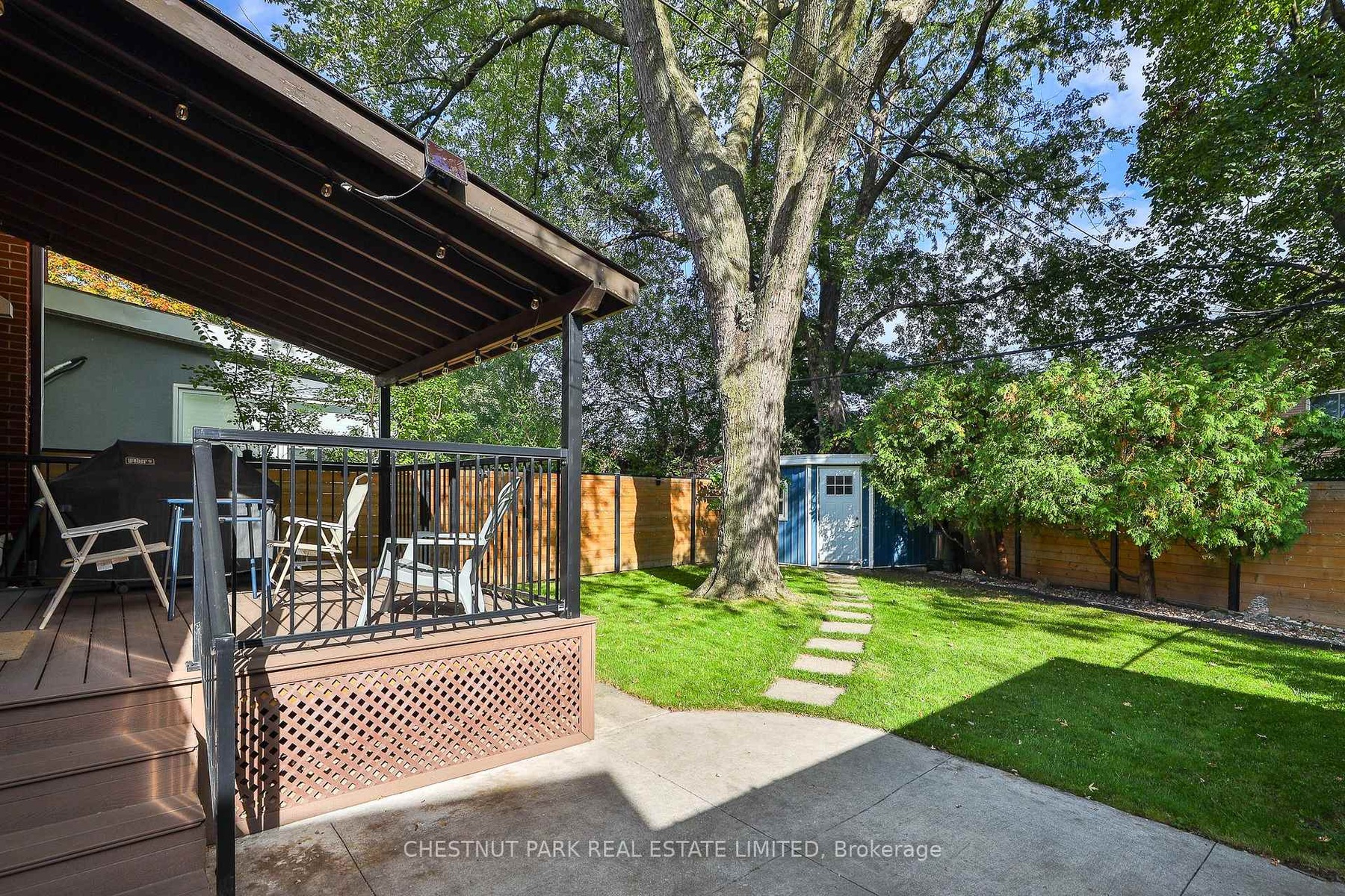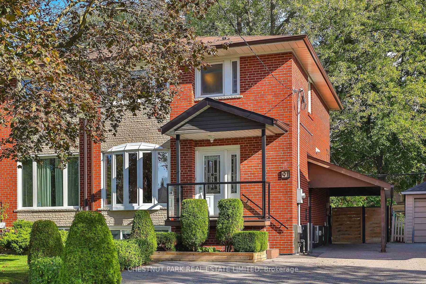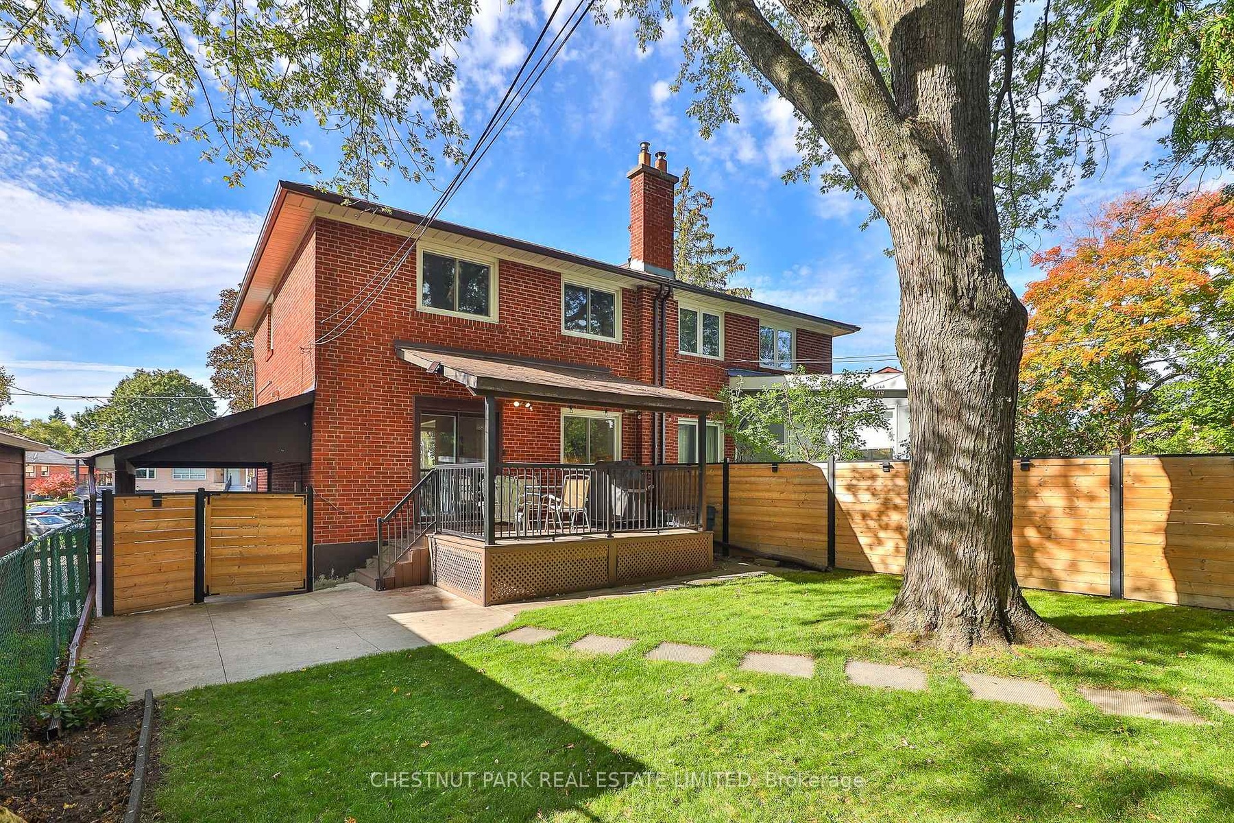 Stunning, beautifully renovated 3 bedroom, 3 bathroom family home with a finished basement, private driveway with a carport, on a large lot that widens to 40 feet at the back on a prime, quiet, low traffic street. The main floor features a fabulous open concept floor plan, including gorgeous maple hardwood floors, a custom gourmet kitchen with full-sized stainless steel appliances, quartz countertops, Aya custom cabinets and a breakfast bar that seats three people; a spacious living room with a large bow window (new glass installed in 2025); a good sized dining area, smooth ceilings and pot lights throughout, a 2-piece powder room, tiled foyer with a double closet, and a walk-out to the private covered deck and large, fully fenced, bright south-facing yard. The 2nd floor features hardwood floors, 3 excellent-sized bedrooms, all with ample closet space and upgraded light fixtures, and a fully renovated 4-piece bathroom with a soaker tub and rainfall shower head. The fabulous finished lower level features a home entertainment area with walls and ceiling wired for surround sound, additional ceiling insulation for soundproofing, and a custom room darkening blind; a spa-like 3-piece bathroom/laundry room with a glass shower; lots of storage space including a storage room, a double door closet, and a large utility room that includes shelving for additional storage, 200 amps updated electrical system, new furnace (2022), updated A/C (2017). The landscaped yards feature a back deck and front porch rebuilt with composite decking, new railings, custom-built shed, fence with solar lights, concrete-poured patio, and eaves troughs with leaf guards (all completed in 2020). Excellent schools: Roywood Public School (JK - 5), Donview Middle Health and Wellness Academy, George S Henry Academy (9 - 12). Quick access to HWY 401 and DVP/404 and lots of grocery stores, shops, restaurants and everything you need within a short drive. OFFERS ANYTIME. Open House Sat/Sun 1-4 pm.
