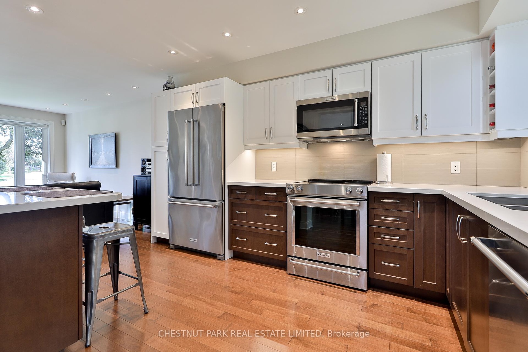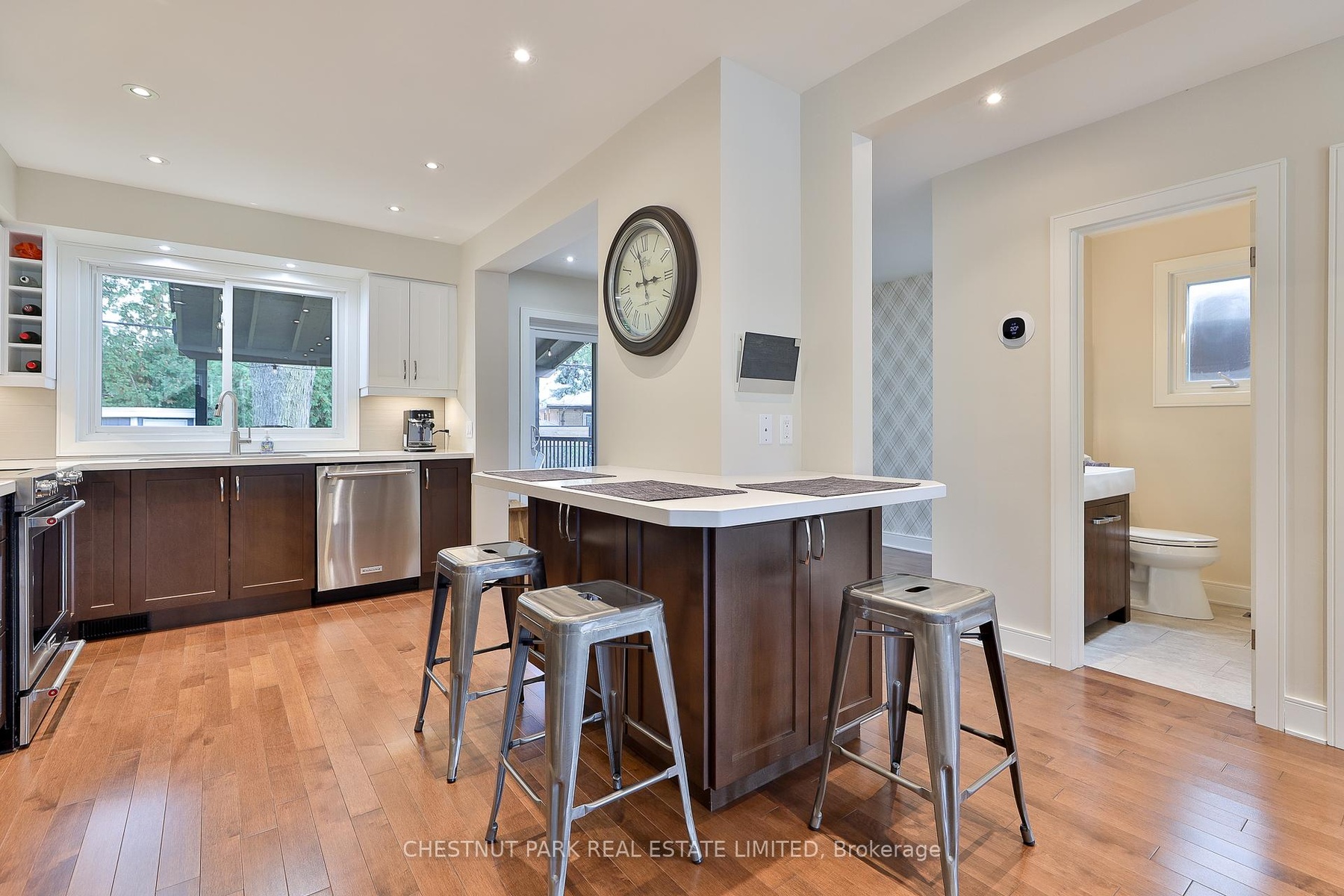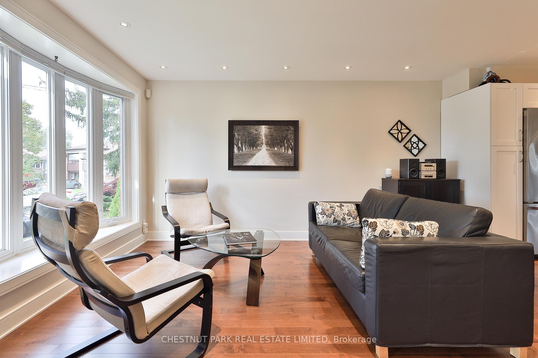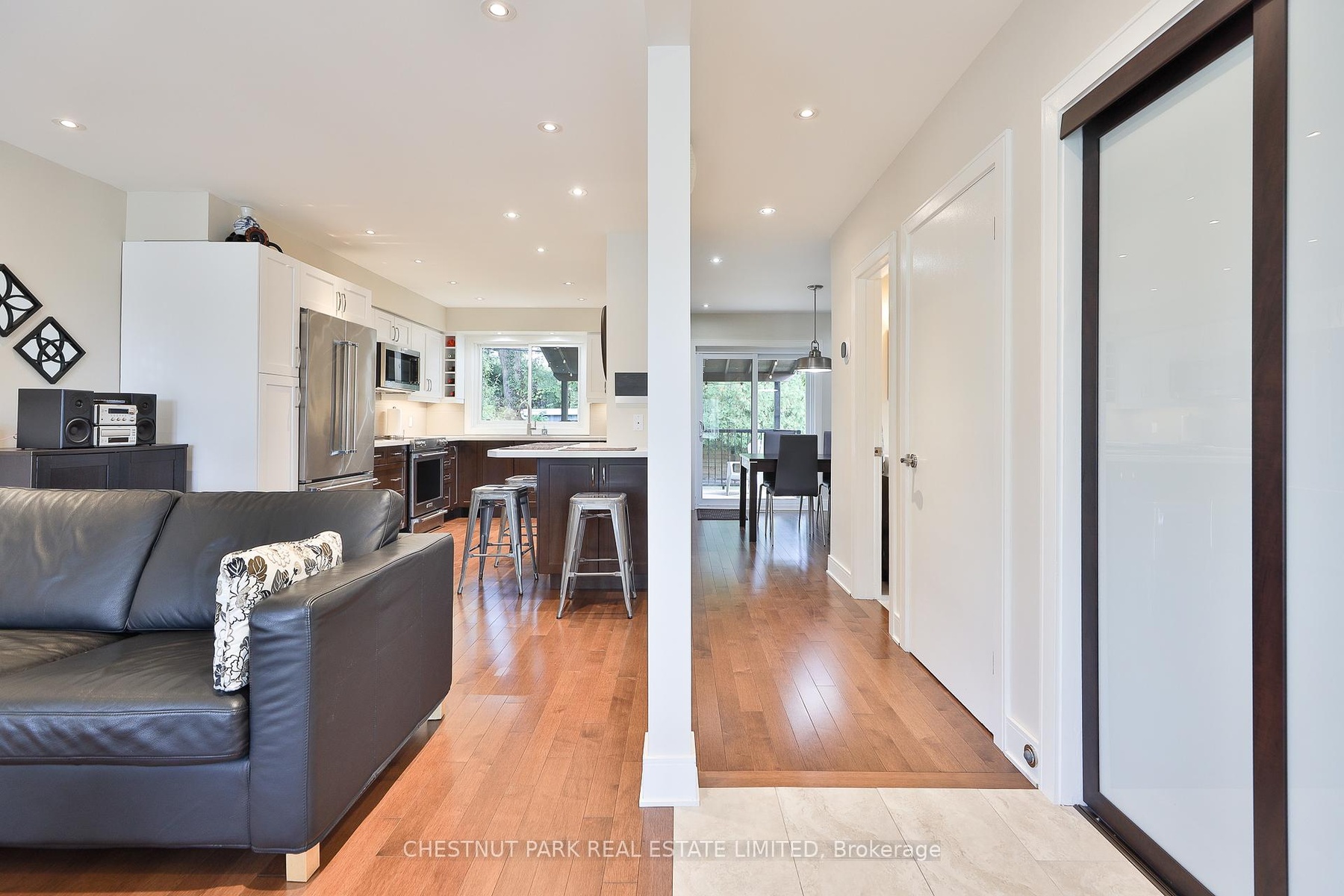 Stunning, beautifully renovated 3 bedroom, 3 bathroom family home with a finished basement, private driveway with a carport, on a large lot that widens to 40 feet at the back on a prime, quiet, low traffic street. The main floor features a fabulous open concept floor plan, including gorgeous maple hardwood floors, a custom gourmet kitchen with full-sized stainless steel appliances, quartz countertops, Aya custom cabinets and a breakfast bar that seats three people; a spacious living room with a large bow window (new glass installed in 2025); a good sized dining area, smooth ceilings and pot lights throughout, a 2-piece powder room, tiled foyer with a double closet, and a walk-out to the private covered deck and large, fully fenced, bright south-facing yard. The 2nd floor features hardwood floors, 3 excellent-sized bedrooms, all with ample closet space and upgraded light fixtures, and a fully renovated 4-piece bathroom with a soaker tub and rainfall shower head. The fabulous finished lower level features a home entertainment area with walls and ceiling wired for surround sound, additional ceiling insulation for soundproofing, and a custom room darkening blind; a spa-like 3-piece bathroom/laundry room with a glass shower; lots of storage space including a storage room, a double door closet, and a large utility room that includes shelving for additional storage, 200 amps updated electrical system, new furnace (2022), updated A/C (2017). The landscaped yards feature a back deck and front porch rebuilt with composite decking, new railings, custom-built shed, fence with solar lights, concrete-poured patio, and eaves troughs with leaf guards (all completed in 2020). Excellent schools: Roywood Public School (JK - 5), Donview Middle Health and Wellness Academy, George S Henry Academy (9 - 12). Quick access to HWY 401 and DVP/404 and lots of grocery stores, shops, restaurants and everything you need within a short drive. OFFERS ANYTIME. Open House Sat/Sun 1-4 pm.