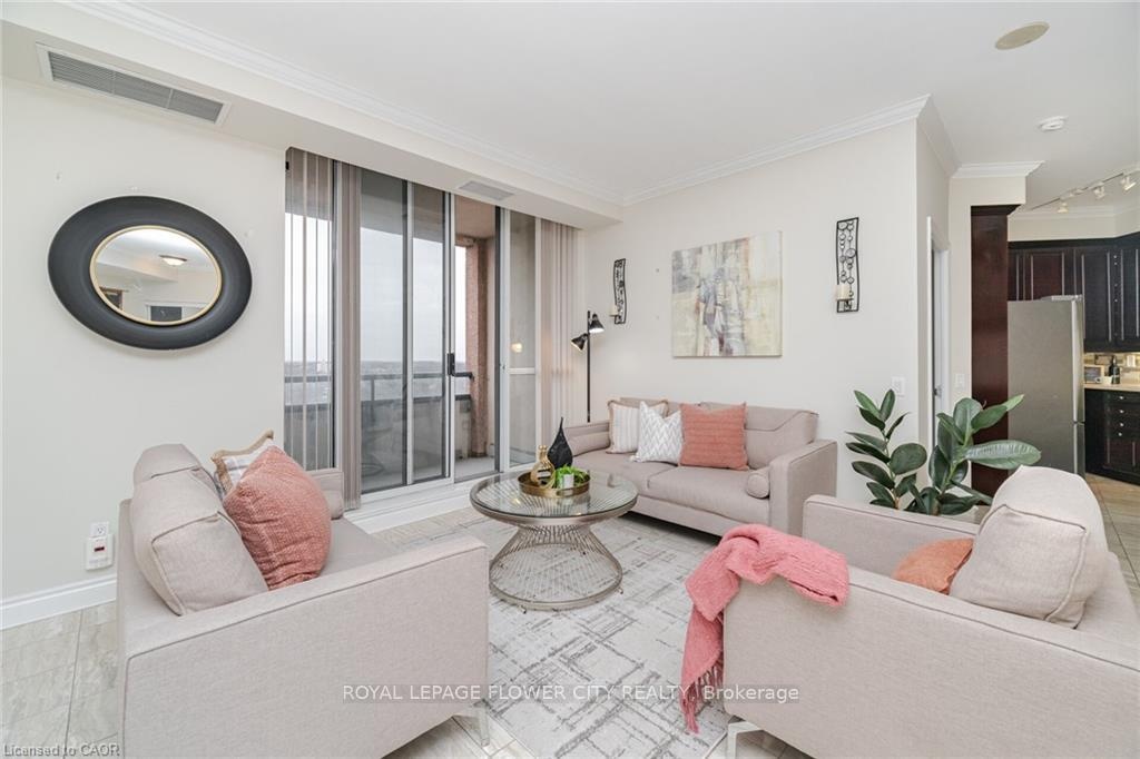 ""P E N T H O U S E "" "" DOWNTOWN BRAMPTON"" - **Click On Multimedia Link For Full Video Tour &360 Matterport Virtual 3D Tour** Welcome To This Exceptional Corner Penthouse Suite In The Heart Of Downtown Brampton, Offering Over 1,055 Sq. Ft. Of Luxurious Living Space! Originally Designed As A 2-Bedroom Model Unit; Model- Easily Converts Back., This Beautifully Maintained Home Now Features A Spacious 1-Bedroom + Den Layout, Perfect For Those Seeking Extra Flexibility. The Open-Concept Design Is Ideal For Both Relaxation And Entertaining, Featuring An Updated Kitchen With Ample Counter Space, Stainless Steel Appliances, And A Cozy Breakfast Area. The Primary Bedroom Boasts A 4-Piece En-suite And A Walk-In Closet With Organizers, Ensuring Maximum Storage And Comfort. Enjoy Breathtaking City Views From Your Private Balcony, And Take Advantage Of The Unbeatable Location Just Steps From Gage Park, The Rose Theater, The Brampton GO , Major Bank, Station, City Hall, The YMCA, Peel Memorial Hospital, Weekly Farmers Markets, Hwy 410 Shopping, Dining, And More. This Prestigious Building Offers 24-Hour Concierge Service, A Rooftop Terrace, A Fully Equipped Gym, And An Elegant Party Room. Don't Miss This Rare Opportunity To Own A Penthouse Suite In One Of Brampton's Most Sought-After Locations!