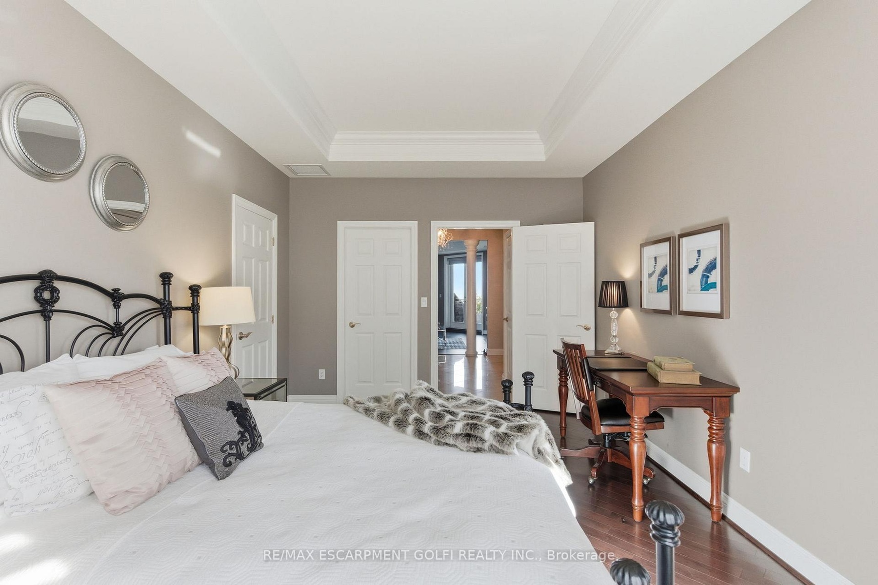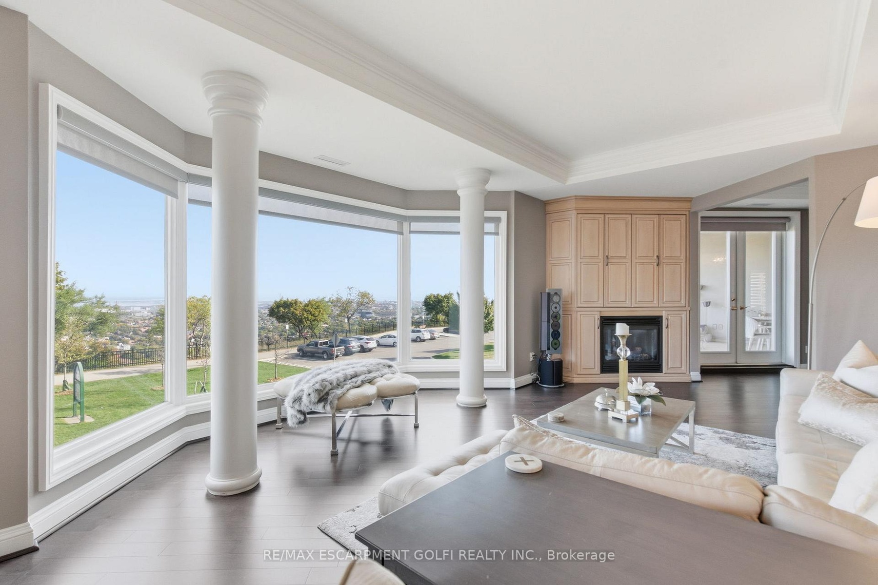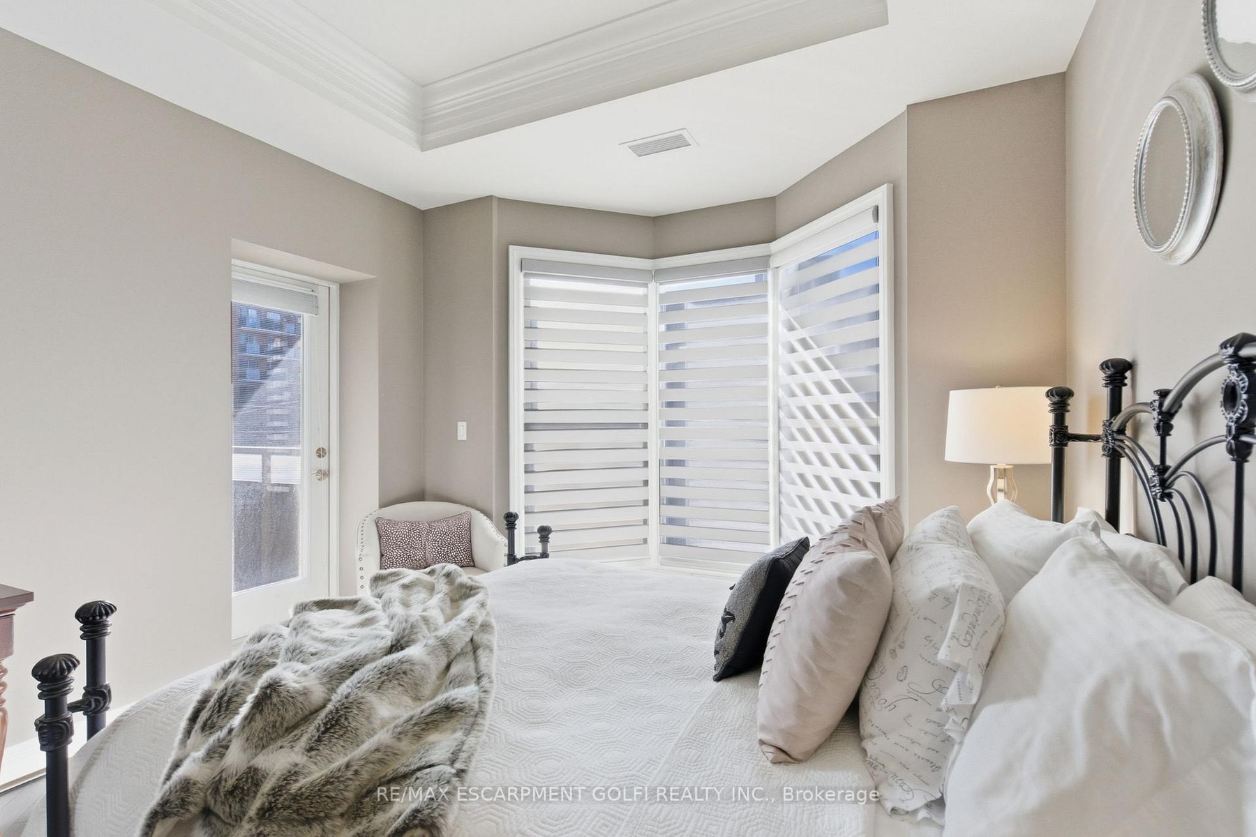 Welcome to The Madison, an exclusive boutique condominium that embodies timeless elegance and refined living. Perfectly perched along the escarpment, this residence offers a sophisticated retreat where design, comfort, and lifestyle unite in perfect harmony. This 2,400 sq ft luxury suite features 3 bedrooms, 2 bathrooms, and a private elevator opening directly into your home, creating a sense of privacy and prestige. Every detail reflects superior craftsmanship - from coffered ceilings and crown molding to hardwood floors, granite surfaces, pot lighting, and custom cabinetry throughout. The gourmet kitchen inspires culinary creativity with dual refrigerators, built-in ovens, cooktop, and dishwasher, ideal for hosting or everyday living. The expansive great room, centered around a gas fireplace, opens to a 400 sq ft terrace that invites morning coffee or evenings under the stars. The primary suite offers a serene escape with walk-in closets and a spa-like 5-piece ensuite designed for relaxation. The second bedroom features its own private balcony and walk-in closet, while the third bedroom or den offers flexibility for a home office or cozy lounge. At The Madison, luxury extends beyond your door - a place where you can entertain effortlessly, unwind in style, and enjoy the ease of in-suite laundry with built-ins and a beverage fridge, two underground parking spaces, and a storage locker. Elegant, intimate, and distinctly sophisticated - The Madison offers a lifestyle as exceptional as its design.