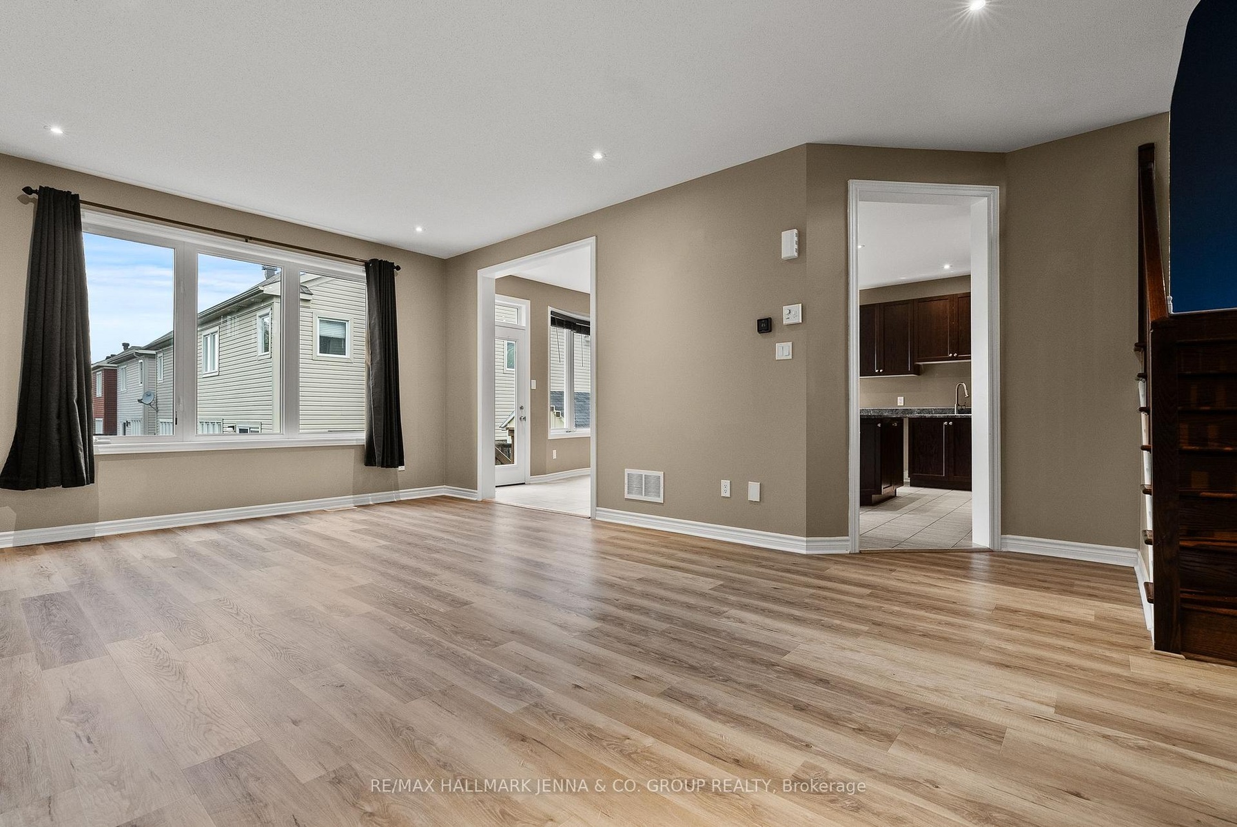Experience refined living in this stunning Mattamy Queenbank model, offering over 2,070 sq. ft. of beautifully designed space in the heart of Stittsville. This 3-bedroom residence blends modern elegance with everyday comfort, showcasing sun-filled interiors and sophisticated finishes throughout. The main floor boasts an open-concept layout with expansive windows, durable yet stylish flooring, and elegant hardwood staircases. Take a few steps up to the inviting great room, anchored by a cozy gas fireplace, creates the perfect setting for both intimate evenings and lively gatherings. Upstairs, the primary suite impresses with a spacious walk-in closet and a ensuite, while two additional bedrooms provide comfort and versatility for family or guests. The high-ceiling basement awaits your personal touch, offering endless possibilities for recreation or relaxation. Step out from the kitchen to a deck with space for a barbecue, overlooking a fully fenced backyard, ideal for entertaining or enjoying peaceful moments outdoors. Perfectly situated near top-rated schools, parks, shopping, and all the conveniences of Stittsville and Kanata, this home combines location, lifestyle, and luxury in one exceptional package.