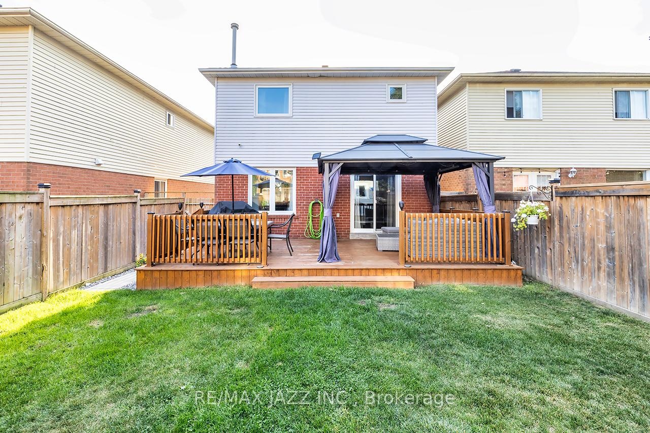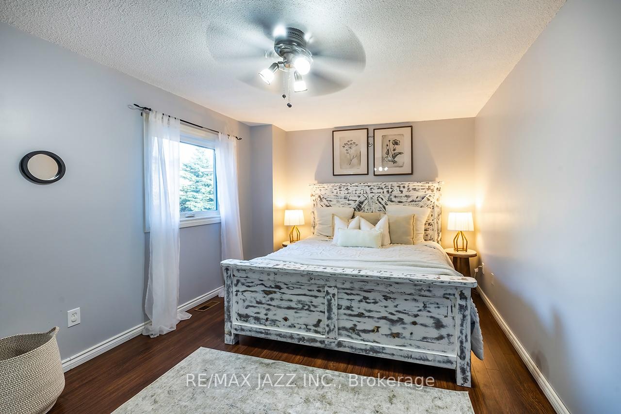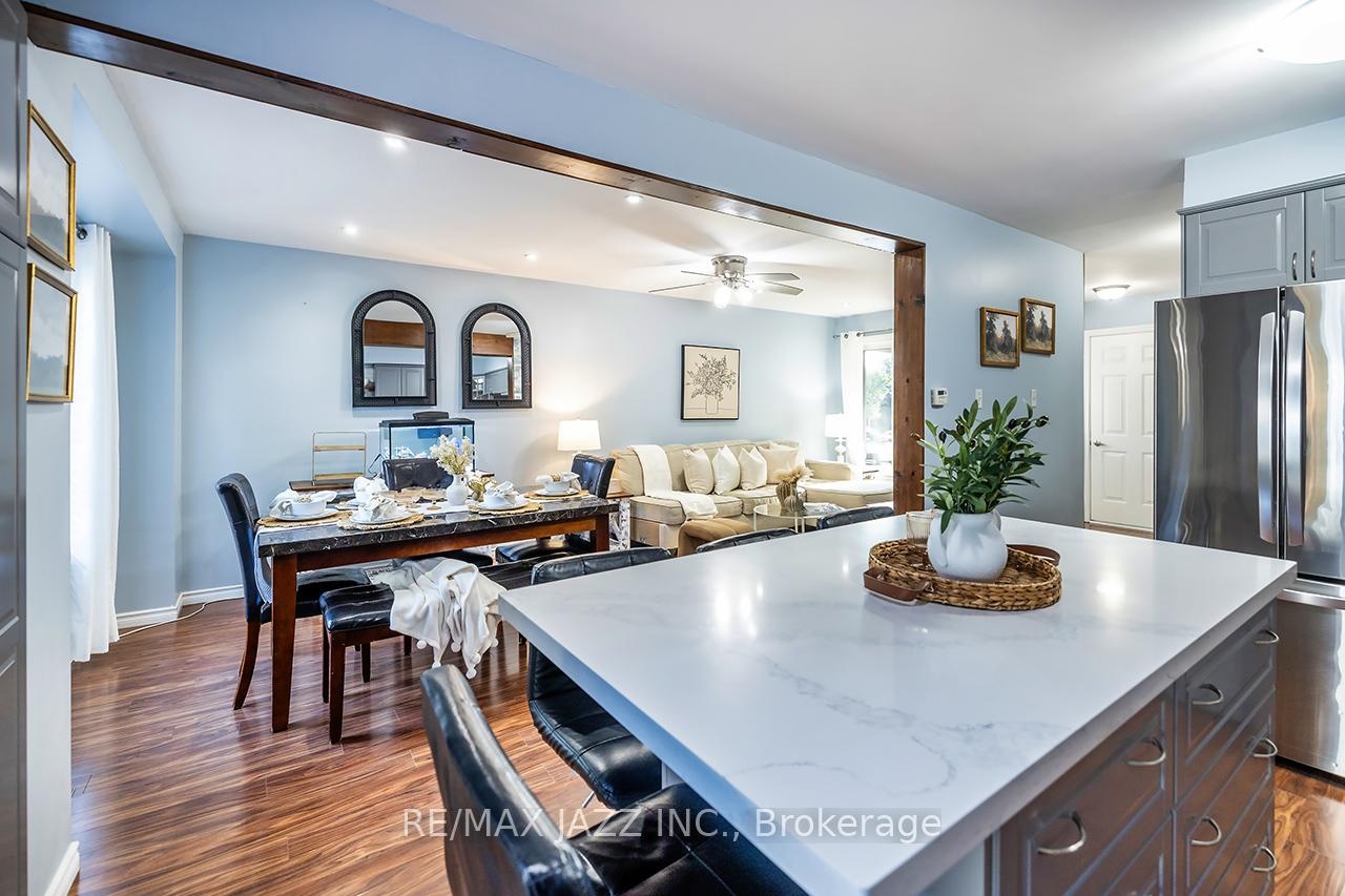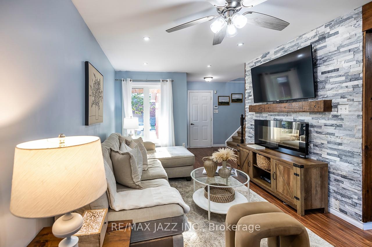Nestled on a quiet crescent in Aspen Springs, West Bowmanville, this spacious (one of the largest linked models in the area) and thoughtfully updated 3-bedroom + BONUS ROOM (easily convertible to 4th bedroom), 2.5 bath , 2-storey home is cozy with modern upgrades. Located in a family-friendly neighborhood close to schools, shopping, HWYs, the home features a bright open-concept main floor with a beautifully renovated eat-in kitchen (2020) boasting quartz countertops, a large center island with breakfast bar, gas stove, and stainless steel appliances. The kitchen walks out to a fully fenced backyard and spacious deck - perfect for entertaining. The combined living and dining room offers a warm ambiance with a cozy fireplace. Upstairs, a standout feature is the large family room with a bay window, wood-burning fireplace, and accent wall - easily convertible into a 4th bedroom. The primary suite includes a walk-in closet and a newly remodeled ensuite (2024), complemented by two additional bright and spacious bedrooms. The finished basement adds additional space ideal for a rec room, office, or home gym. Recent updates include: kitchen (5 yrs), ensuite (2024), other bathrooms (3 yrs), deck (4 yrs), roof (1.5 yrs), and driveway resealed (2025). With its inviting layout and stylish finishes, this home offers comfort, flexibility, and room to grow. Hot water tank rented. Furnace and AC will be included. WETT certified.