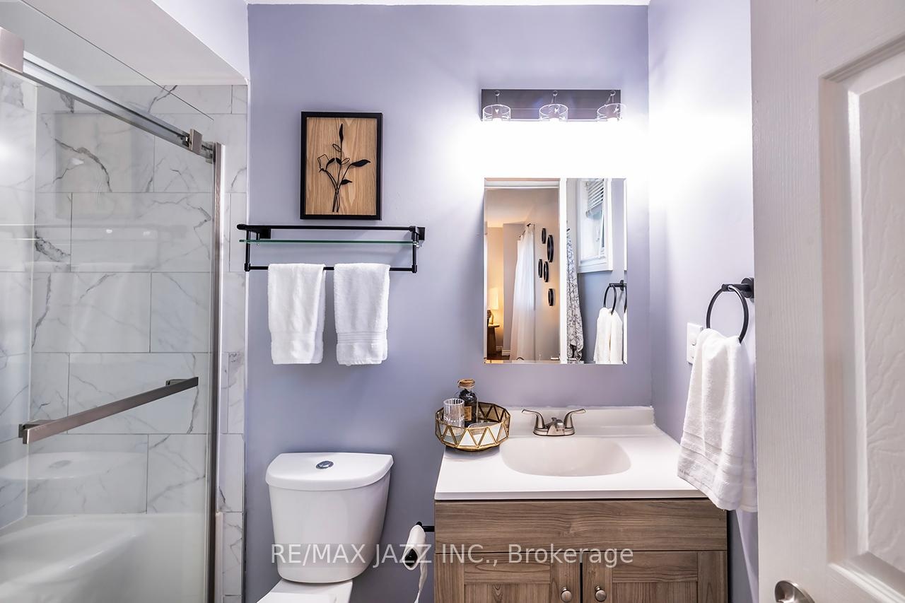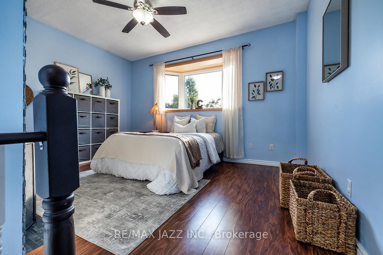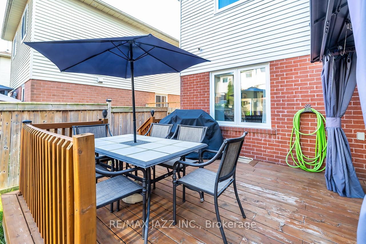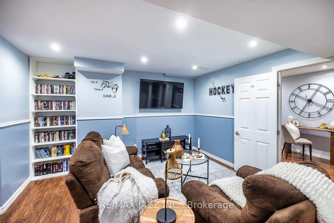 Nestled on a quiet crescent in Aspen Springs, West Bowmanville, this spacious (one of the largest linked models in the area) and thoughtfully updated 3-bedroom + BONUS ROOM (easily convertible to 4th bedroom), 2.5 bath , 2-storey home is cozy with modern upgrades. Located in a family-friendly neighborhood close to schools, shopping, HWYs, the home features a bright open-concept main floor with a beautifully renovated eat-in kitchen (2020) boasting quartz countertops, a large center island with breakfast bar, gas stove, and stainless steel appliances. The kitchen walks out to a fully fenced backyard and spacious deck - perfect for entertaining. The combined living and dining room offers a warm ambiance with a cozy fireplace. Upstairs, a standout feature is the large family room with a bay window, wood-burning fireplace, and accent wall - easily convertible into a 4th bedroom. The primary suite includes a walk-in closet and a newly remodeled ensuite (2024), complemented by two additional bright and spacious bedrooms. The finished basement adds additional space ideal for a rec room, office, or home gym. Recent updates include: kitchen (5 yrs), ensuite (2024), other bathrooms (3 yrs), deck (4 yrs), roof (1.5 yrs), and driveway resealed (2025). With its inviting layout and stylish finishes, this home offers comfort, flexibility, and room to grow. Hot water tank rented. Furnace and AC will be included. WETT certified.