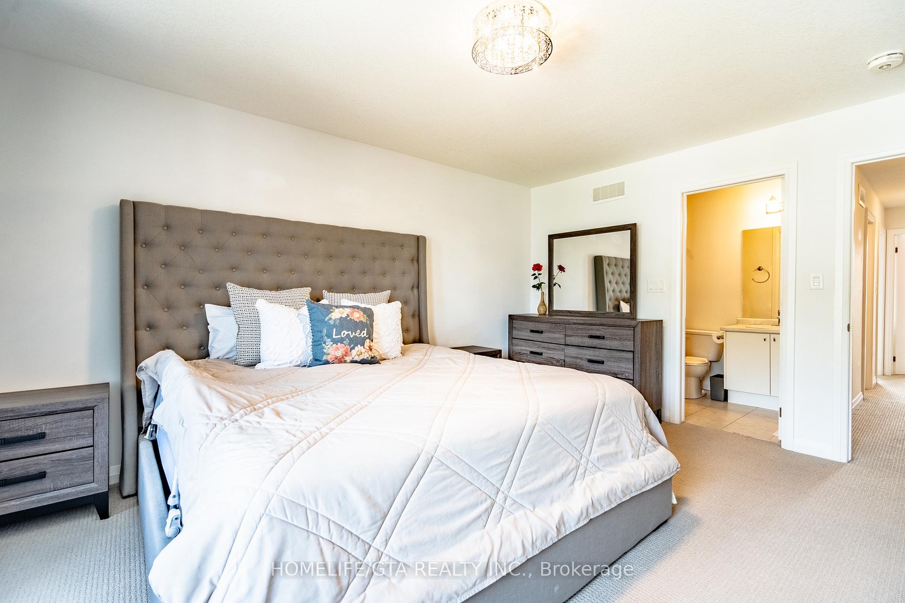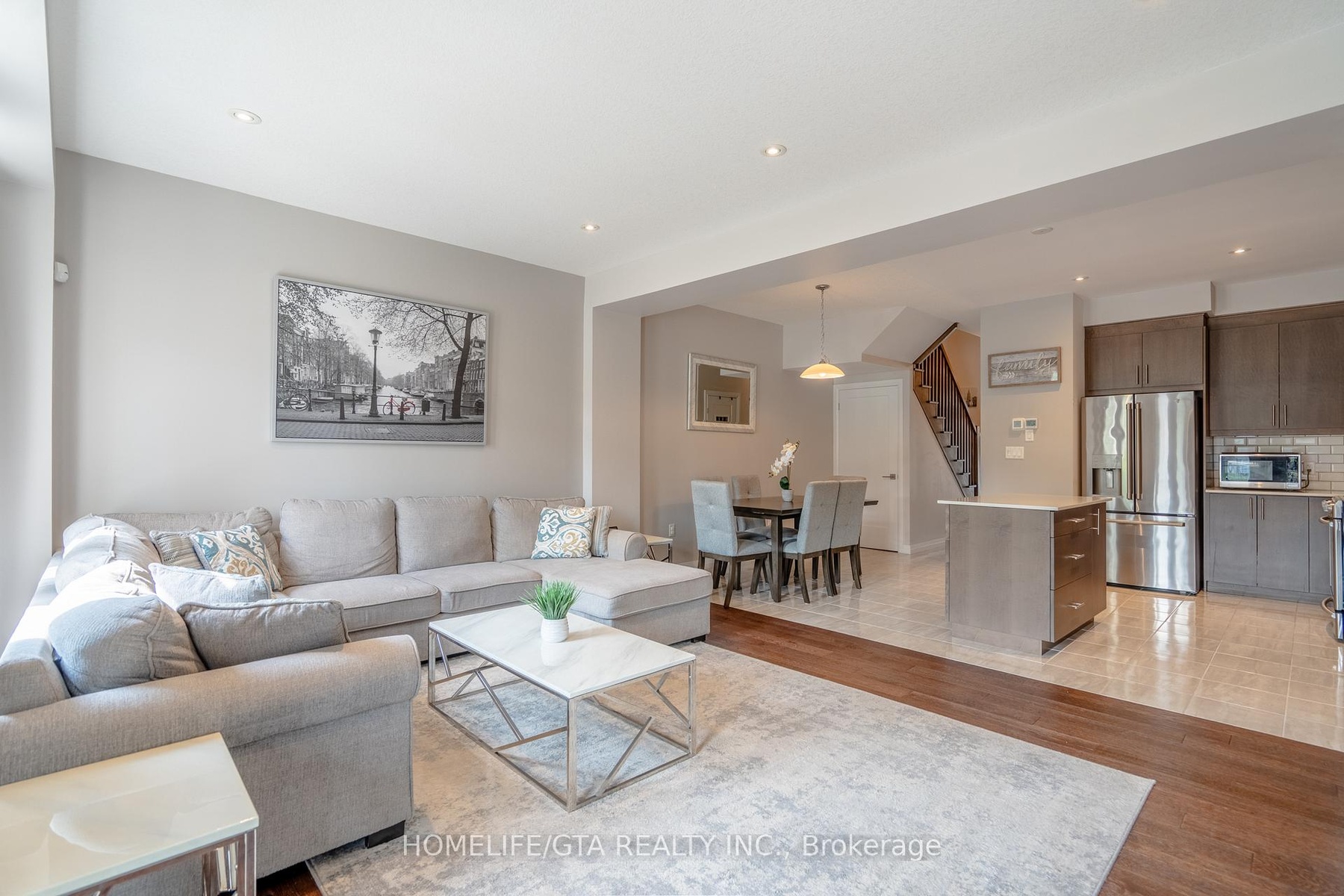 Stunning Modern Townhome In Sought-After Ancaster Glen. Welcome To This Beautifully Designed Modern Freehold Townhome By Losani Homes, Where Contemporary Elegance Meets Functional Living. With Its Striking Architectural Blend Of Stone, Brick And Wood-Inspired Metal Siding, This Home Makes A Memorable First Impression. A Glass- Panel Front Door With Matching Sidelight Floods The Entryway With Natural Light, Perfectly Complementing The Sleek Dark Easement Windows Throughout. Step Inside To Discover An Open-Concept Layout Enhanced By 9-Foot Ceilings On The Main Floor, Creating A Spacious And Airy Atmosphere Encompassing Over 1500 SqFt Of Living Space, The Kitchen Is A Showstopper, Featuring Caesarstone Quartz Countertops, Extended- Height Upper Cabinets, Pot And Pan Drawers, And Sleek Pot Lights - Ideal For Both Cooking And Entertaining. The Exquisite Custom Built Entertainment Wall Is Adorned With Sophisticated Marble - Style Tiling, Anchored By A High-End Electric Fireplace Offering Customizable Ambient Lighting In A Spectrum Of Elegant Hues. Strategically Relocated Multimedia Ports Ensure Seamless Connectivity, All Designed With Both Luxury And Convenience In Mid. Additional Interior Highlights Include: Hardwood Flooring. Oak Staircase Leading To The Upper Level. The Primary Suite Offers A Private Retreat With 3 Piece Ensuite, Complete With A Tiled Shower Fing Security Camera System With Emergency Flood Lights, Reliance Alarm System, Digital Thermostat And Laundry. The Unspoiled Basement Includes A Rough-In For A 2 Piece Bathroom, Offering The Potential To Customize And Expand Your Living Space. Located In The Highly Desirable Ancaster Glen Community, You're Just Minutes From Meadowlands Shopping. Top Rated Schools, Old Ancaster And Major Routes Including The 403, The Linc As Well As McMaster University And Redeemer University. Don't Miss Your Chance To own A Modern, Move In Ready Home In One Of Ancaster's Most Sought-After Neighborhoods!