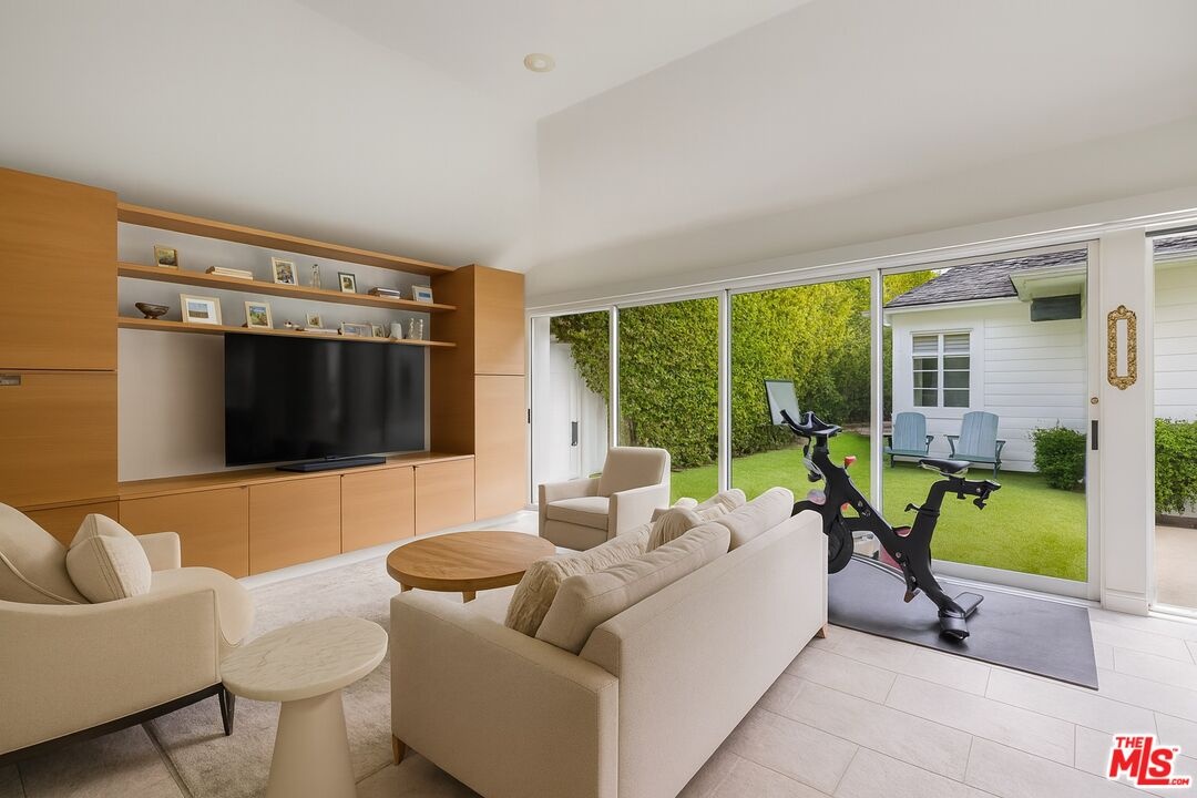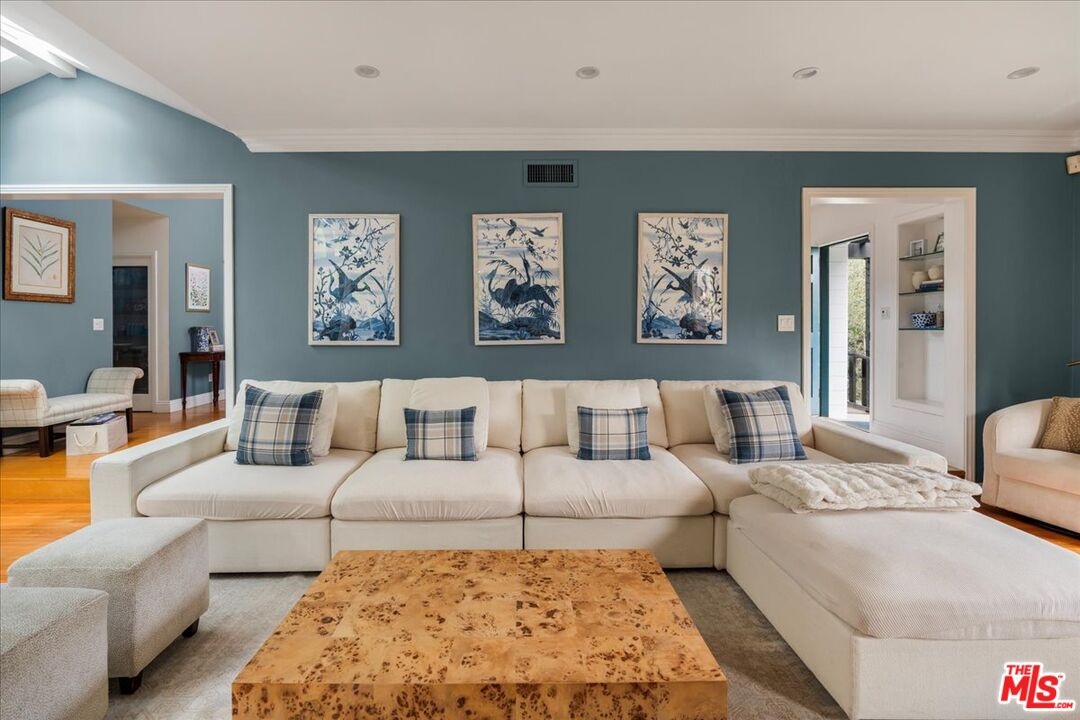 Designer-done and move-in ready, this 3-bedroom, 4-bath Brentwood Glen estate blends timeless traditional charm with modern sophistication. Privately gated at the end of a quiet cul-de-sac, the property is framed by lush greenery, mature privacy hedges, and beautifully landscaped grounds. The front yard features a manicured grass area and custom putting green, while the expansive backyard offers a large grass play area and resort-style amenities for entertaining. Inside, soaring ceilings, custom wood beams, and new windows flood the open floor plan with natural light. Completely renovated with hardwood and stone floors and designer finishes throughout, the home is both stylish and functional. The chef's kitchen is a centerpiece with Carrara marble counters, a dramatic center island, dual ovens, and stainless steel appliances. A bright breakfast nook framed by bay windows adds charm, while a custom wet bar elevates the home's entertaining appeal. The outdoor living spaces are unmatched, featuring an oversized jacuzzi that doubles as a splash pool for kids, and a fully custom-built kitchen complete with barbecue, pizza oven, sink, refrigeration, and a mounted outdoor TV all seamlessly connected to multiple grass areas perfect for gatherings and play. A detached guest house completes the property with Fleetwood sliding doors, sleek built-ins, a mini kitchen with dual wine fridges, and a full bath ideal for visitors, a gym, or a private studio. This Brentwood Glen gem combines designer style, family-friendly amenities, and modern luxury. Square footage includes garage space, which may not be permitted. Located in the highly desirable Kenter Canyon School District!