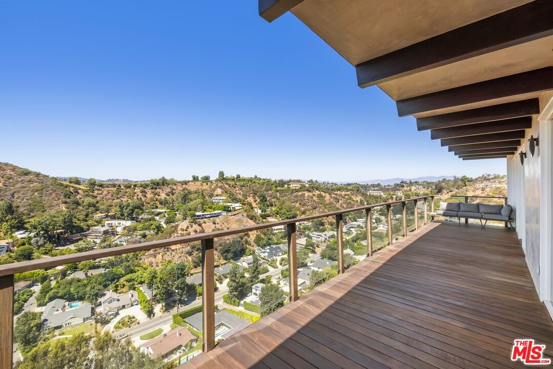 Available immediately! Be the first to live in this newly renovated view home in Beverly Hills Post Office, sited at the end of a long private cul-de-sac drive with 180-degree panoramas of the canyon, mountains, city, and ocean, from Palos Verdes to Catalina Island. Experience striking vistas from the large Brazilian Ipe viewing deck spanning the entire width of the home, accessed by both the primary suite and living room, with its floor-to-ceiling picture windows, sleek exposed beams, wood-burning fireplace, wet bar, and built-in reading nook. Rich wood floors flow into the bright kitchen with marble countertops, breakfast bar, recipe station, and stainless-steel appliances including Wolf range with hood. The owner's bedroom is a serene and relaxing retreat, complete with en-suite spa-inspired bath with beautiful stone work, oversized full-slab steam and rainwater shower with bench, and smart toilet. The light-filled secondary bedroom and bathroom are also smartly appointed with modern finishes, including a modern two-person whirlpool tub. Entertain guests, dine al-fresco, and gather around the fire pit under California skies in the expansive open-air patio, concealed and gated from the street. For convenience, there is a one-car garage plus carport with 30-amp plug for EV fast-charging capability as well as low-maintenance, drought-tolerant landscaping. The home is also wired for high-speed fiber optic internet from AT&T. Originally built by Stone-Fisher, highly regarded architects of the time, the home was extensively remodeled in 2023. Welcome to this excellent central location, tucked away from the city yet just moments to the high fashion of Rodeo Drive, the Sunset Strip, Century City, and the greater Westside. The Valley and Hollywood studios are also just a quick canyon drive away. Also available for sale.