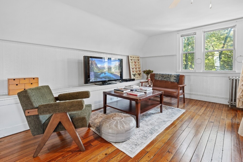 Noteworthy / Upgrades. Split system air-conditioning throughout. Efficient and upgraded steam boiler with fully restored radiators. Large capacity hot water heater. Unfinished attic space with inspiring potential. Recessed lighting on dimmer switches. Private driveway with room for four cars.