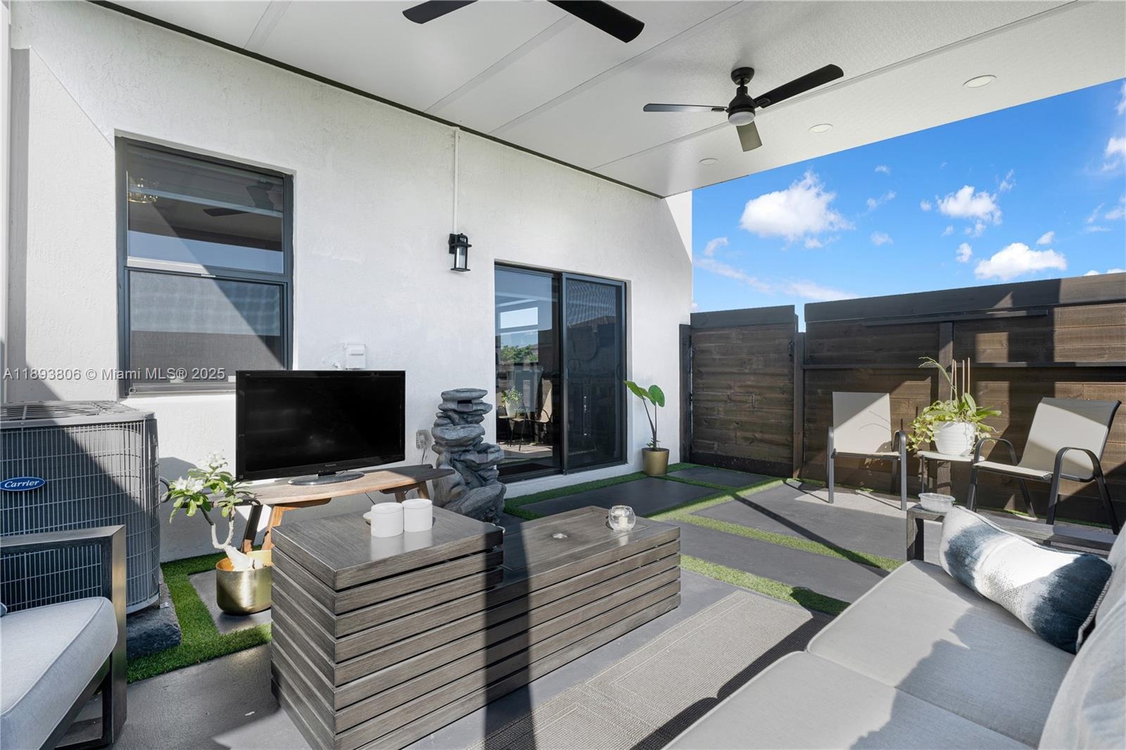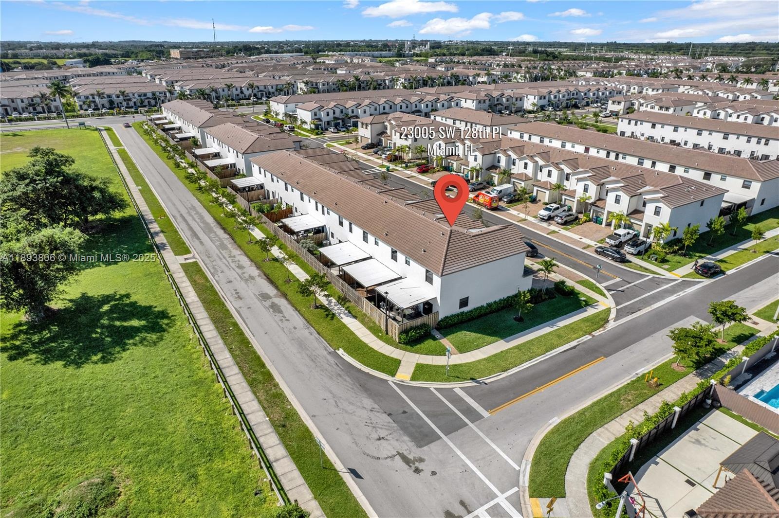 ASSUME SELLER'S 4.99% MORTGAGE****** Rare end-unit 2-story townhome with garage in Southwest Miami showcasing high-end upgrades throughout. This sought-after Lennar model now sells from $569K with no upgrades, making this $519K resale an exceptional value. Enjoy open living spaces, a soaring 20’ foyer, and a designer kitchen flowing into a private backyard oasis with pergola, dual fans, turf, and concrete flooring. Full hurricane-impact windows and doors provide safety, efficiency, and peace of mind. Upstairs, the deluxe primary suite overlooks a lush 5-acre park with spa shower and walk-in closet. Modern finishes include quartz counters, stainless appliances, tankless water heater, remote blinds, and marble sills. Clubhouse open—featuring resort-style pool, gym, hot tub, and playground.