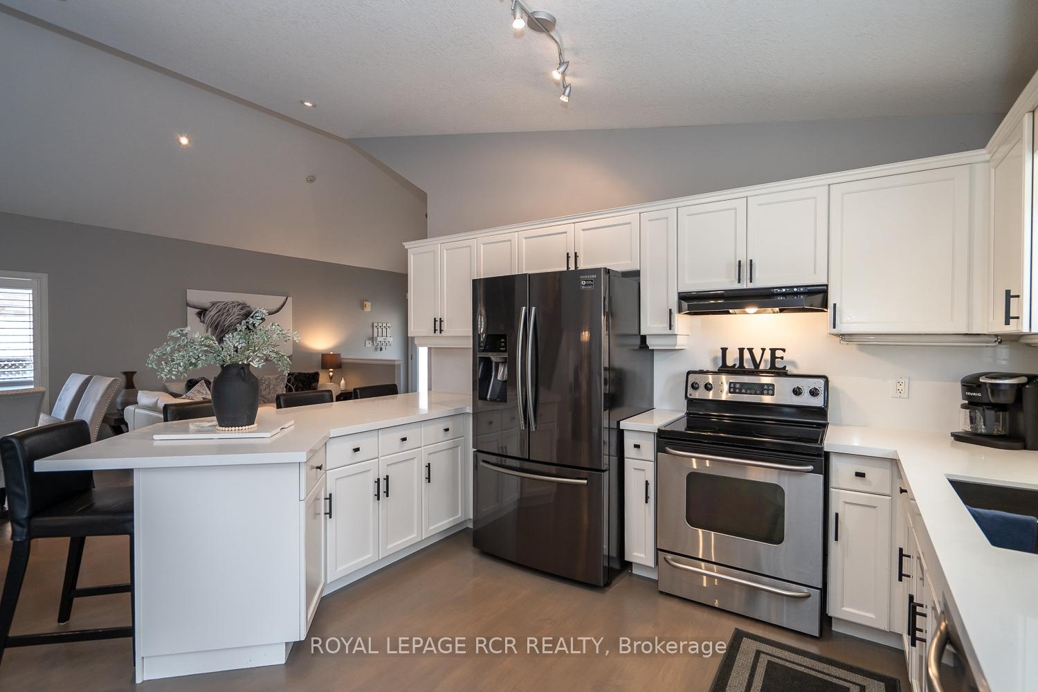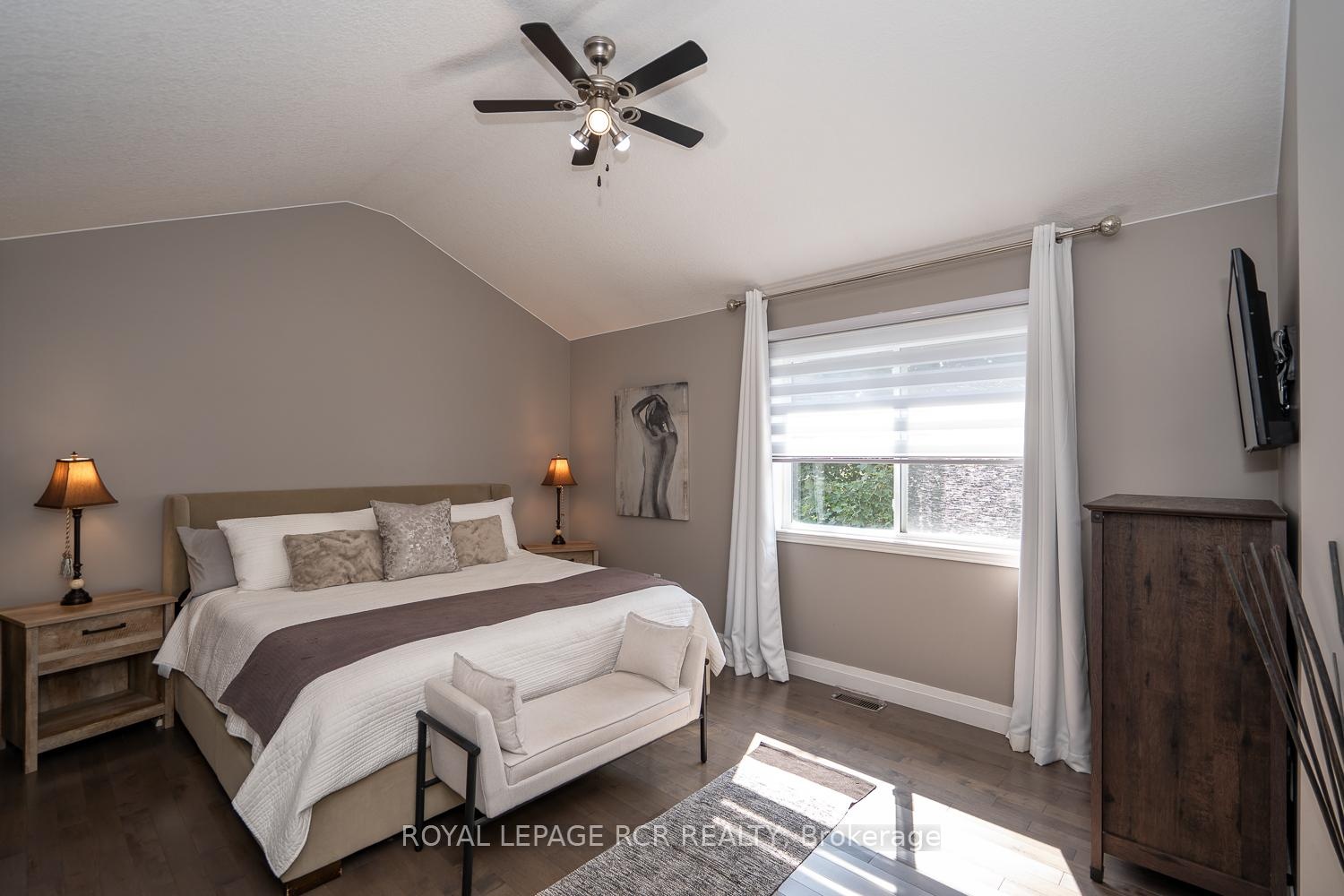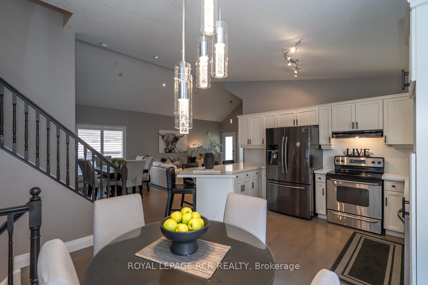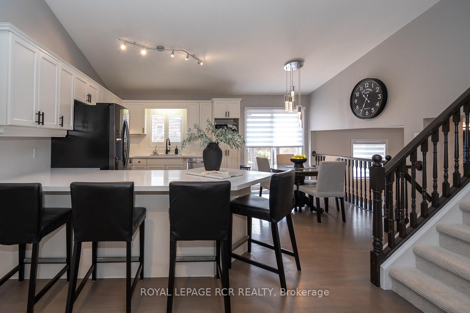 Welcome to this gorgeous Dover model backsplit on a 50' premium lot in the desirable west end of Orangeville. Finished on all 4 levels, this move in condition home has a fantastic open concept layout which is perfect for family gatherings and entertaining! The main floor boasts a large updated eat-in kitchen with breakfast bar, granite counters, granite backsplash, pantry and walk out to the 2 tiered deck. Formal living and dining area with cathedral ceilings complete this level. The 3rd level features a huge family room with gas fireplace, beautiful custom built-in cabinets with bar area, vinyl plank flooring and a walkout to the fully fenced large yard. The upper level offers spacious bedroom sizes, the Master Bedroom with a private ensuite, soaker tub & separate shower. PLUS there is a finished lower level for even more living space with 4th bedroom, Rec Room with custom built-in storage, brand new broadloom, storage and cold cellar. Main floor laundry and access from home to garage are some of the added conveniences. Other upgrades incl hardwood floors thru-out the main level & upper level, California shutters, custom blinds, light fixtures, new front door & garage doors