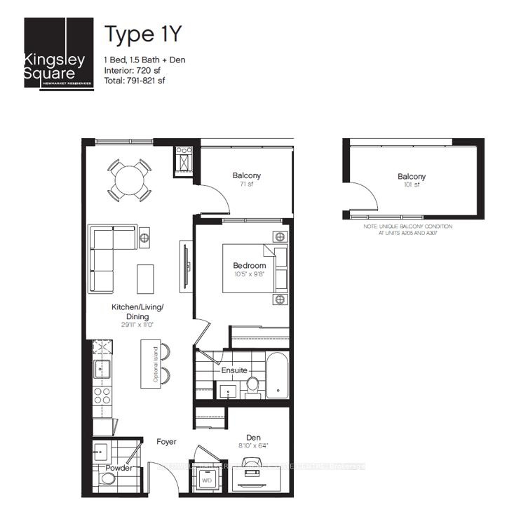 Experience contemporary elegance in this stunning 1 Bedroom Large Den, 2 Bathroom suite at Kingsley Square Condos.