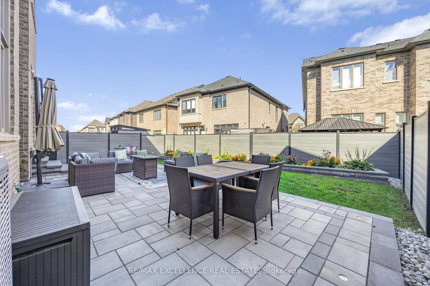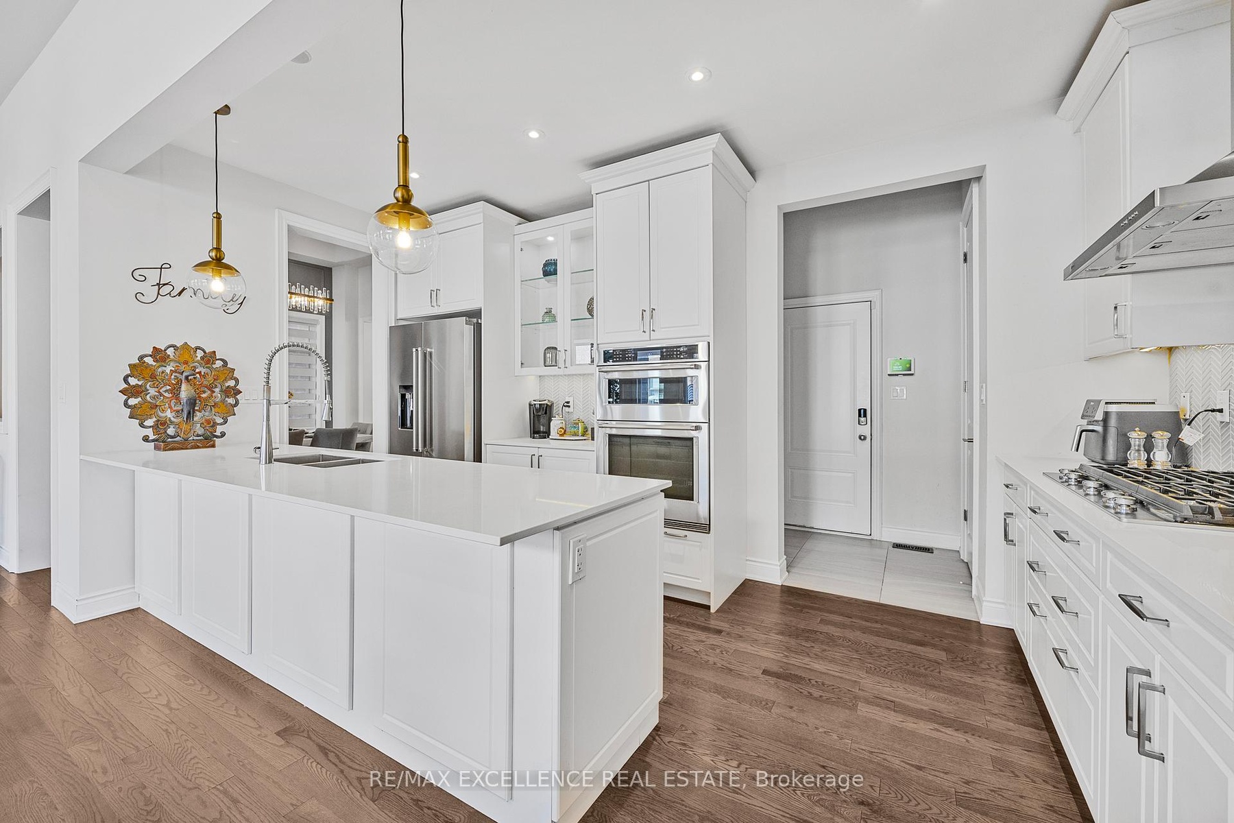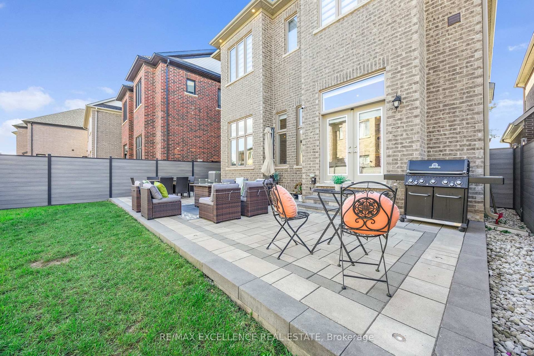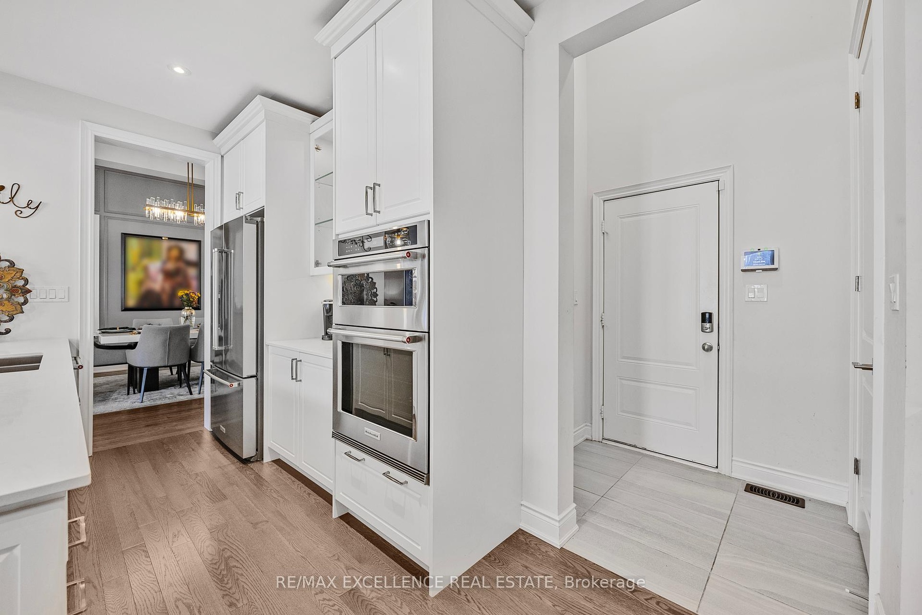 Nestled on a quiet cul-de-sac in one of Canada's most desirable communities, this stunning home blends timeless luxury with thoughtful design. Here, your lifestyle unfolds effortlessly-morning walks through tree-lined streets, golf weekends at Deerfield Golf Club, Family picnics by Lake Ontario's scenic parks and marinas, and evenings exploring nearby restaurants, boutiques, and recreation centres. With top-rated schools and quick access to Bronte GO station, HWY 407, QEW, and 403, every convenience is at your doorstep. Step Through the natural stone entrance into a breathtaking open layout where the sophistication and comfort meet. The main floor features 12-foot ceilings, a formal living room, and an inviting family room anchored by a modern fireplace overlooking the landscaped backyard. The open concept kitchen features custom full-height cabinetry with glass inserts, offering a stylish space to showcase your creativity and a seamless flow ideal for entertaining or family gatherings. A mudroom with side entry through garage and built-in storage adds everyday ease. The garage is finished with epoxy flooring and includes an EV charger. Upstairs, four beautifully appointed bedrooms await with 9 and 11 foot high ceiling. The primary suite is a serene retreat with double-door entry, his and her walk in closet, a luxurious 5-piece ensuite, and a separate marble-topped makeup counter for added indulgence. Bedrooms 2 and 3 each feature 4-piece ensuites and spacious walk-in-closets, while the bedroom 4 includes it's own 4-piece ensuite and a double closet. A bright, private office completes the upper level-ideal for remote work or quiet reflection. The backyard is a private oasis, perfect for outdoor living, featuring a gas hookup for BBQs or an outdoor kitchen, framed by a modern composite fence. Beautiful Landscaping, accent lightning, and exterior pot lights create a warm evening ambiance-the perfect setting for relaxation or entertaining under the stars.