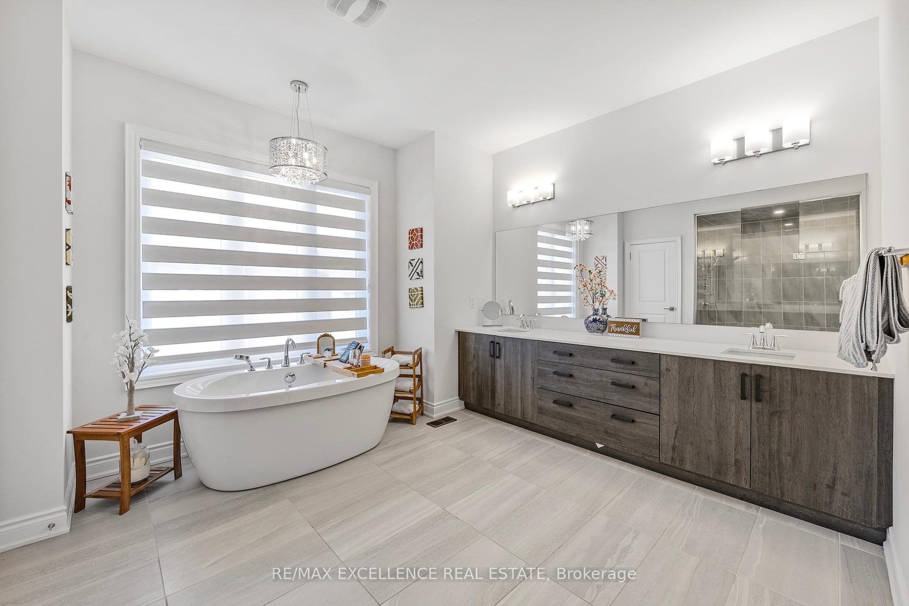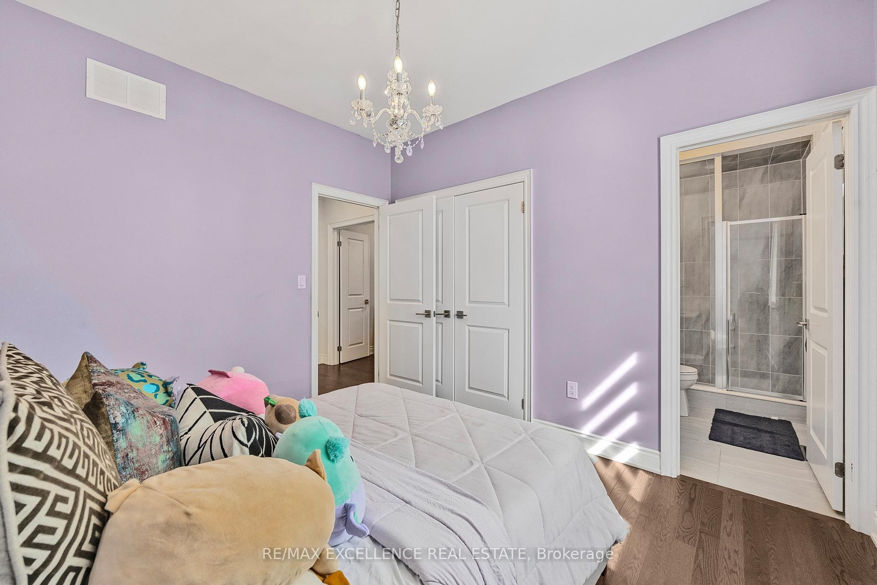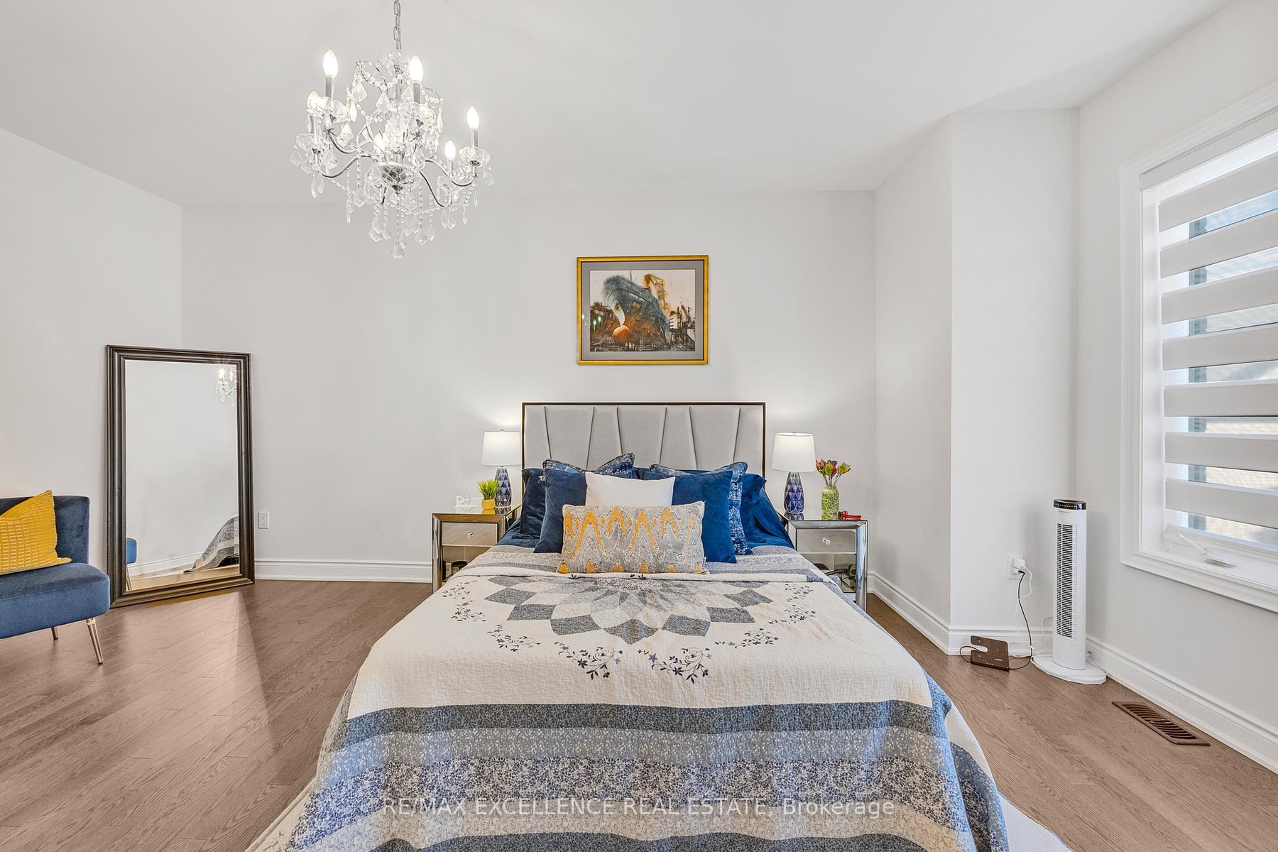 Nestled on a quiet cul-de-sac in one of Canada's most desirable communities, this stunning home blends timeless luxury with thoughtful design. Here, your lifestyle unfolds effortlessly-morning walks through tree-lined streets, golf weekends at Deerfield Golf Club, Family picnics by Lake Ontario's scenic parks and marinas, and evenings exploring nearby restaurants, boutiques, and recreation centres. With top-rated schools and quick access to Bronte GO station, HWY 407, QEW, and 403, every convenience is at your doorstep. Step Through the natural stone entrance into a breathtaking open layout where the sophistication and comfort meet. The main floor features 12-foot ceilings, a formal living room, and an inviting family room anchored by a modern fireplace overlooking the landscaped backyard. The open concept kitchen features custom full-height cabinetry with glass inserts, offering a stylish space to showcase your creativity and a seamless flow ideal for entertaining or family gatherings. A mudroom with side entry through garage and built-in storage adds everyday ease. The garage is finished with epoxy flooring and includes an EV charger. Upstairs, four beautifully appointed bedrooms await with 9 and 11 foot high ceiling. The primary suite is a serene retreat with double-door entry, his and her walk in closet, a luxurious 5-piece ensuite, and a separate marble-topped makeup counter for added indulgence. Bedrooms 2 and 3 each feature 4-piece ensuites and spacious walk-in-closets, while the bedroom 4 includes it's own 4-piece ensuite and a double closet. A bright, private office completes the upper level-ideal for remote work or quiet reflection. The backyard is a private oasis, perfect for outdoor living, featuring a gas hookup for BBQs or an outdoor kitchen, framed by a modern composite fence. Beautiful Landscaping, accent lightning, and exterior pot lights create a warm evening ambiance-the perfect setting for relaxation or entertaining under the stars.