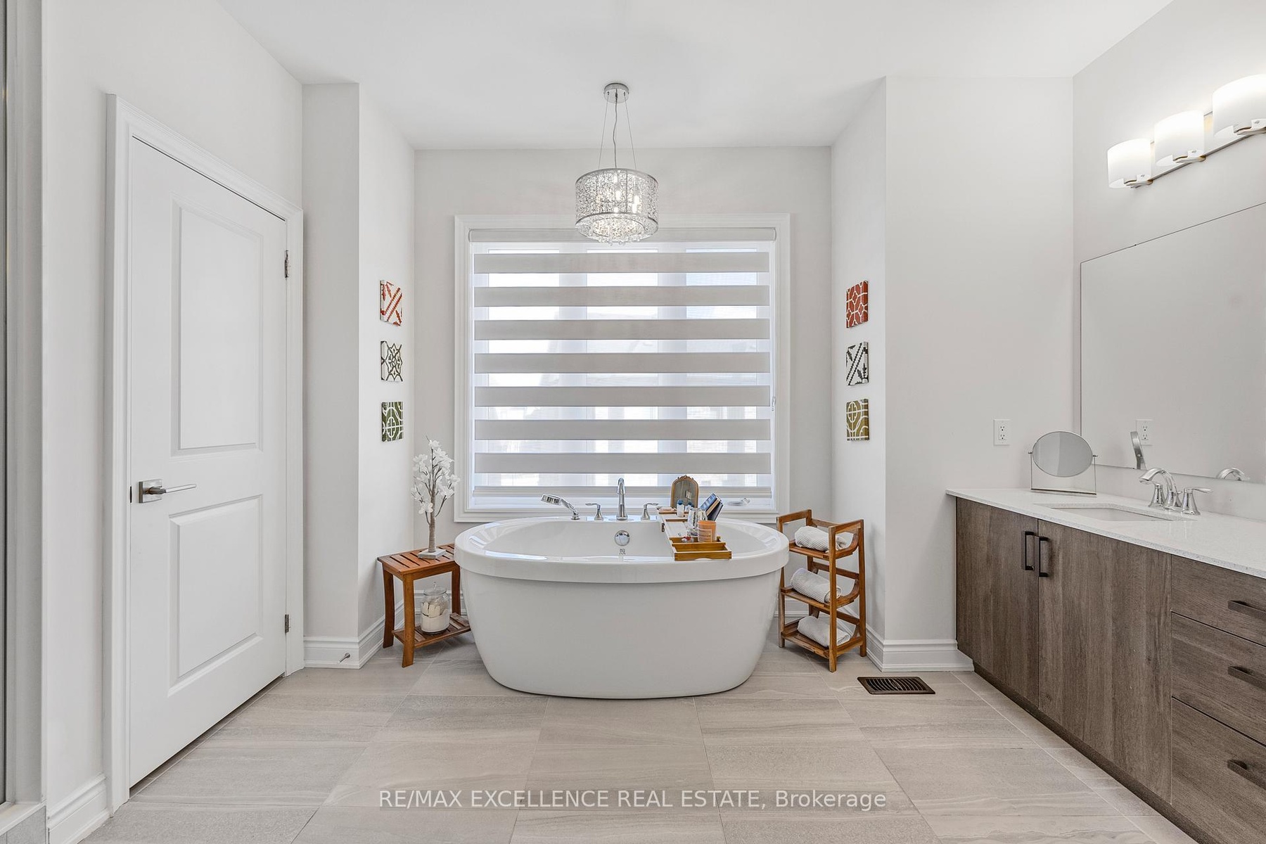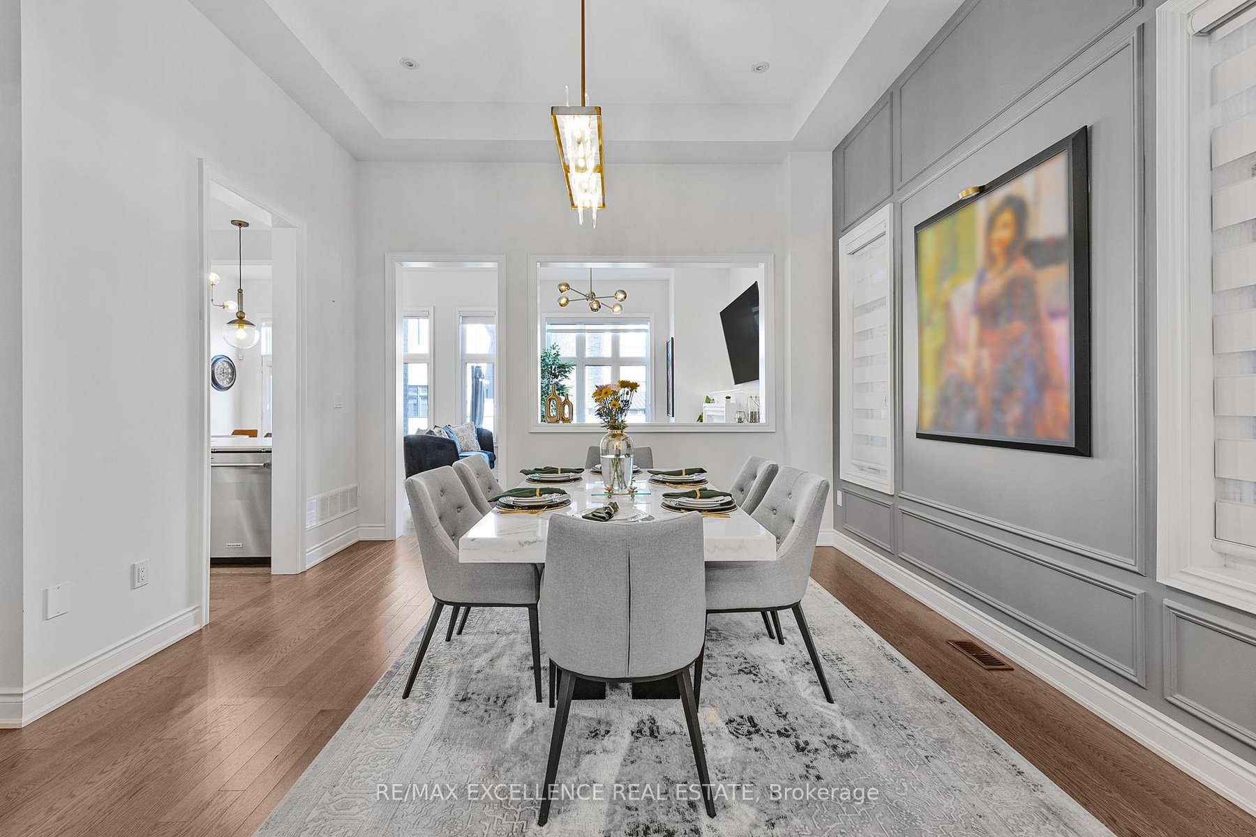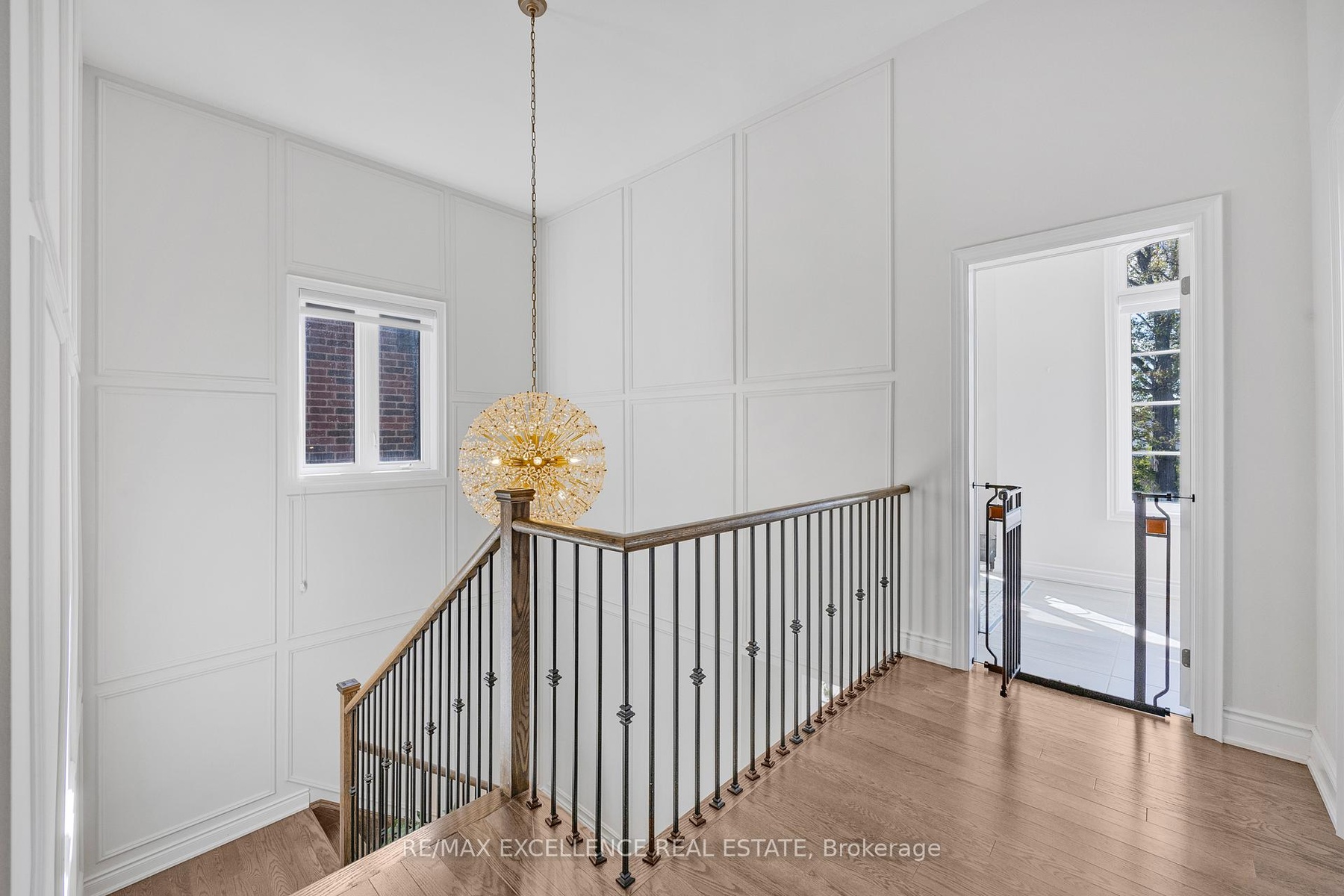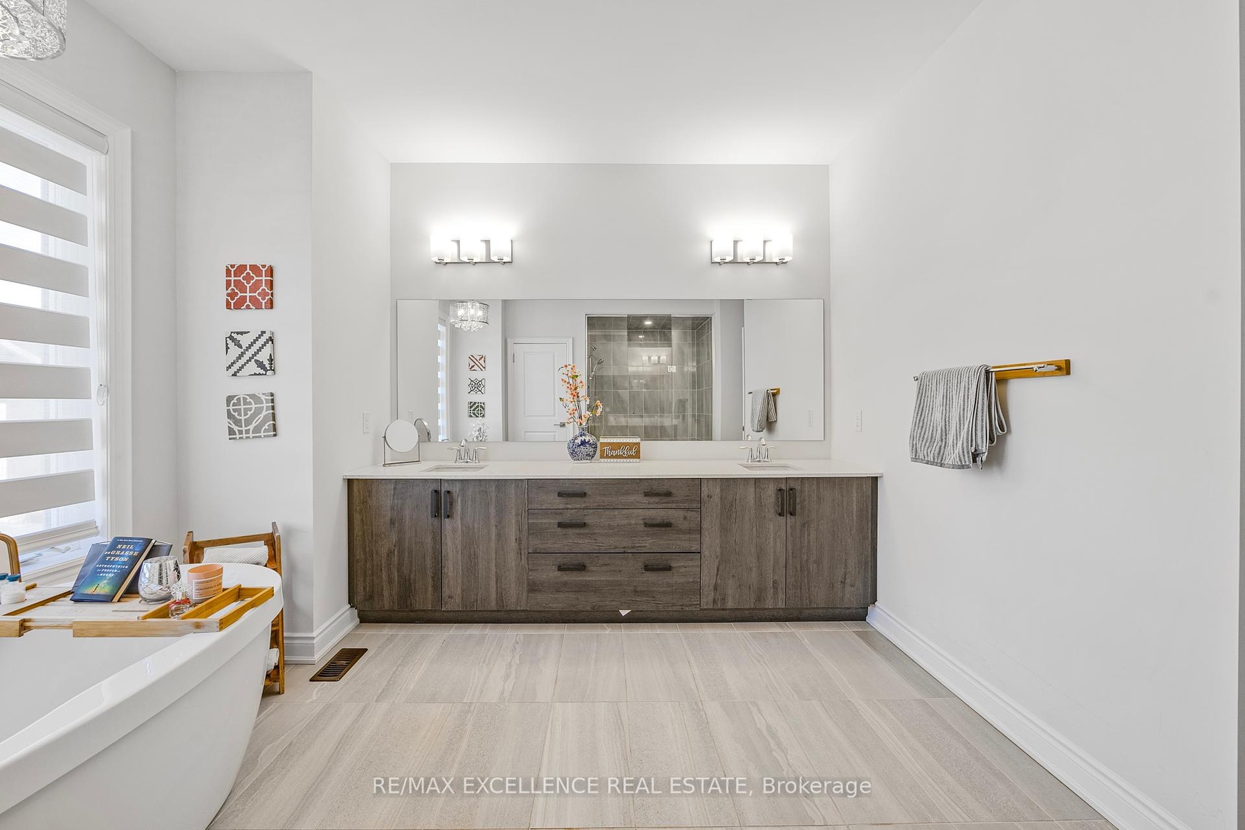 Nestled on a quiet cul-de-sac in one of Canada's most desirable communities, this stunning home blends timeless luxury with thoughtful design. Here, your lifestyle unfolds effortlessly-morning walks through tree-lined streets, golf weekends at Deerfield Golf Club, Family picnics by Lake Ontario's scenic parks and marinas, and evenings exploring nearby restaurants, boutiques, and recreation centres. With top-rated schools and quick access to Bronte GO station, HWY 407, QEW, and 403, every convenience is at your doorstep. Step Through the natural stone entrance into a breathtaking open layout where the sophistication and comfort meet. The main floor features 12-foot ceilings, a formal living room, and an inviting family room anchored by a modern fireplace overlooking the landscaped backyard. The open concept kitchen features custom full-height cabinetry with glass inserts, offering a stylish space to showcase your creativity and a seamless flow ideal for entertaining or family gatherings. A mudroom with side entry through garage and built-in storage adds everyday ease. The garage is finished with epoxy flooring and includes an EV charger. Upstairs, four beautifully appointed bedrooms await with 9 and 11 foot high ceiling. The primary suite is a serene retreat with double-door entry, his and her walk in closet, a luxurious 5-piece ensuite, and a separate marble-topped makeup counter for added indulgence. Bedrooms 2 and 3 each feature 4-piece ensuites and spacious walk-in-closets, while the bedroom 4 includes it's own 4-piece ensuite and a double closet. A bright, private office completes the upper level-ideal for remote work or quiet reflection. The backyard is a private oasis, perfect for outdoor living, featuring a gas hookup for BBQs or an outdoor kitchen, framed by a modern composite fence. Beautiful Landscaping, accent lightning, and exterior pot lights create a warm evening ambiance-the perfect setting for relaxation or entertaining under the stars.