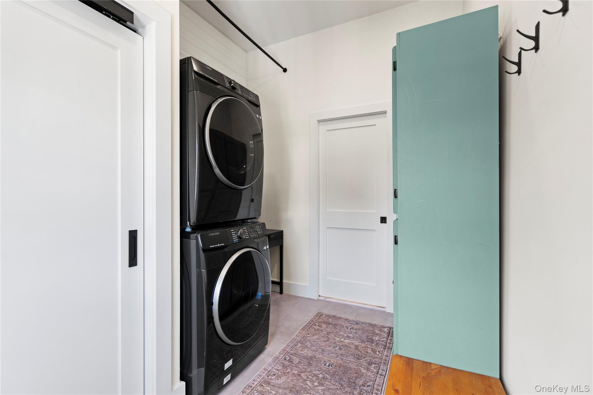- Mudroom featuring washer/dryer, recessed lighting and full bathroom