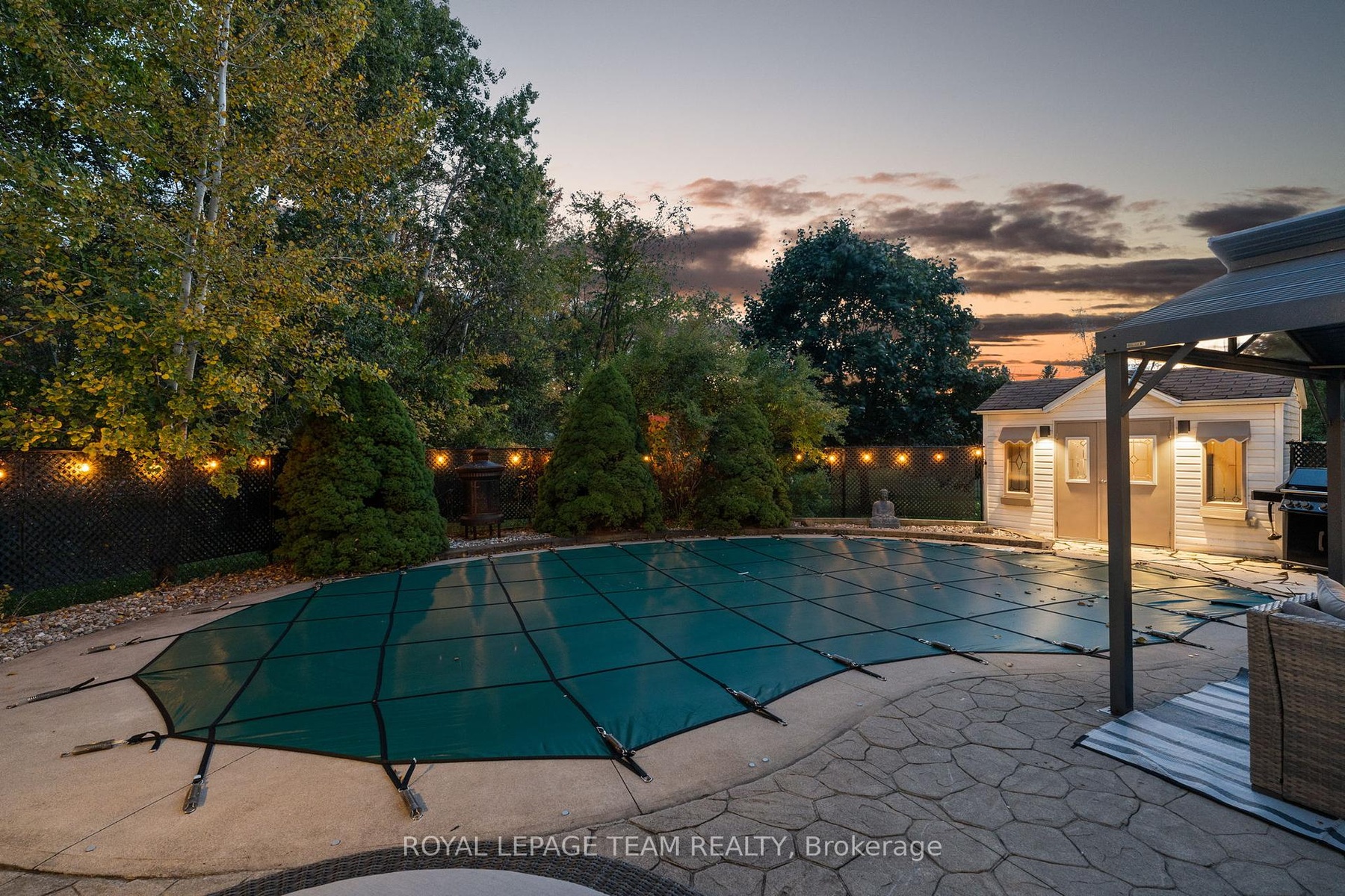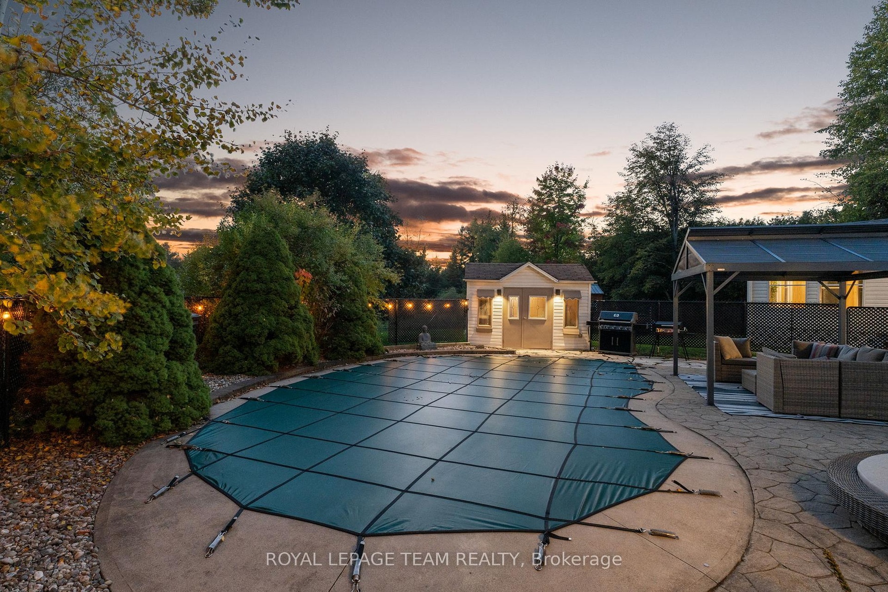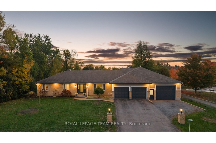 Tucked away on a mature, tree-lined street in Osgoode, next to a quiet park, this exceptional custom bungalow blends space, comfort, and thoughtful design in a way thats truly rare. With over 3,600 sq. ft. of finished living space plus additional room in the basement, this home is deceivingly spacious and perfectly suited for modern living. Extensively renovated in 2021, the heart of the home features a top-of-the-line kitchen that flows seamlessly into an open-concept living area so expansive, you won't believe it until you see it! Natural light pours into the four-season sunroom, where a cozy fireplace and hot tub create the perfect year-round retreat. Step outside to discover your sunny backyard oasis, complete with a beautiful in-ground saltwater pool and stunning landscaping that enhances the homes impressive curb appeal. The main floor layout is both functional and elegant, with a luxurious primary suite, two additional large bedrooms, three well-appointed bathrooms (including a spa-like ensuite and convenient powder room), a formal dining room, and a breakfast nook overlooking the backyard. Multiple living spaces including a family room with gas fireplace and a spacious front living room offer versatility for both everyday living and entertaining. Downstairs, a finished basement adds even more flexibility with a recreation room, an additional bedroom, a gym area, and generous storage. The three-car garage is a standout feature: the third bay is an extra-tall, heated workshop with a finished office space, ideal for hobbies, home-based work, or future possibilities. 3372 Bramble Lane is truly one-of-a-kind in this area: a warm, expansive, and thoughtfully designed home that must be experienced in person to be fully appreciated.