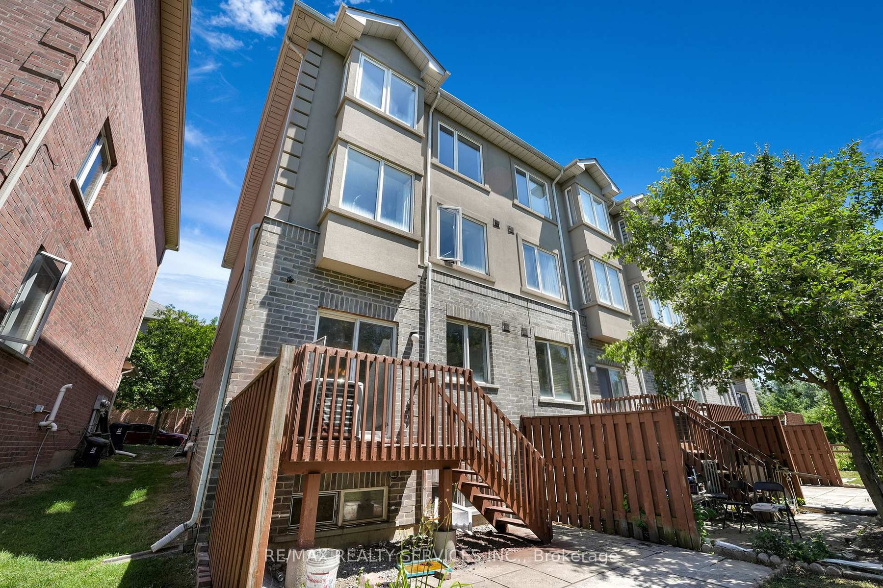 Welcome to this rare over 2200 sq/ft. End-unit, 3 story Executive townhouse just like a Semi-Detached home. Situated in the highly desirable family-friendly Harmony Village community. This property perfectly blends comfort, style and convenience. Backing on to the Humber River recreational trail, it offers privacy & a lush ravine view. Feature 5 Bedrooms 4 Bathrooms + finished basement with1bed & a rec room. Main level features open concept layout with living, dining, a modern kitchen with stylish backsplash a large island with extended breakfast bar & quartz countertops. This level features a walkout to a private deck, perfect for enjoying your morning coffee or relaxing with nature. Spacious 2nd level boasts a1st Master Bedroom with luxurious 5 pc en-suite & walk-in closet as well as a family room. 3rd level showcases 2nd Master Bedroom with 4pc en- suite & walk-in closet, 3 generous sized bedrooms share 4 pc common bath. Parking for two (1 garage + 1 driveway). Steps to the Finch LRT line, TTC bus routes, close to HWYS 400/407/401, community center, dining options, shopping, parks, trails, reputable schools and just minutes to York University & Humber College. Ideal location for big families, first time home buyers or investors. Upgraded from top to bottom in recent years, with renovations including new flooring, bathrooms, kitchen, pot lights, and fresh paint throughout. This home offers convenience and incredible value! Must watch attached virtual tour.